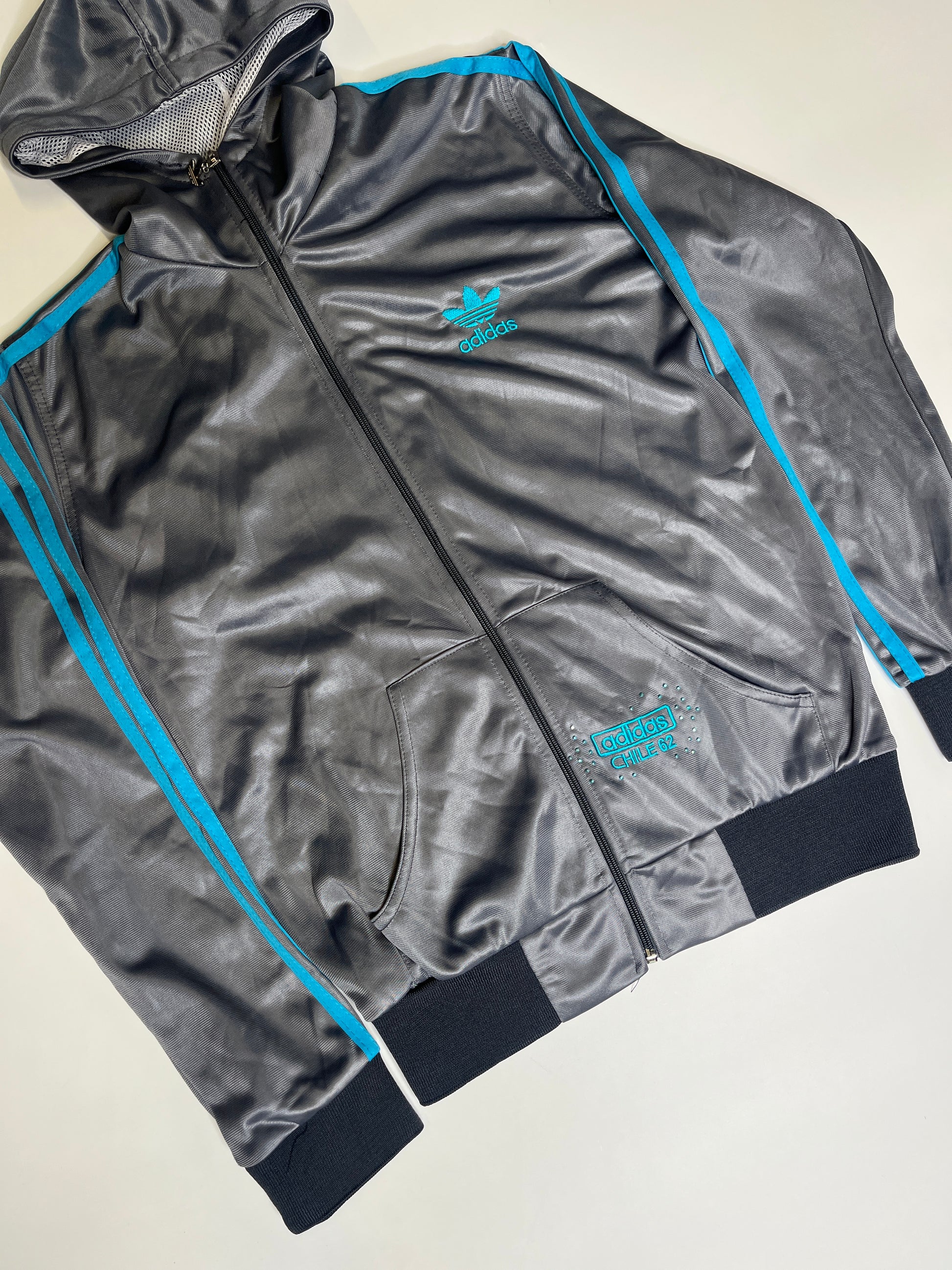 Amazing grey Adidas Jacket from the 2000s! Amazing fit and good quality! Has the cutest rhinestone details. Sporty, everyday zipper which is comfortable.