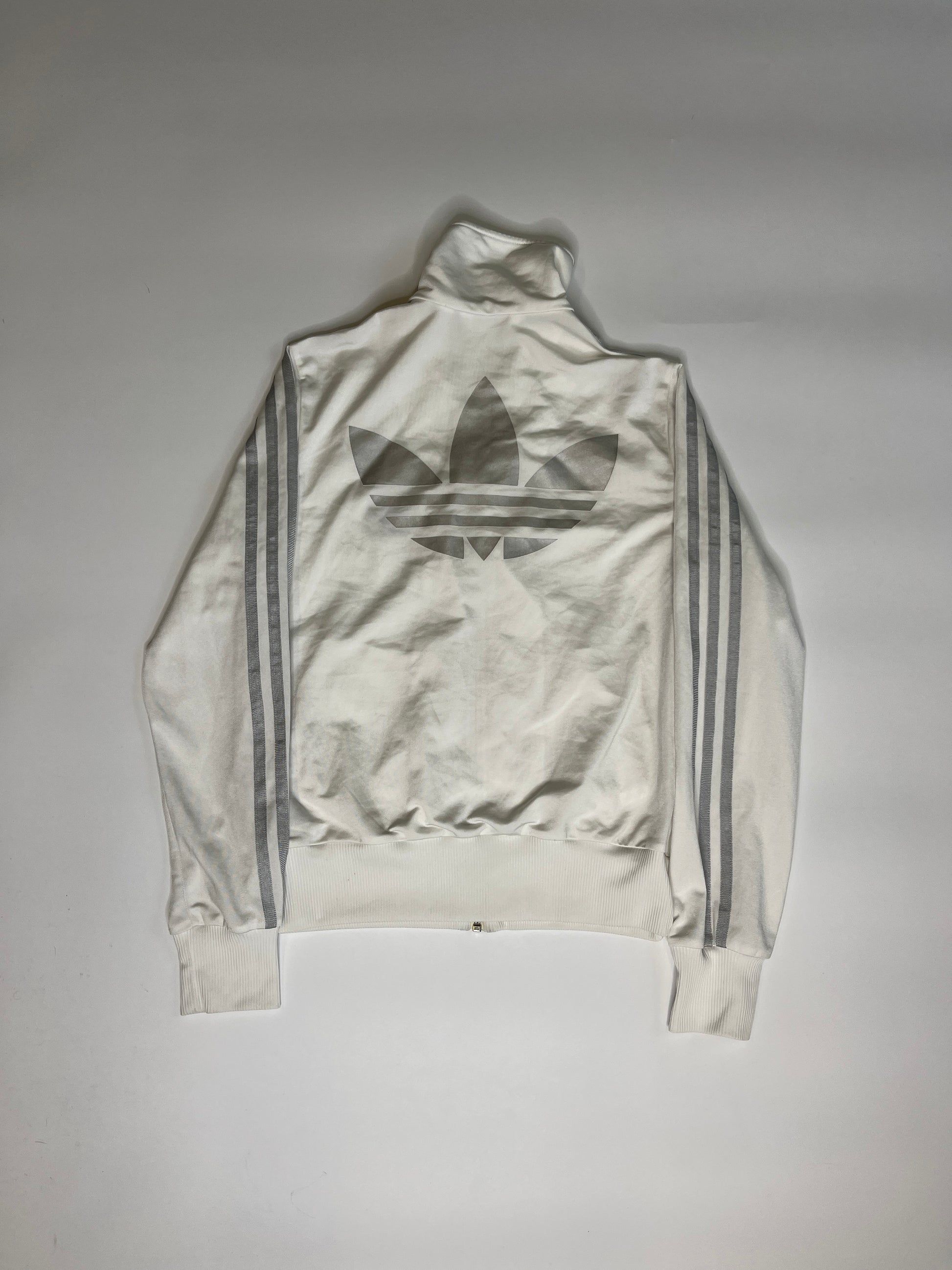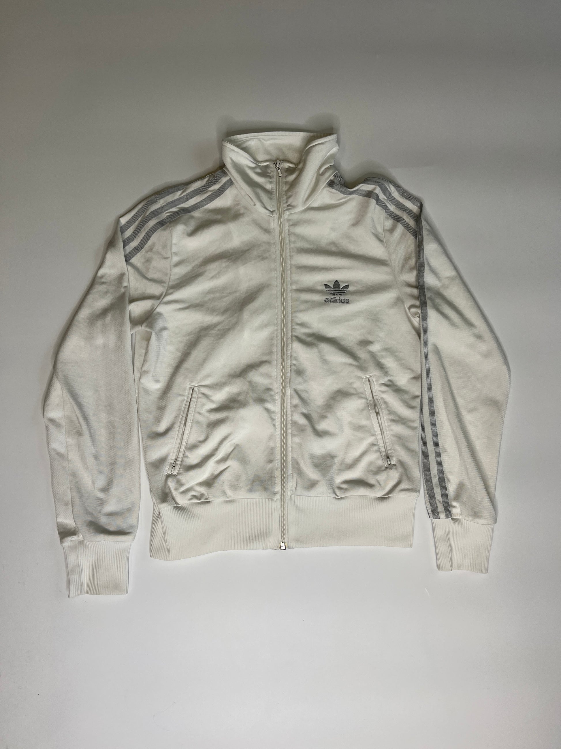 Amazing white Adidas Jacket! Amazing fit and good quality! Sporty, everyday zipper which is comfortable. Embroidered Logo.