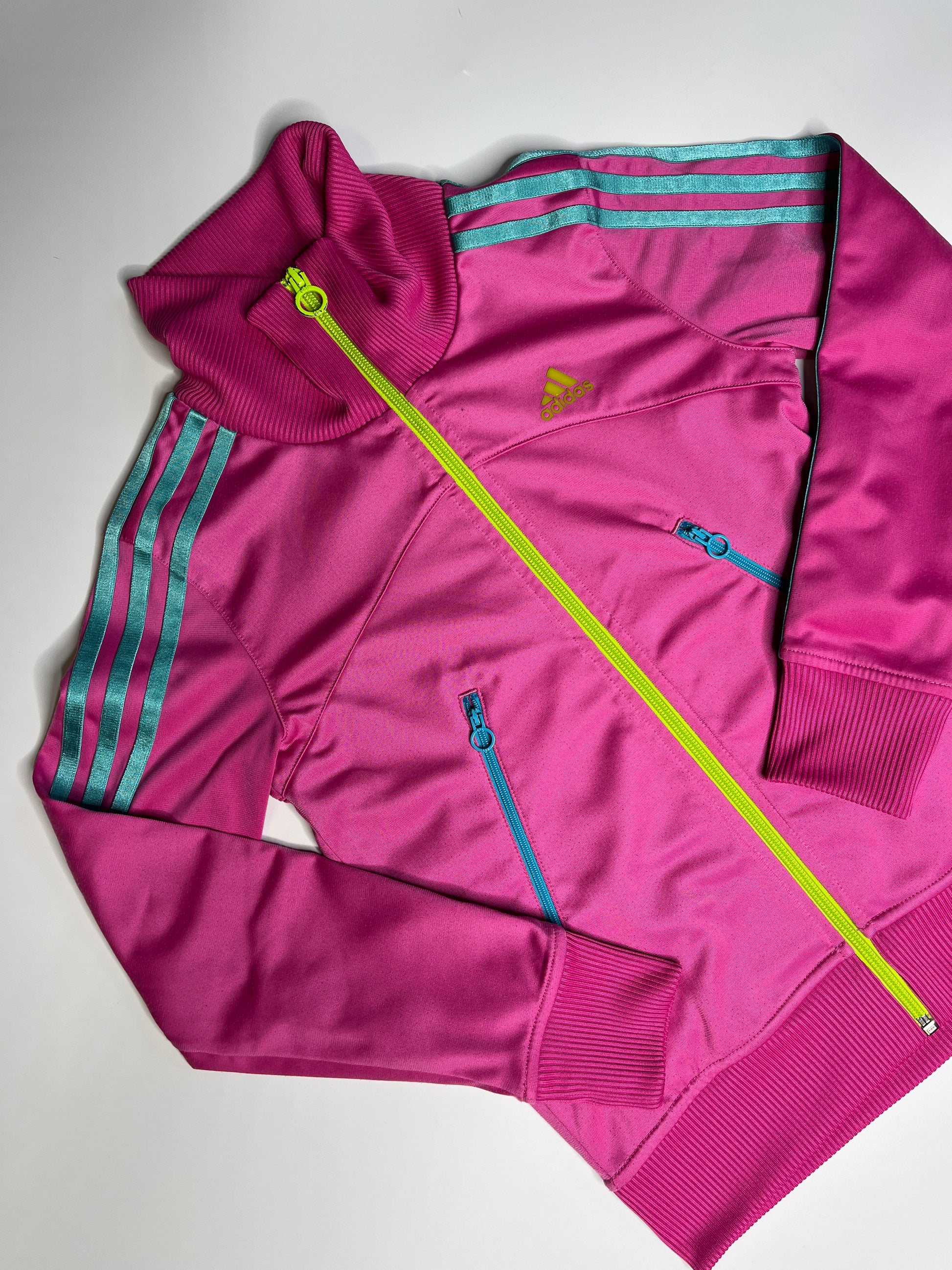 Amazing pink Adidas Jacket! Amazing fit and good quality! Sporty, everyday zipper which is comfortable. Rather Thin material