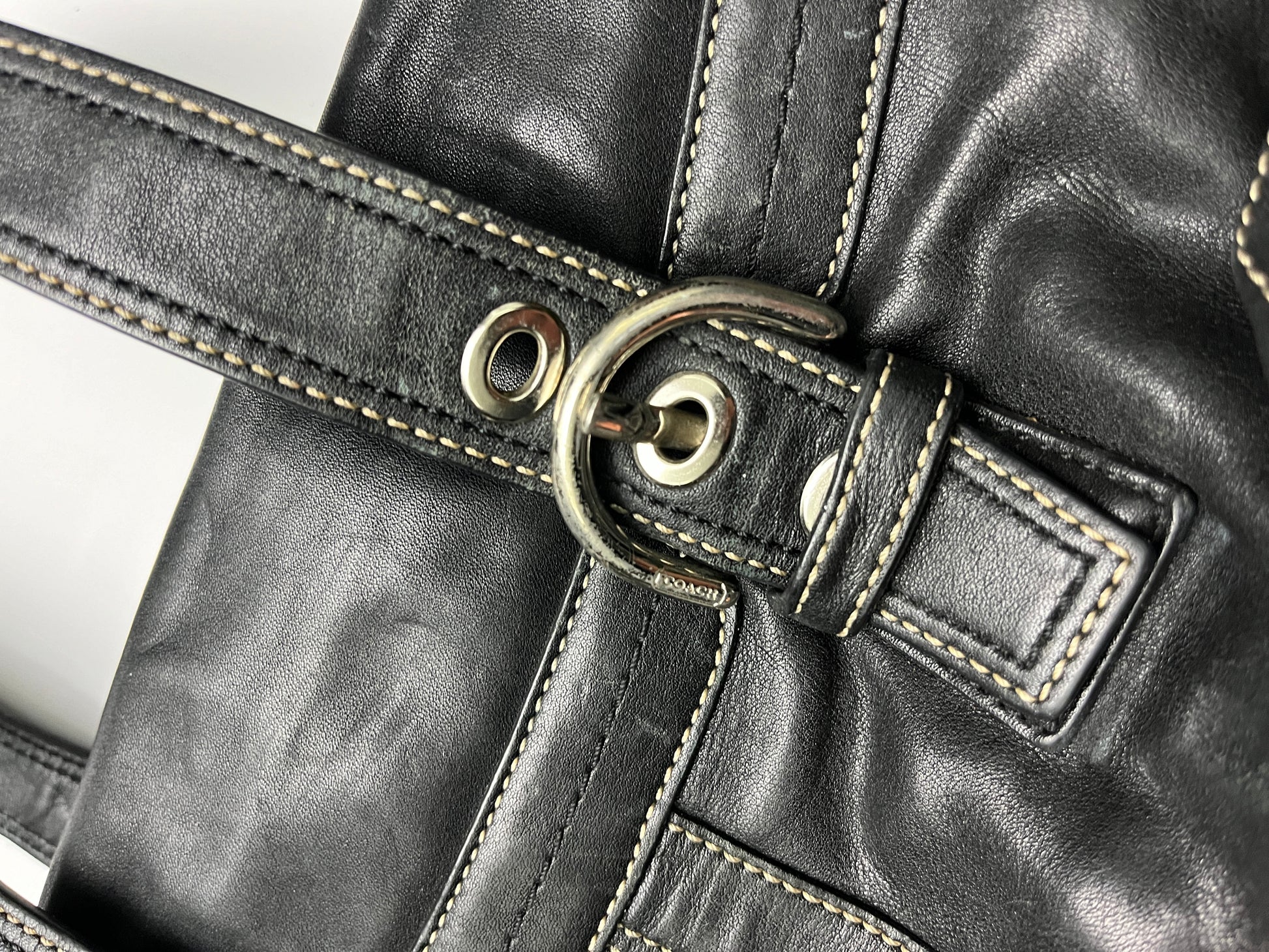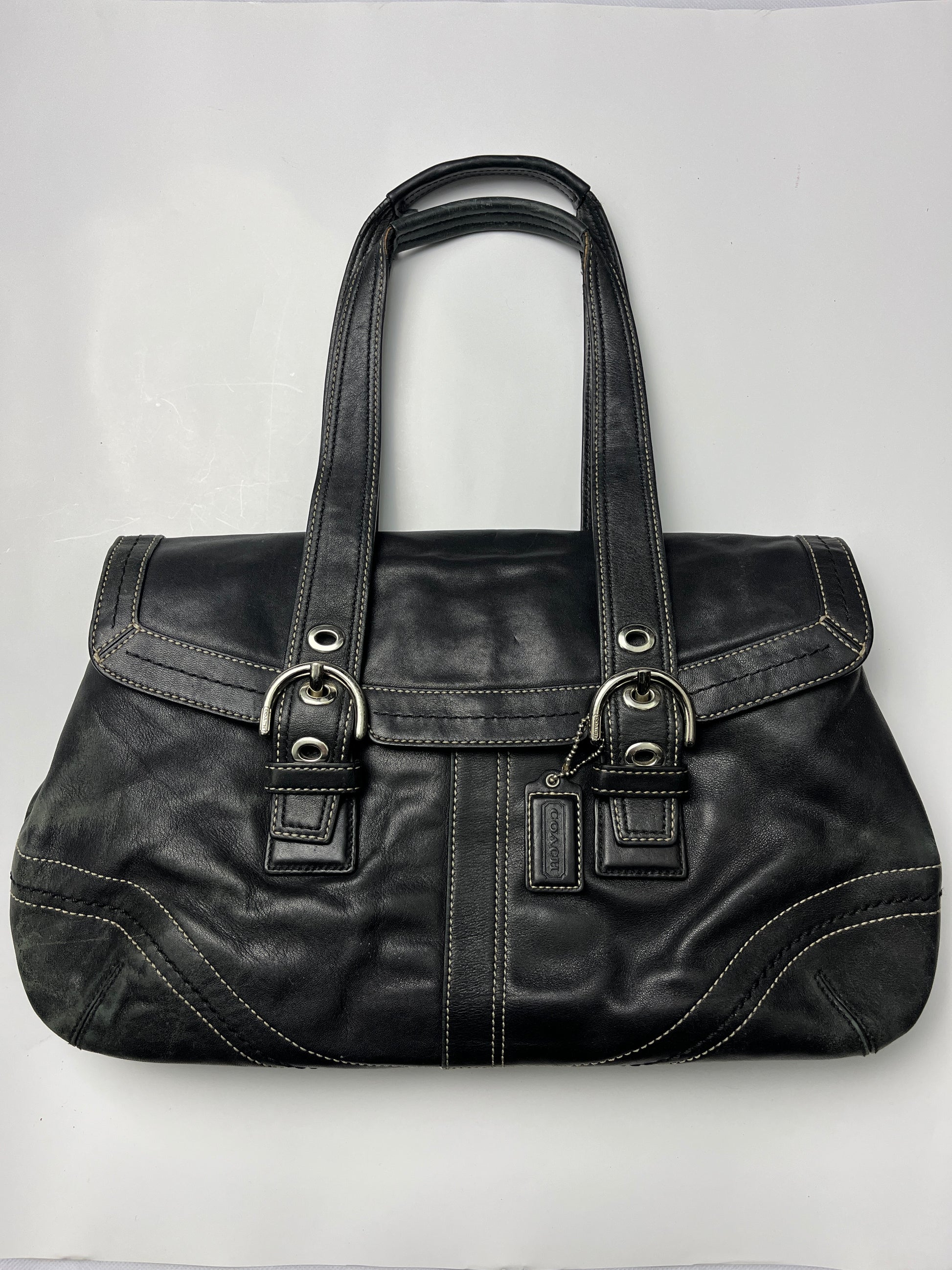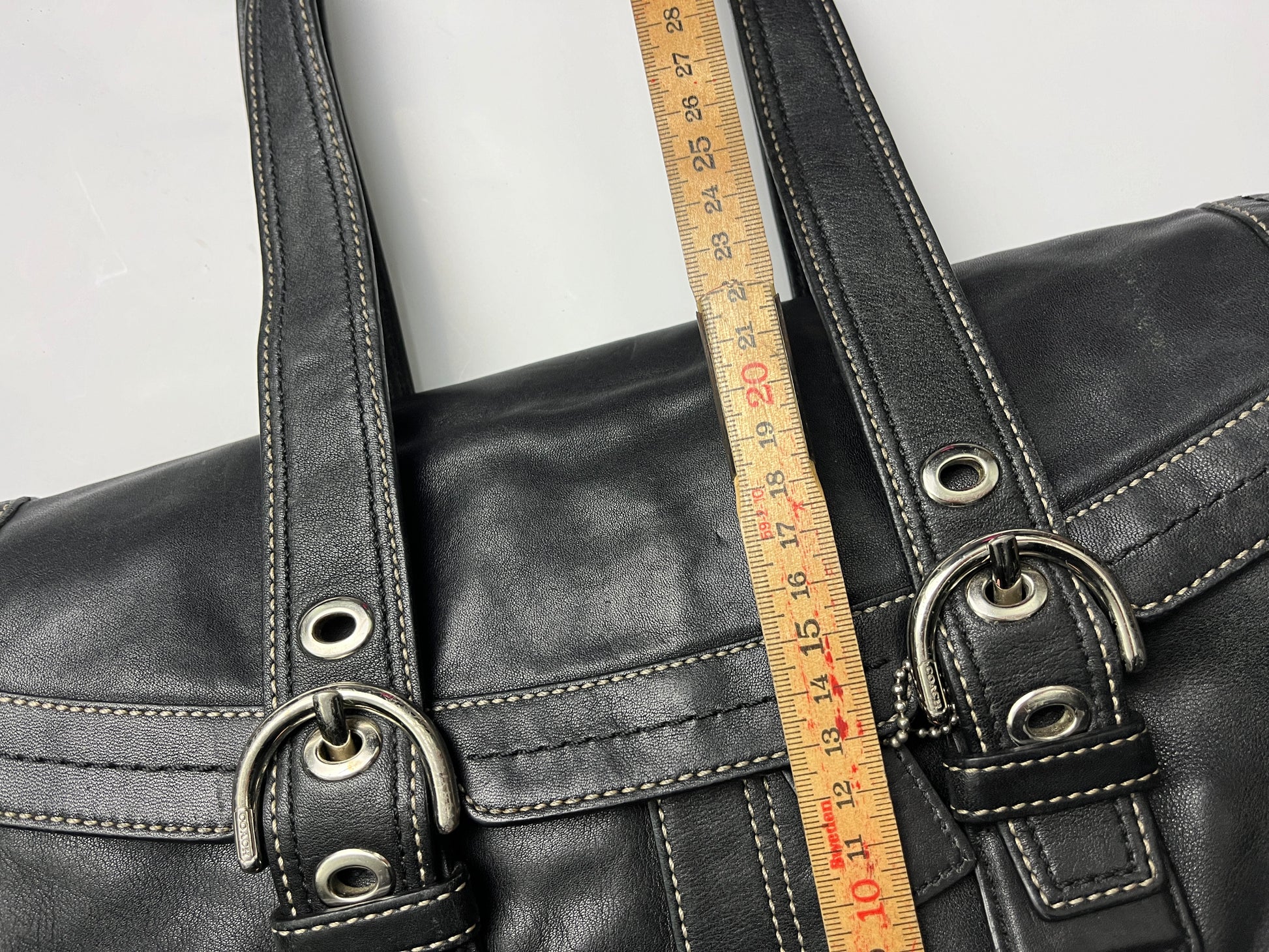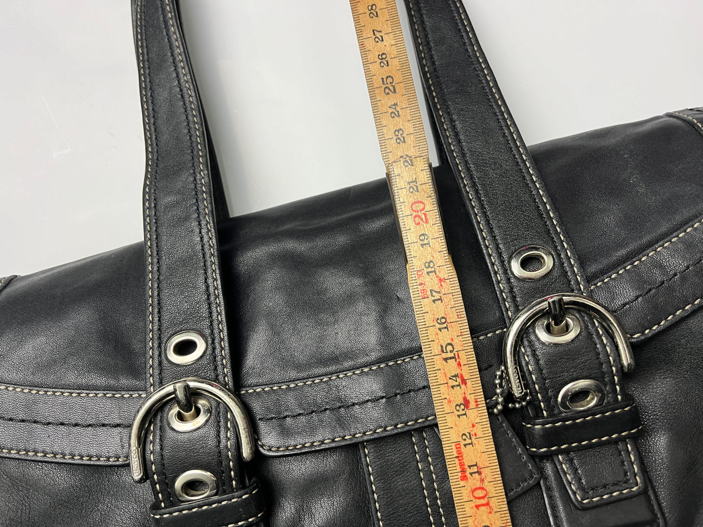 Real leather coach bag in black. very nice size, cou can adjust the handles slightly.