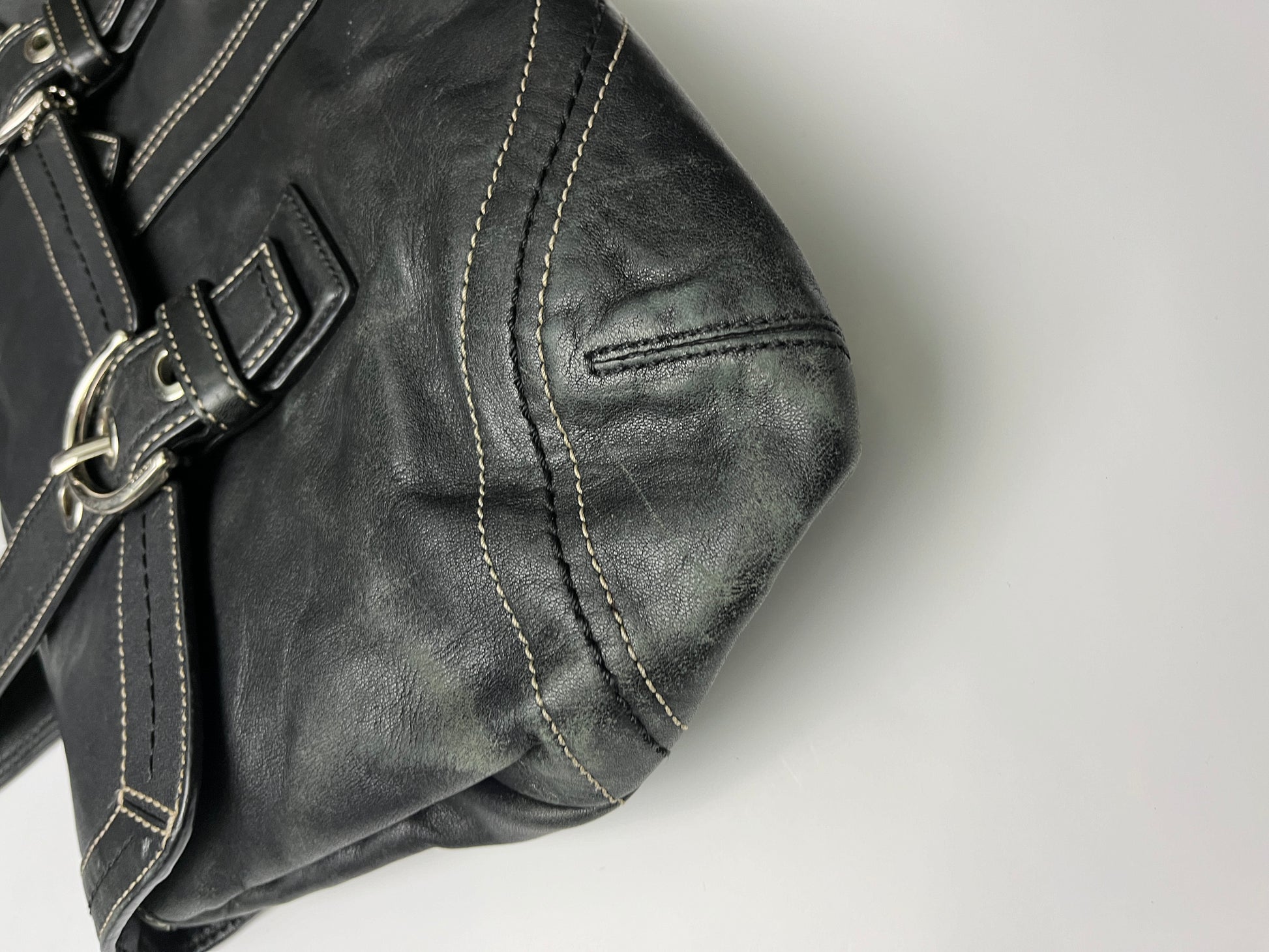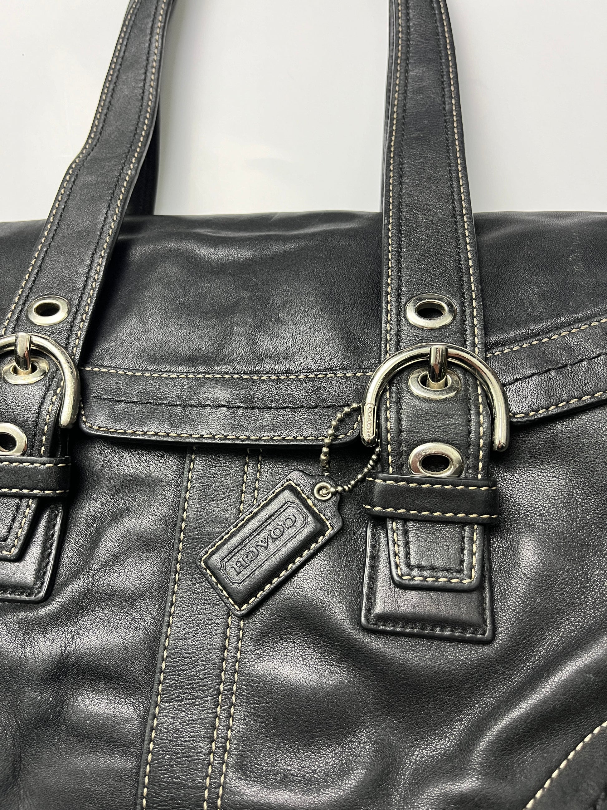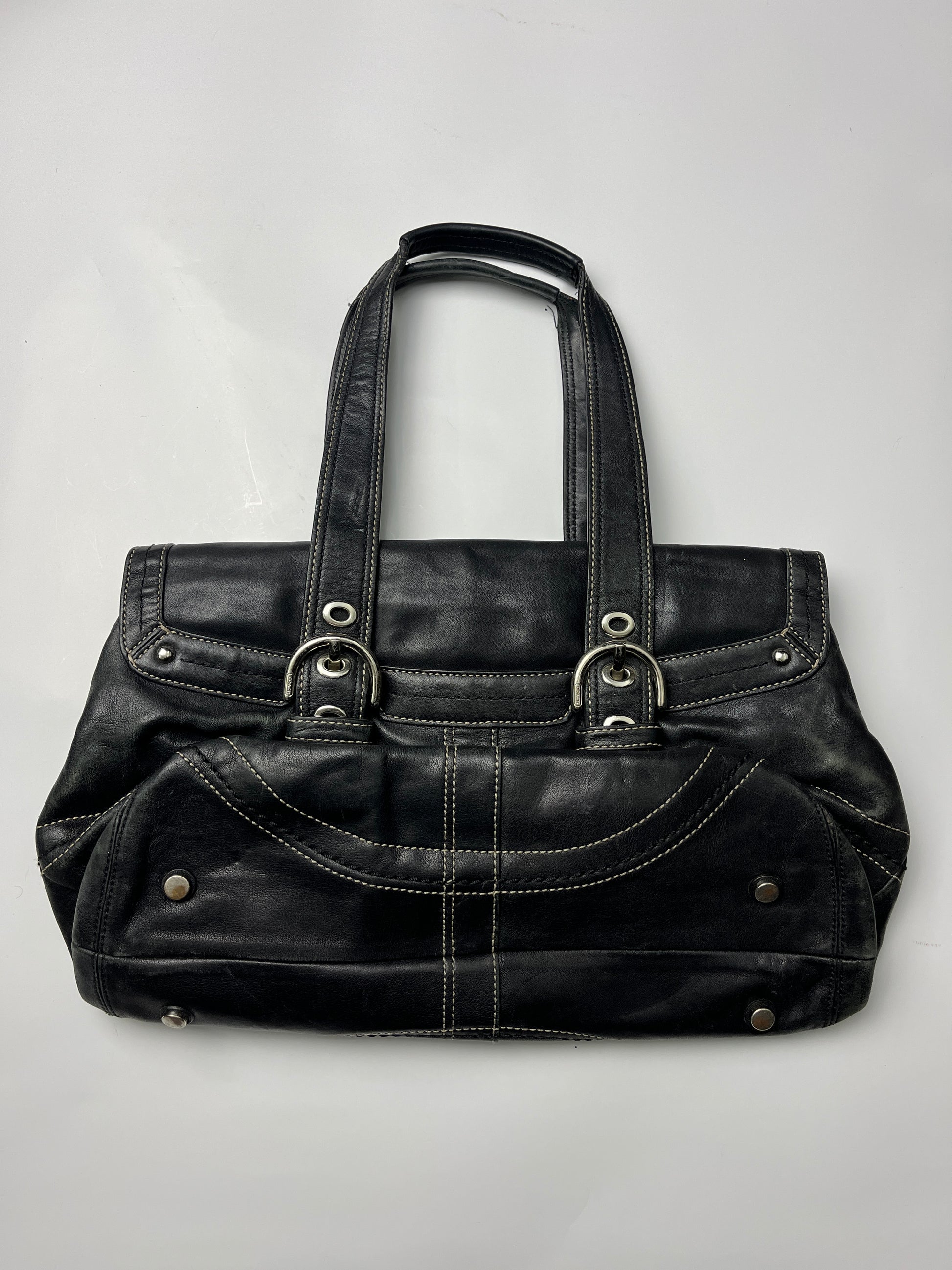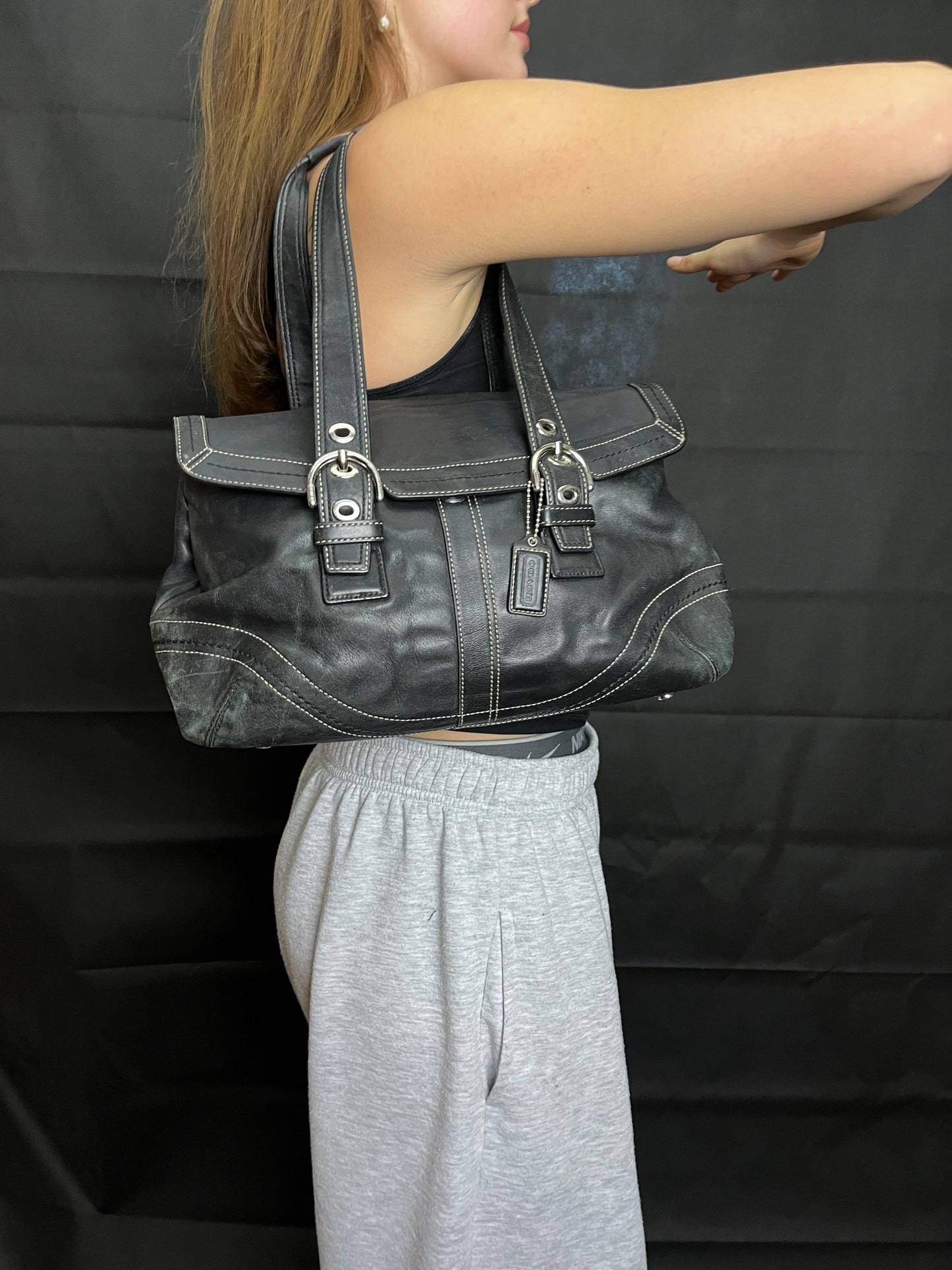 Real leather coach bag in black. very nice size, cou can adjust the handles slightly.