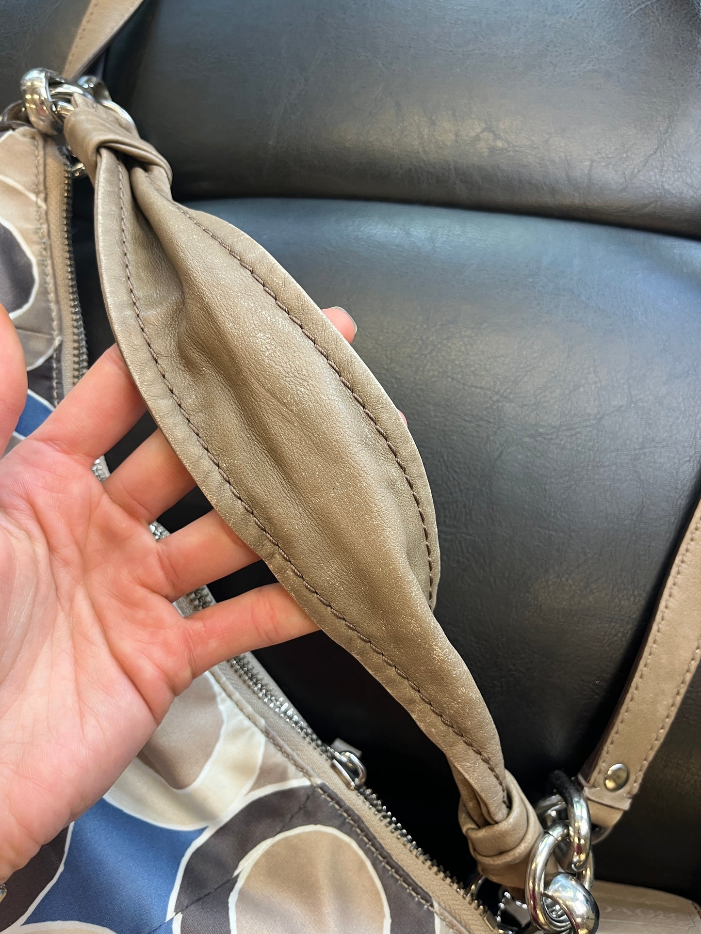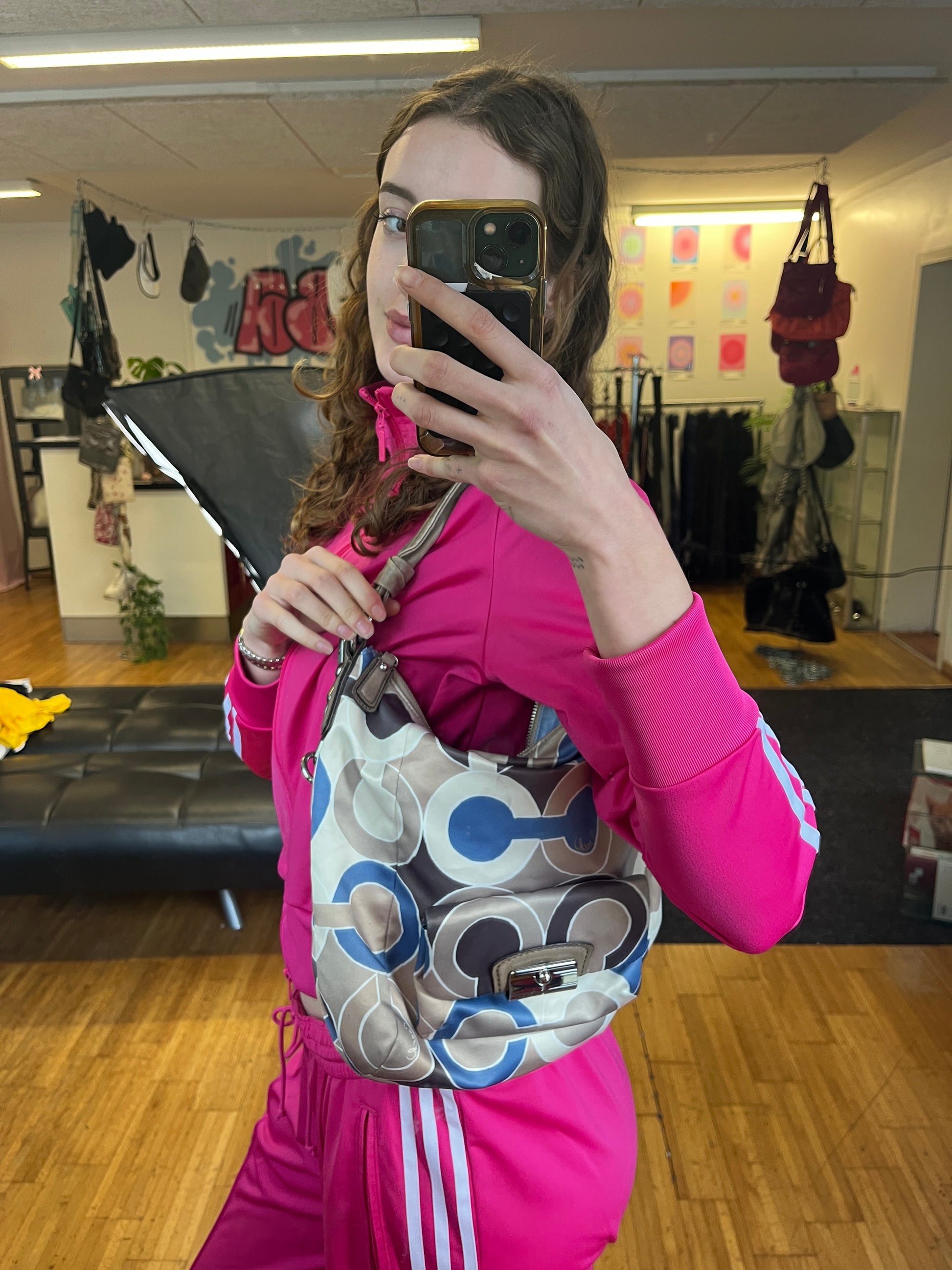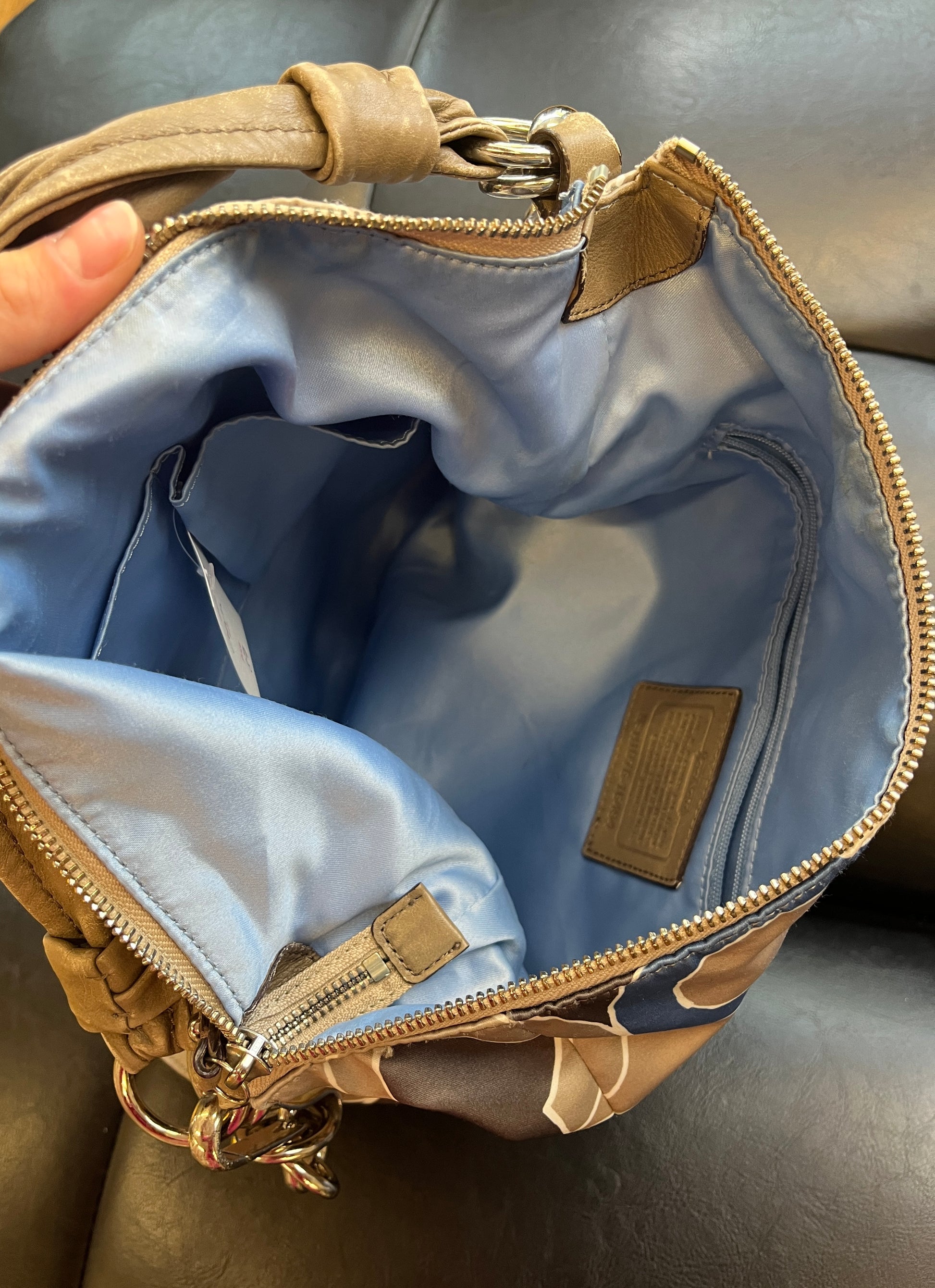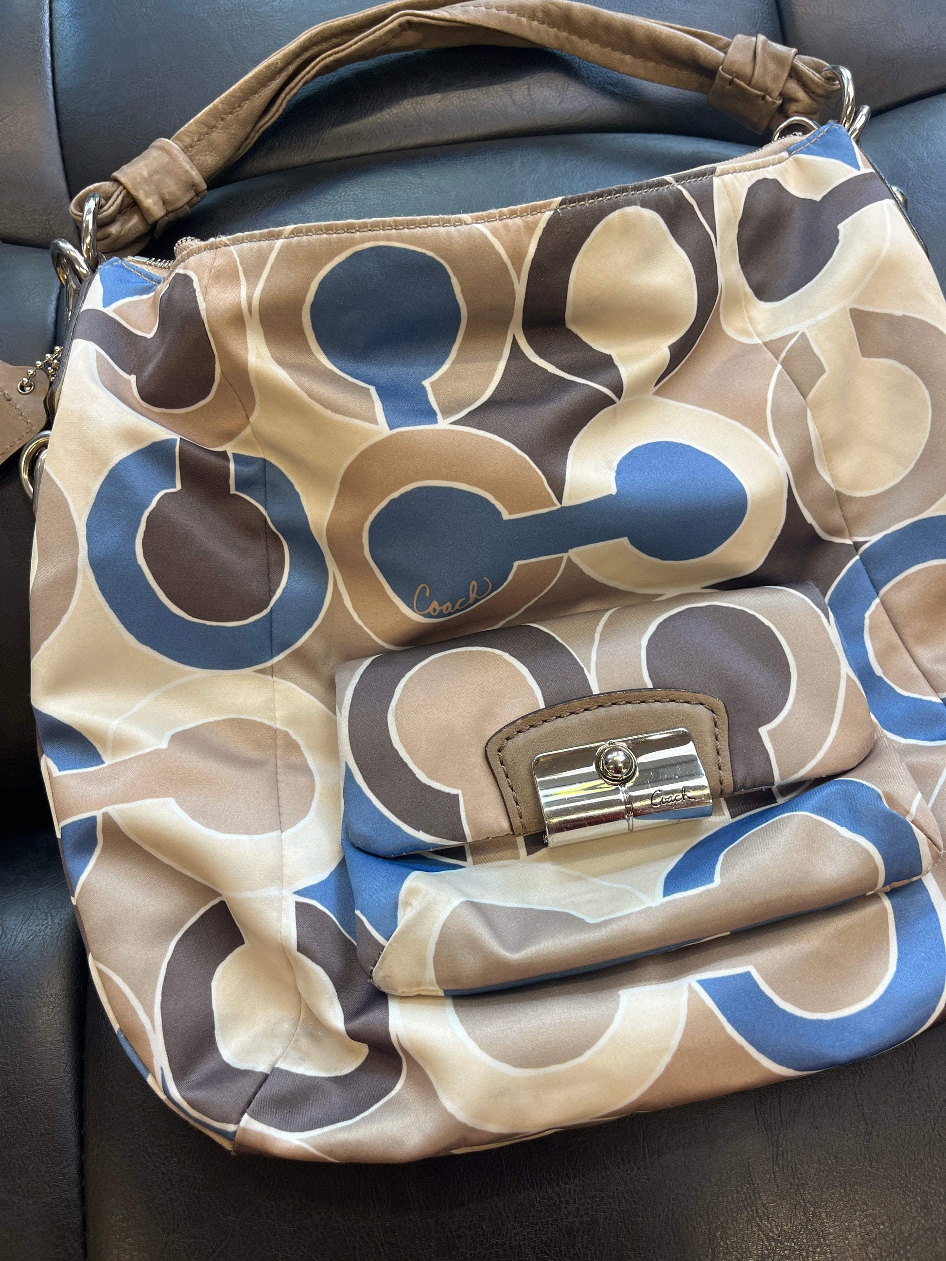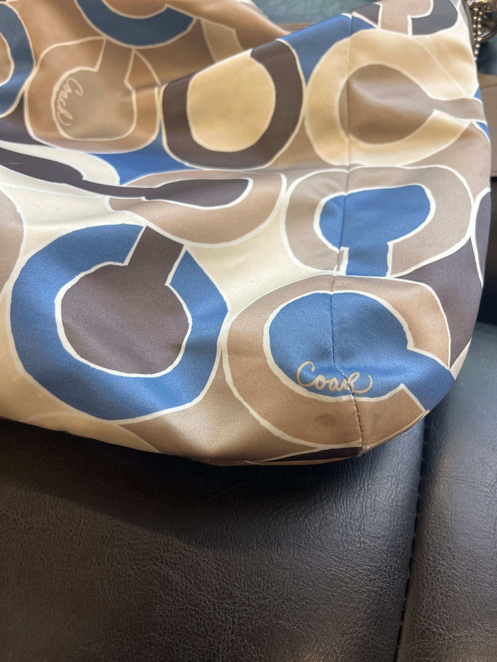 Amazing coach bag with blue colors. I love this one! Very nice size!