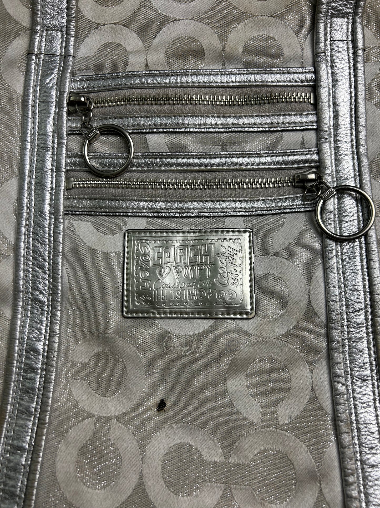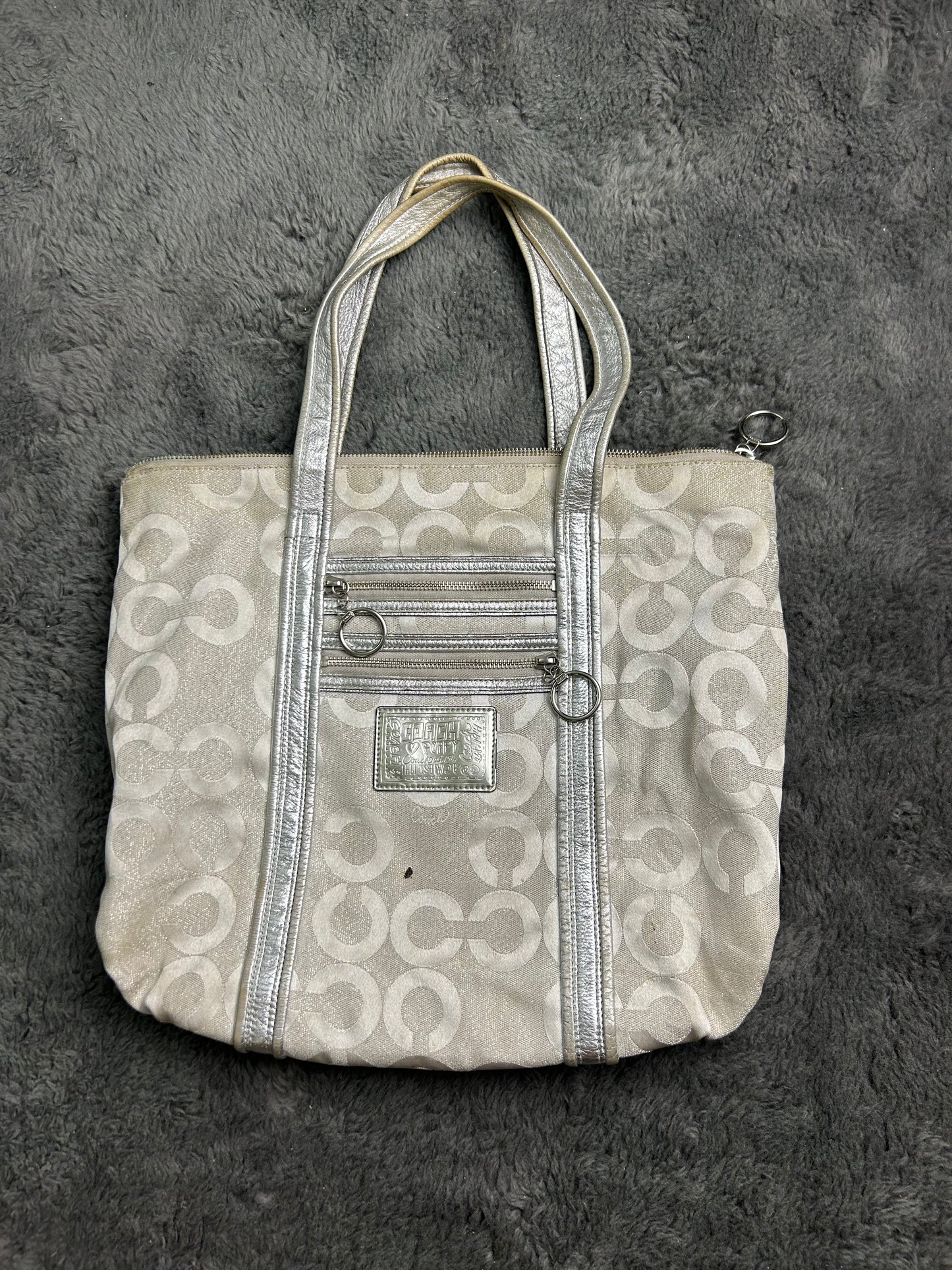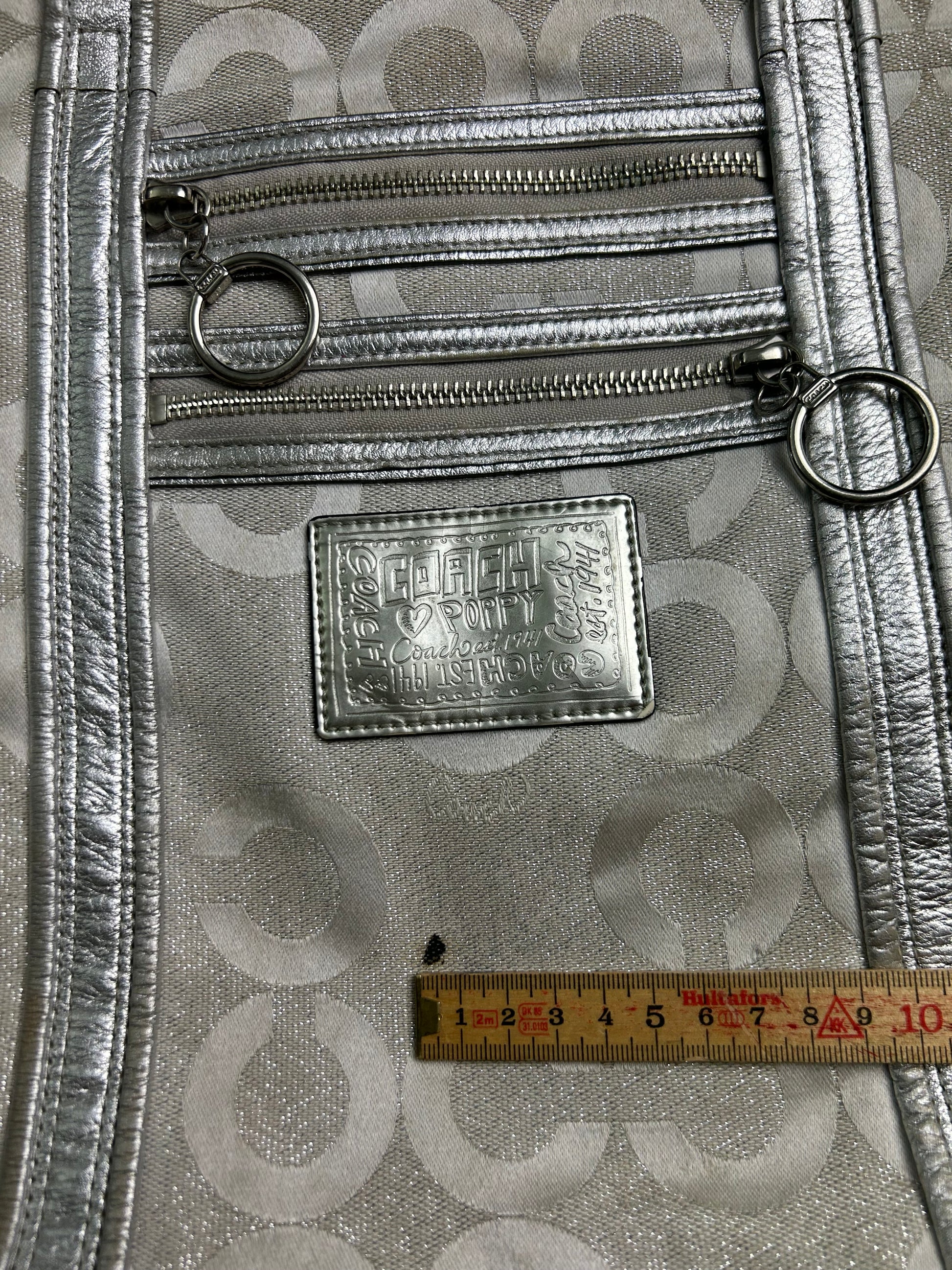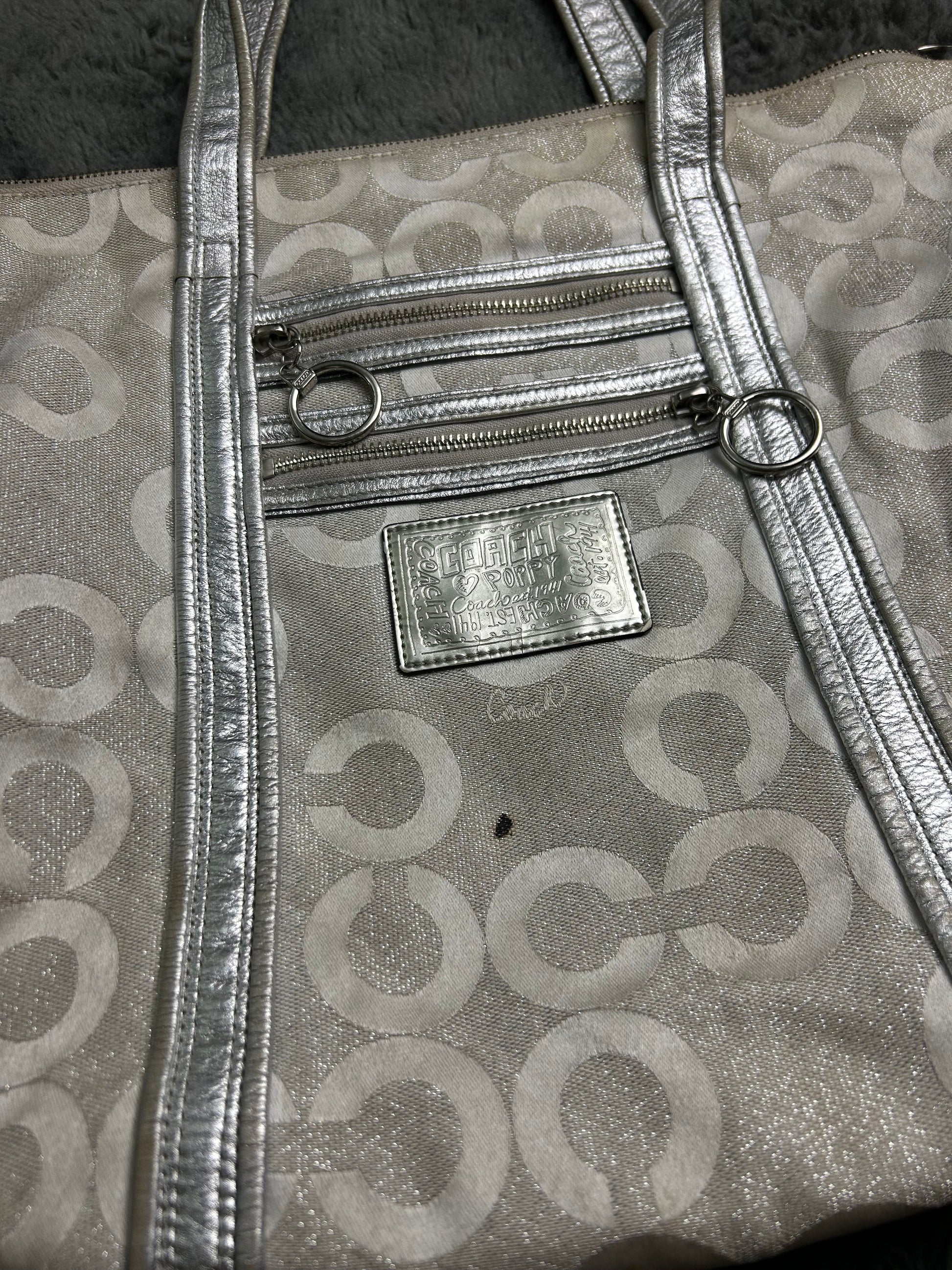 Super special coach bag with sparkly silver detailing. Also silver hardware. Very nice design, spacious.