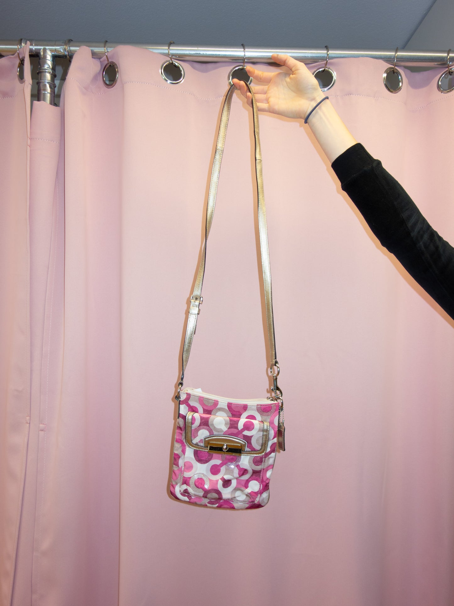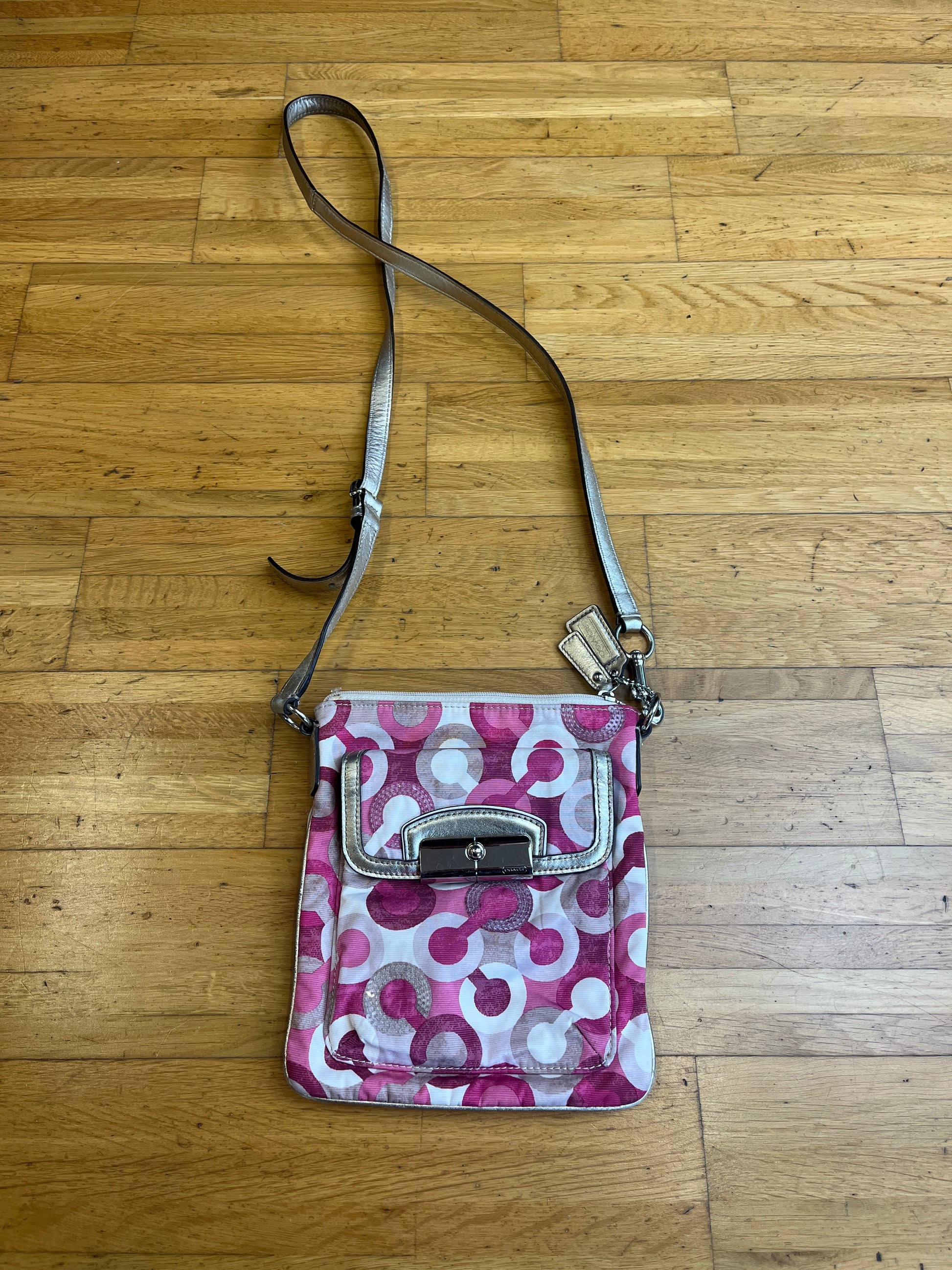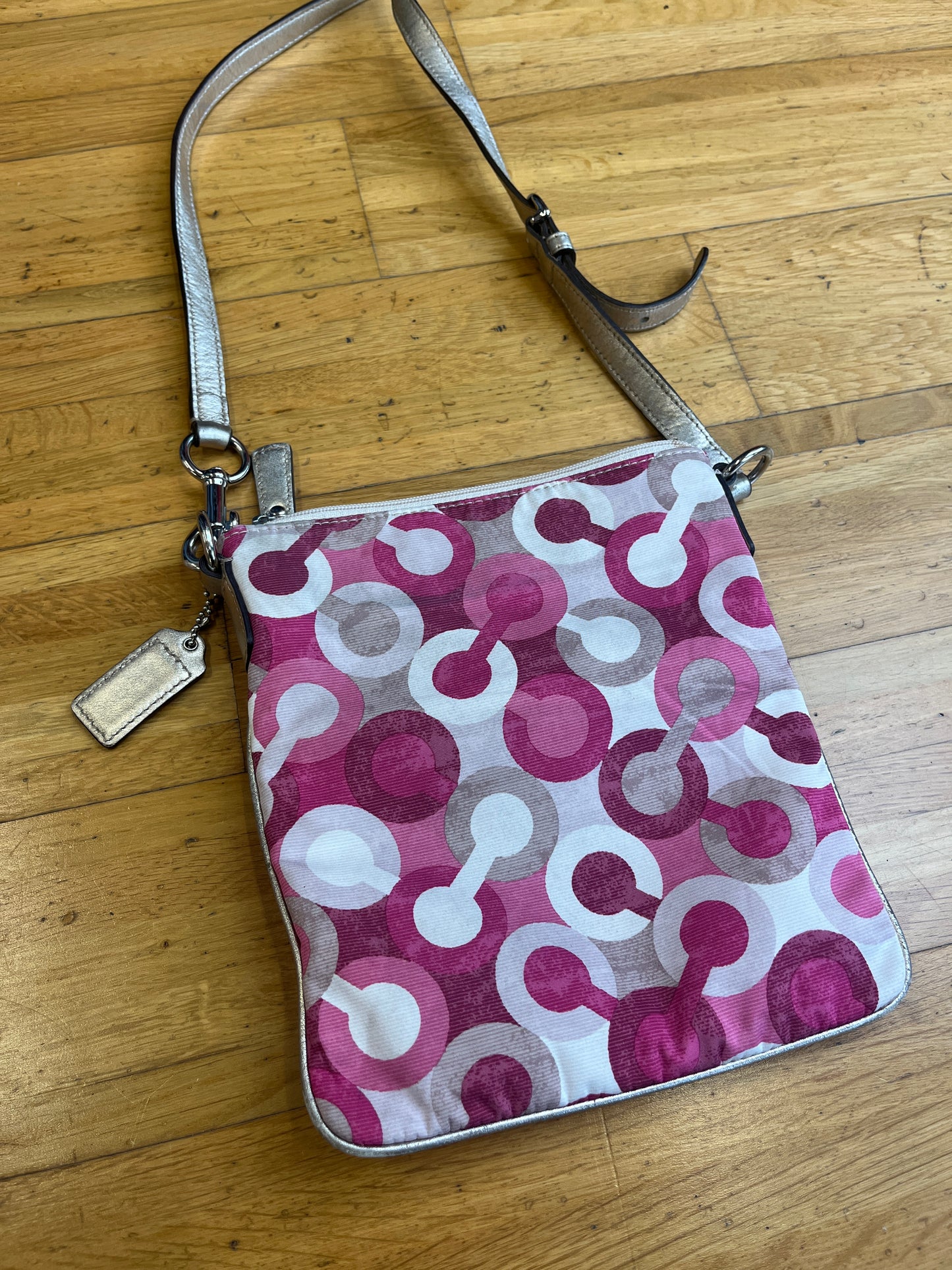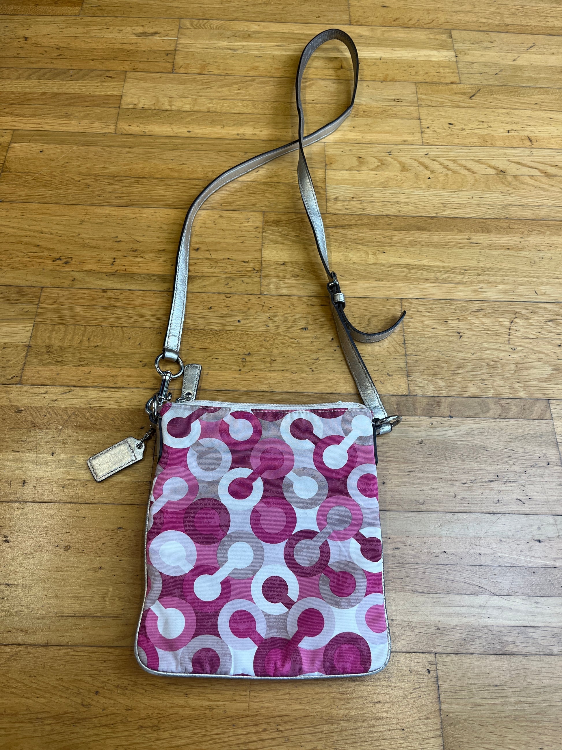 Super cute vintage Coach crossbody! Signature pattern in pink colors. Strap is adjustable but quite long (may put more holes)