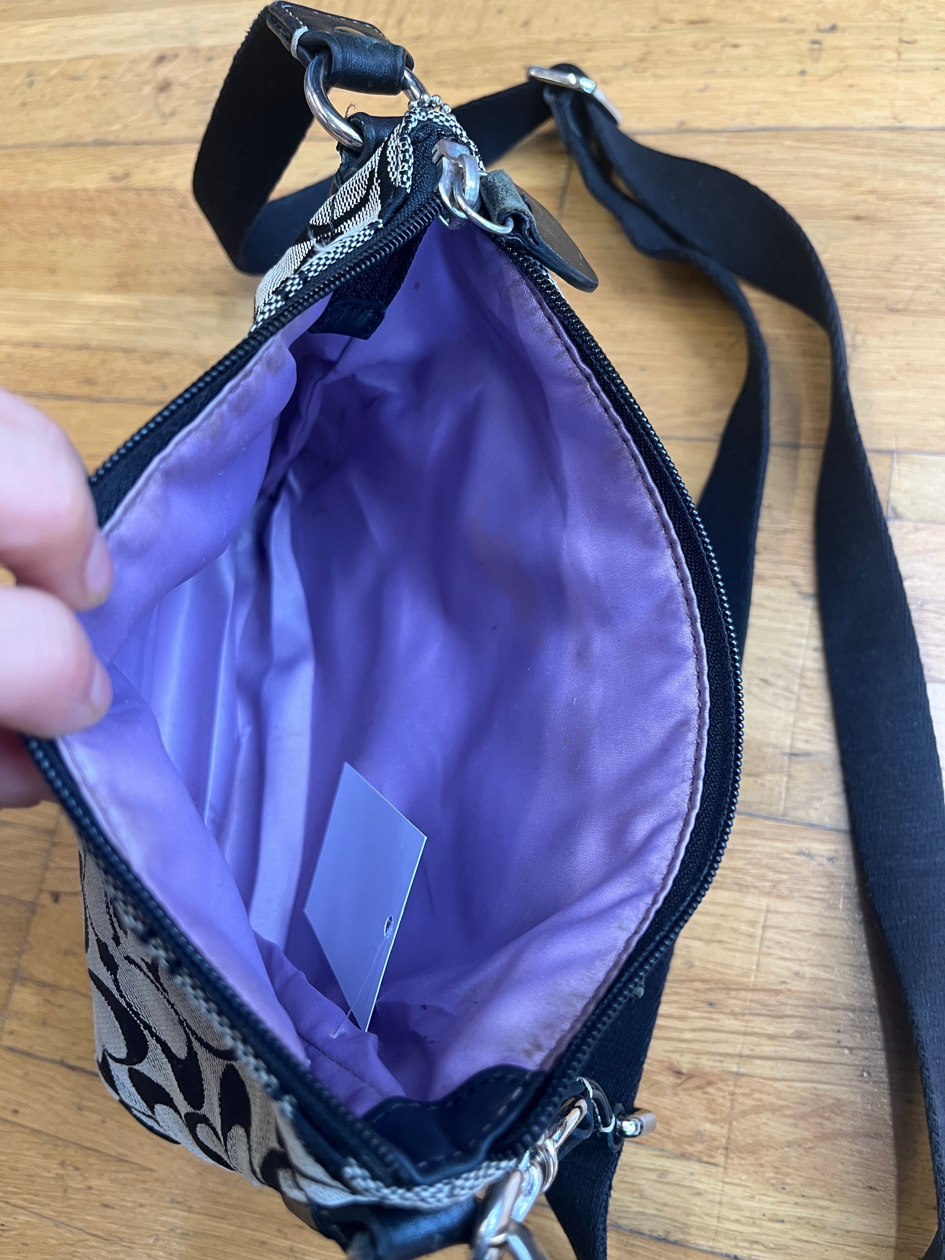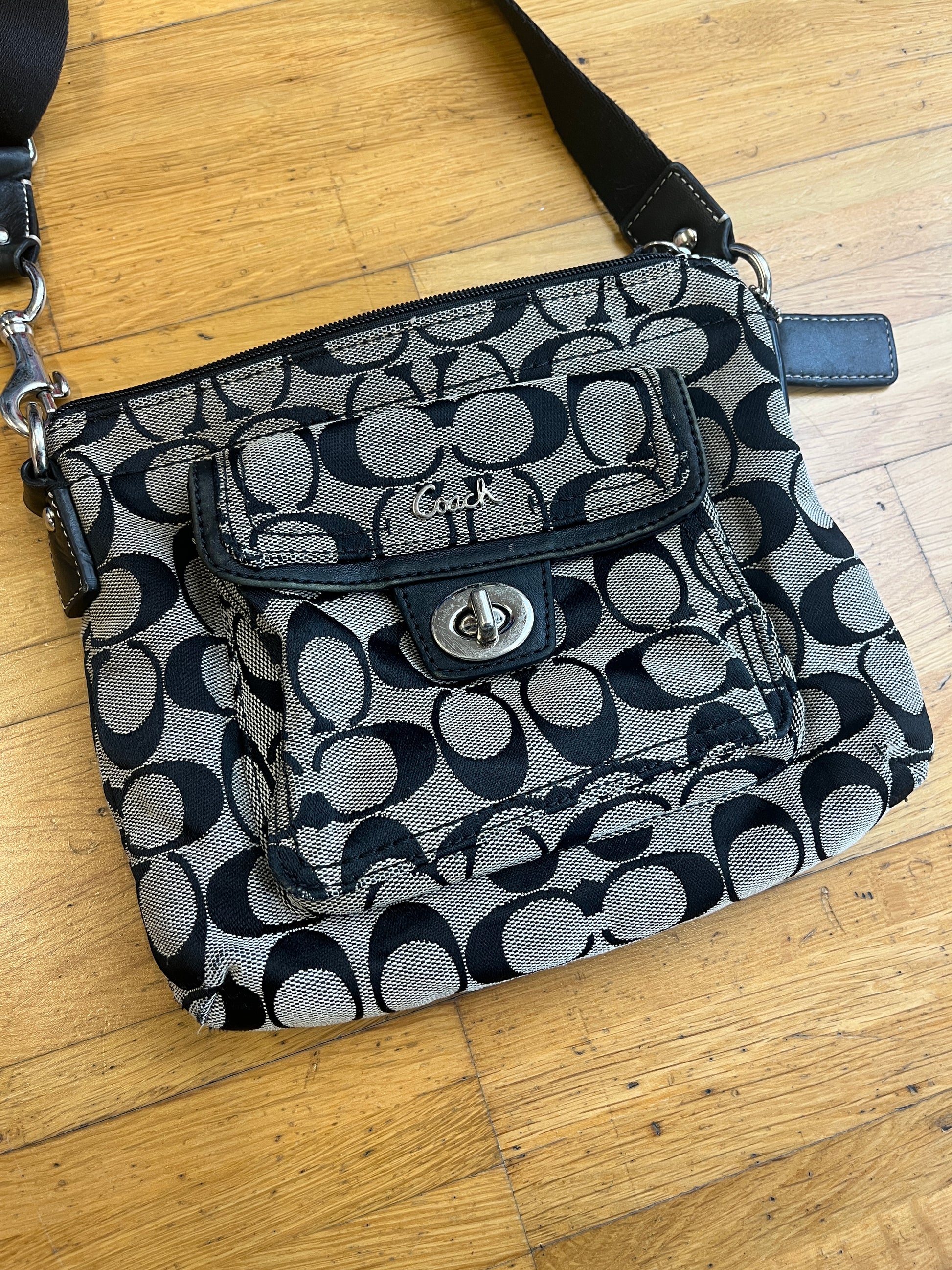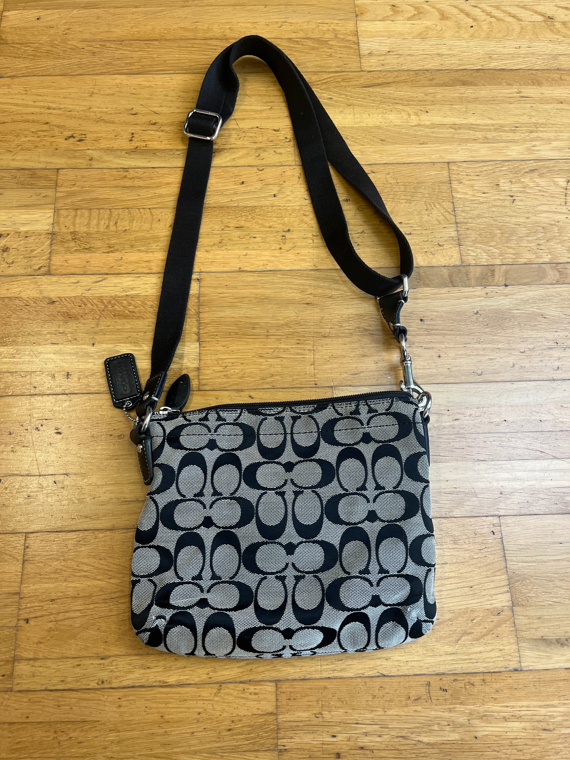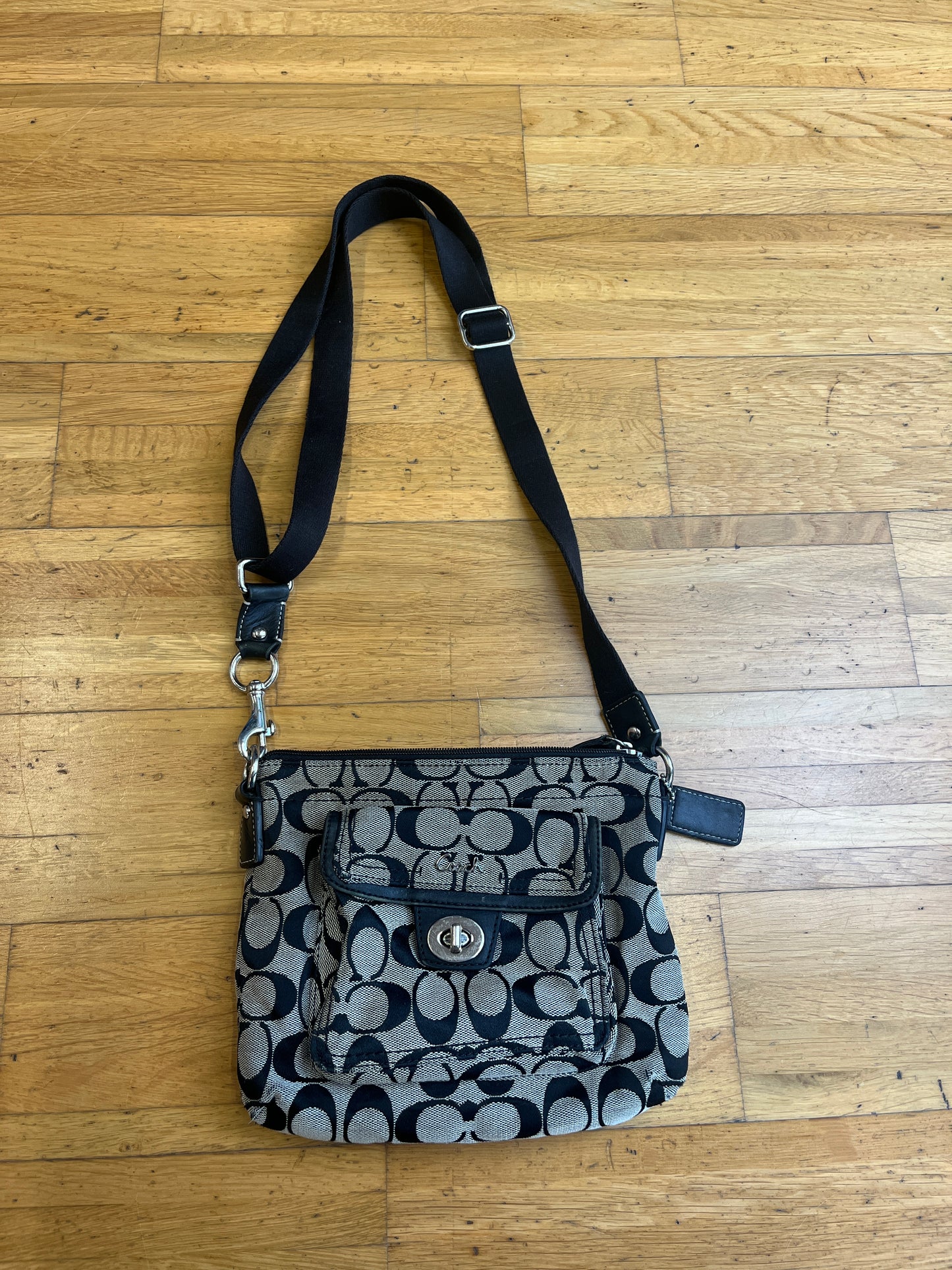 Super cute vintage Coach crossbody! Monogram pattern in black. Strap is adjustable.