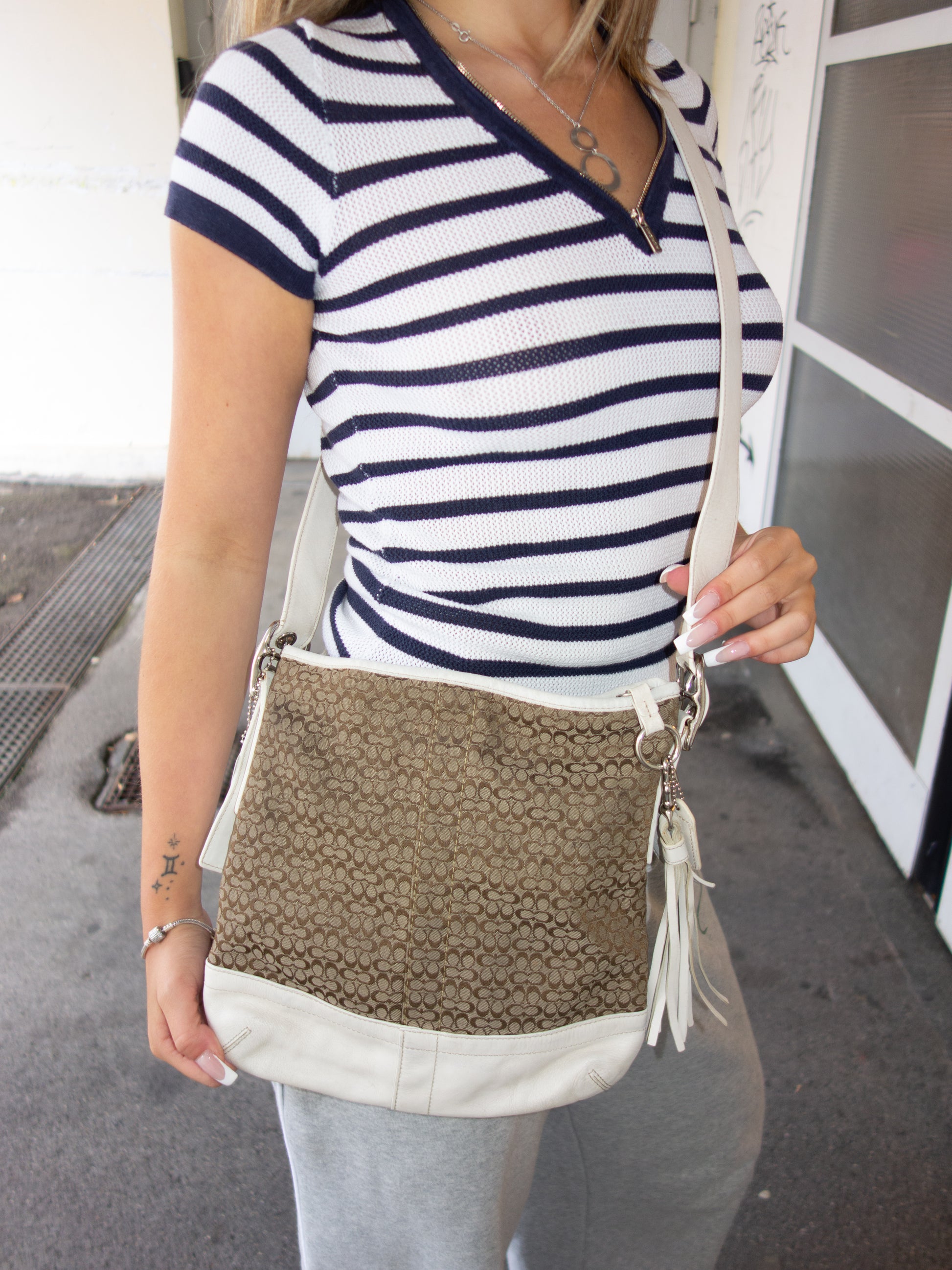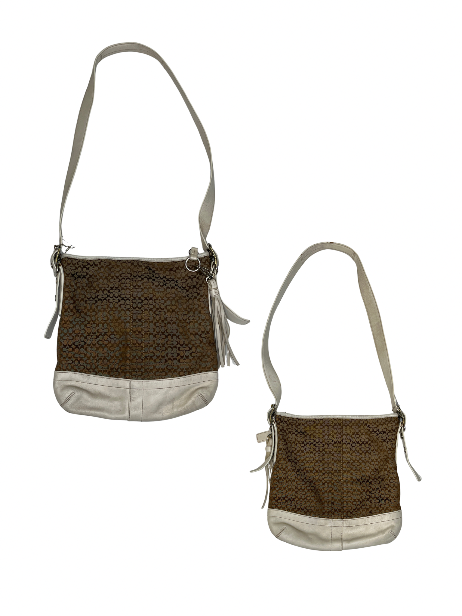 Crossbody bag from Coach! Very nice design. Has enough space to carry the most important things. Silver hardware. with real leather