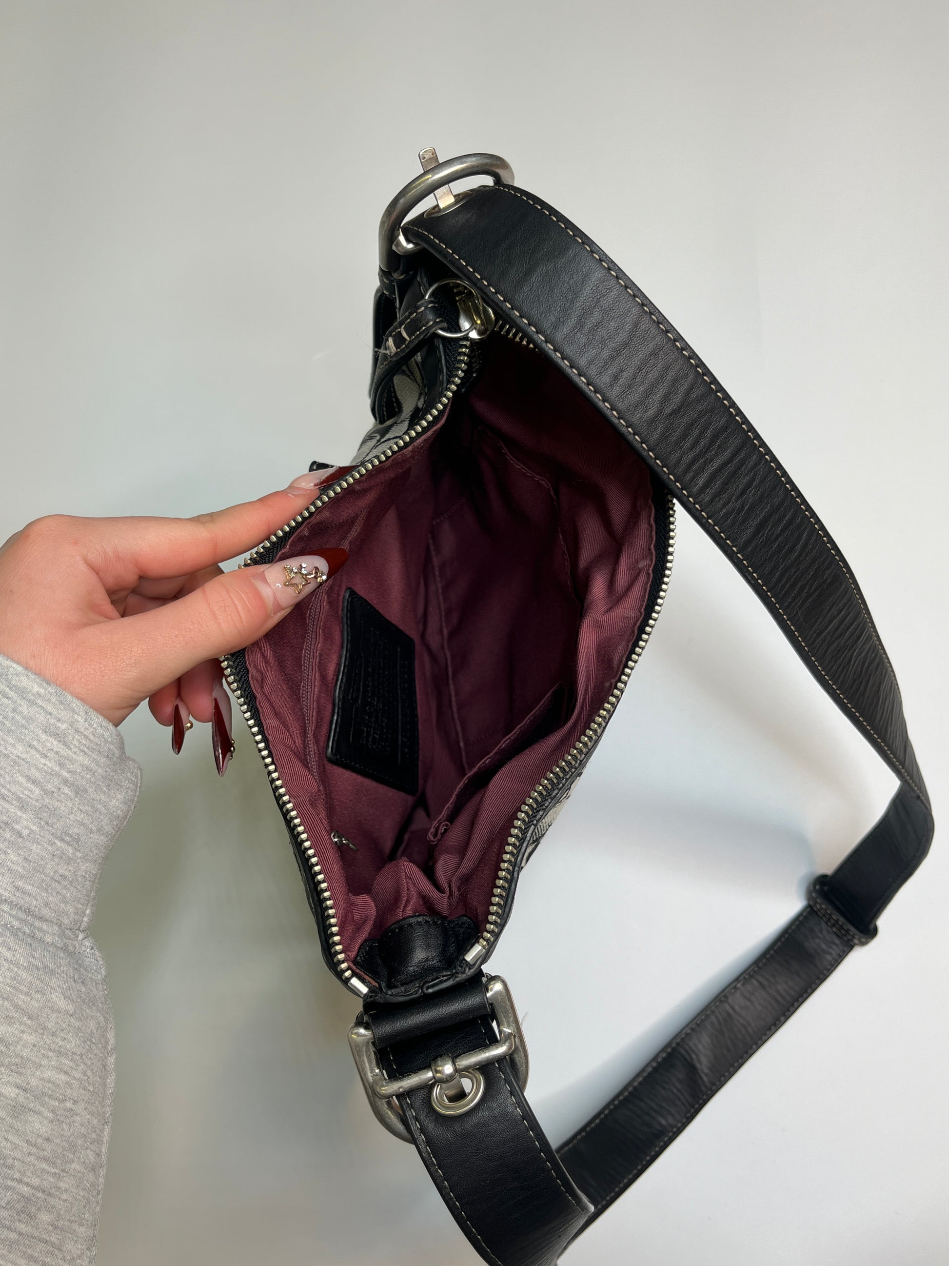 Crossbody bag from Coach! Very nice design. Has enough space to carry the most important things. Silver hardware.