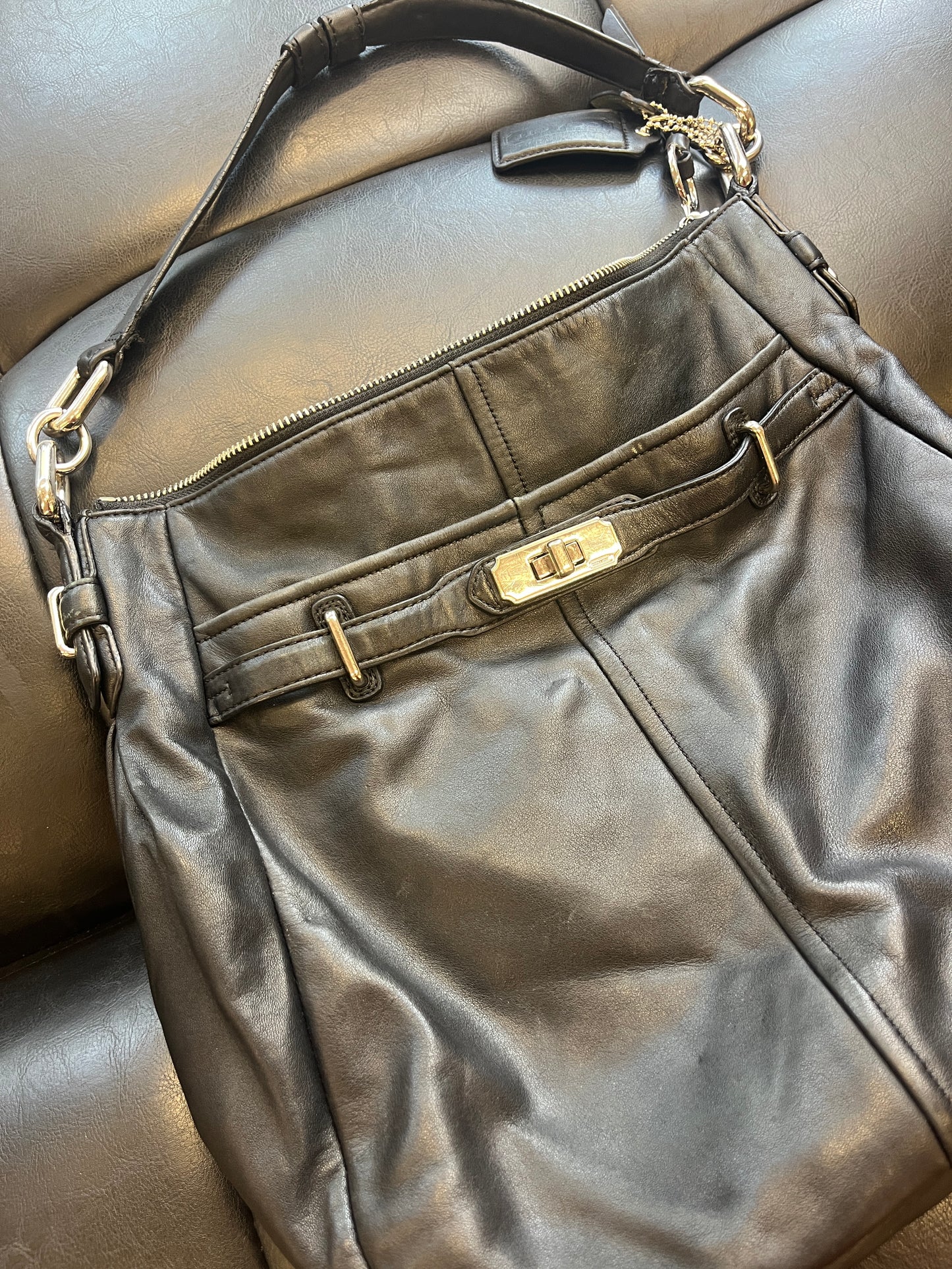 Amazing coach bag in Leather. I love this one! It has this birkin-style front.