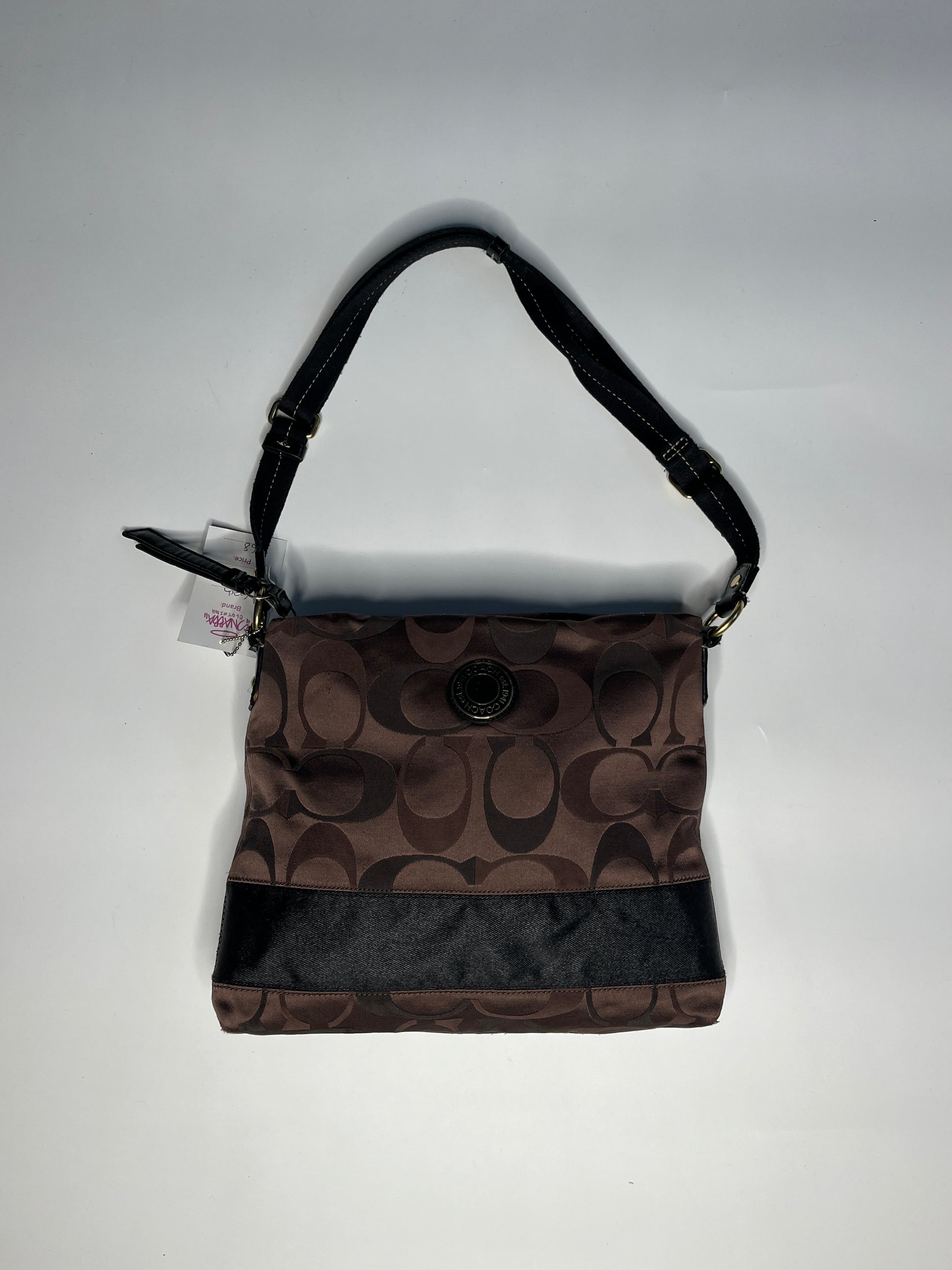 Medium sized bag from Coach. Cutest bag in Monogram Style. Very nice bag with special details. Has enough space to carry the most important things. Beautiful colourway!