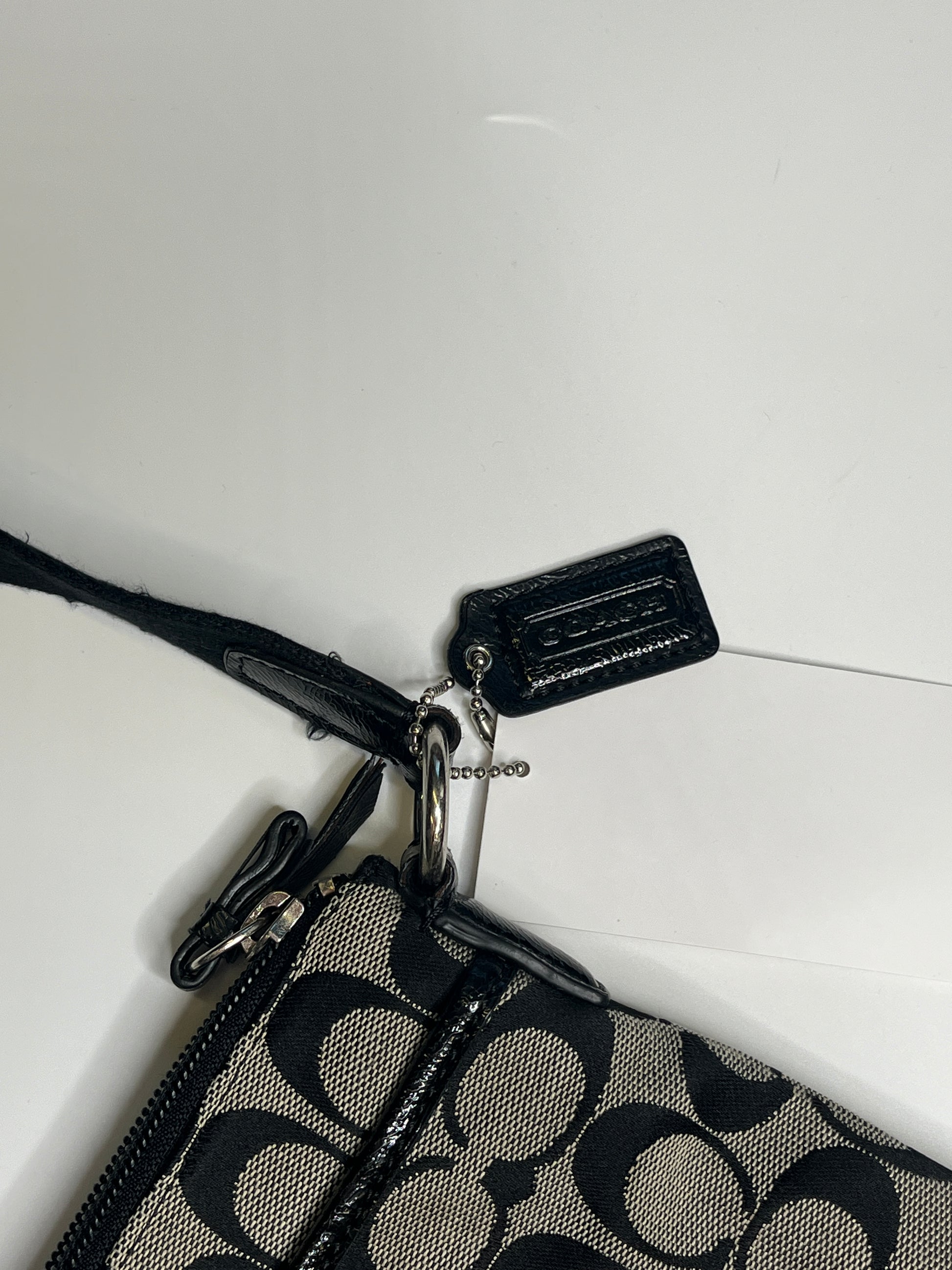 Small sized bag from Coach. Cutest bag in Monogram Style. Very nice sling bag with special details. Has enough space to carry the most important things. Beautiful colourway!