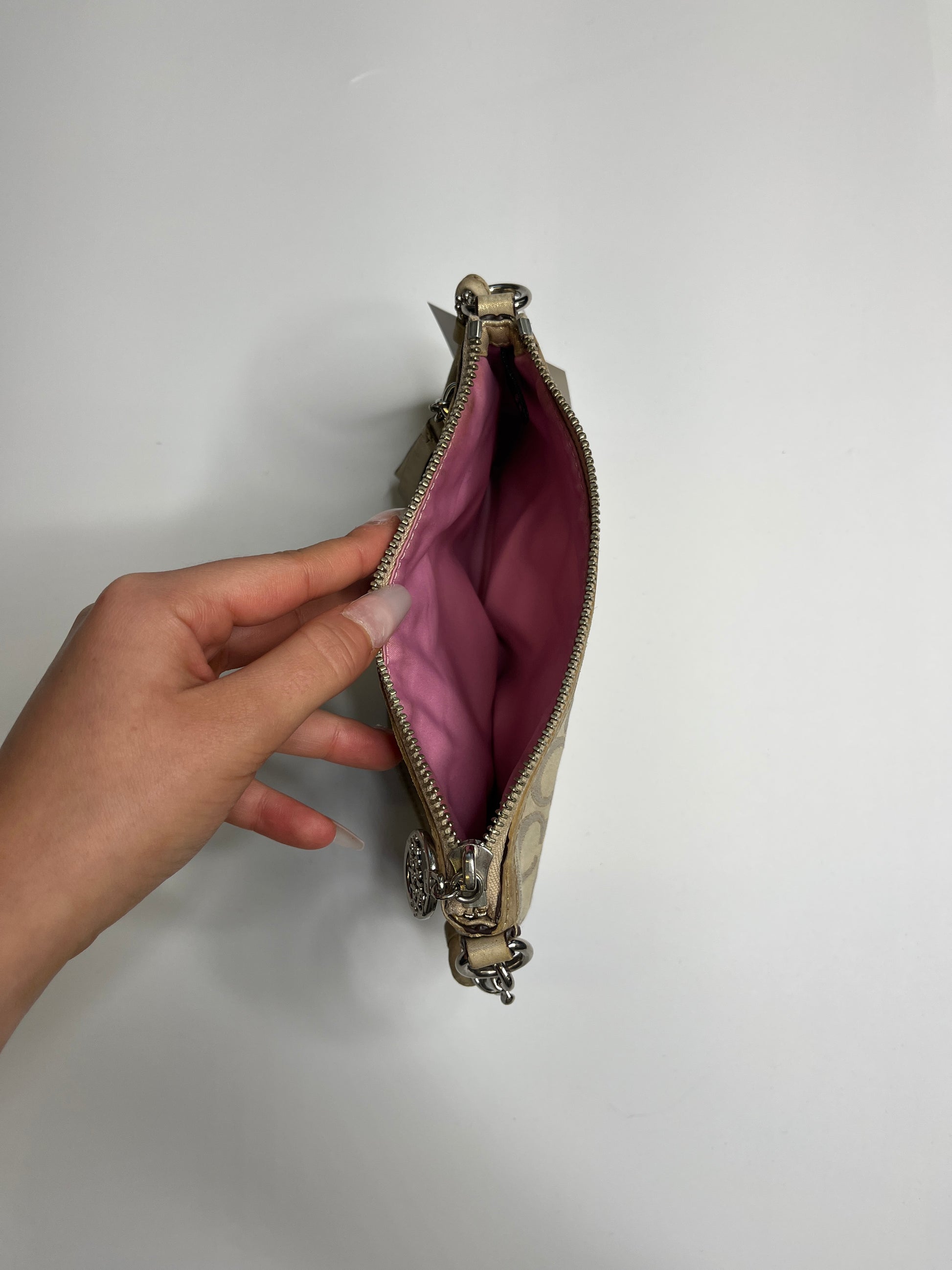 Small sized bag from Coach! Cutest bag in Monogram Style and pink design inside. Very nice bag and in good condition.