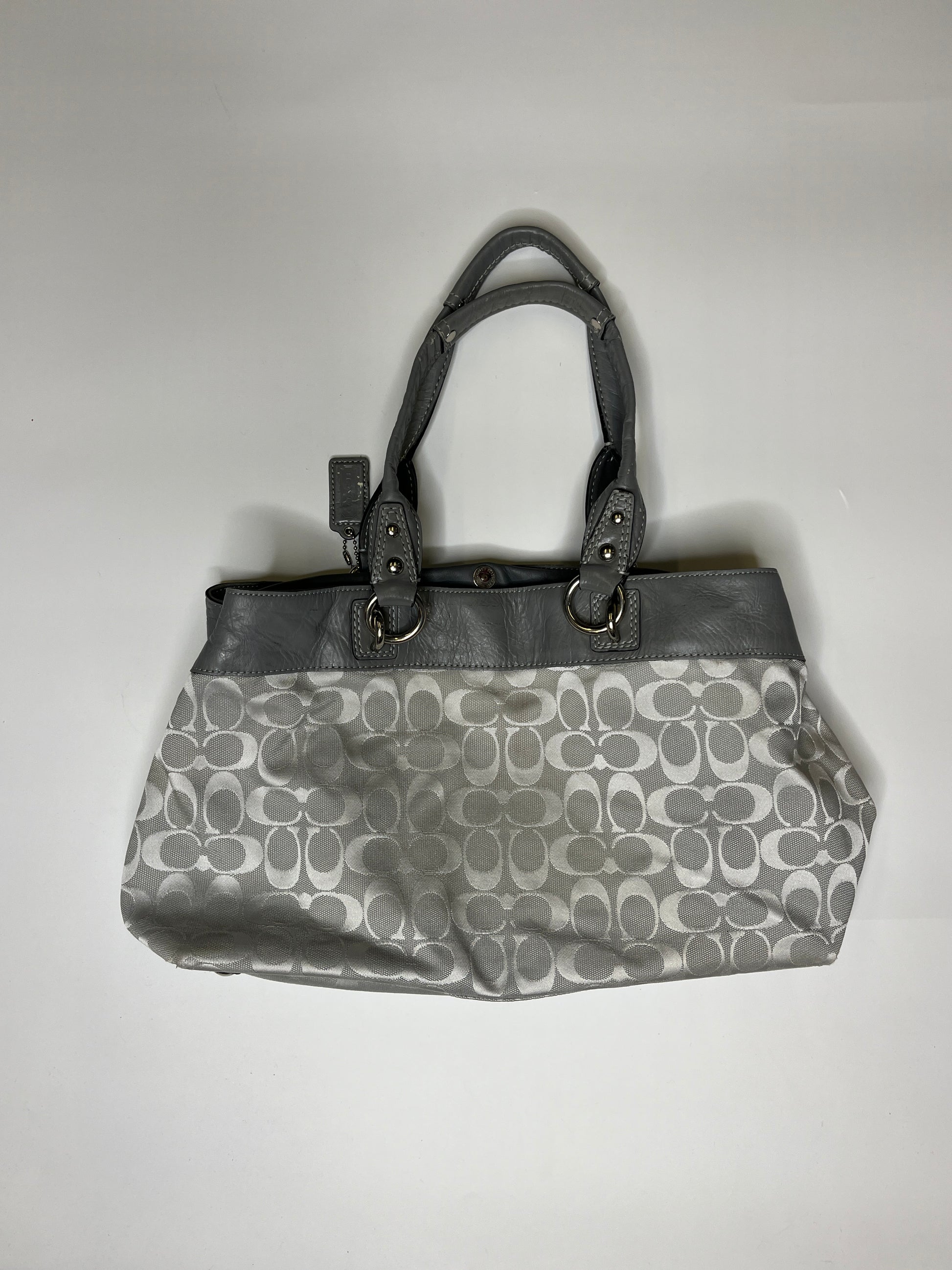 Medium sized bag from Coach! Cutest bag in Monogram Style. Very nice bag and your laptop may fit. Has enough space to carry the most important things. Silver heardware.