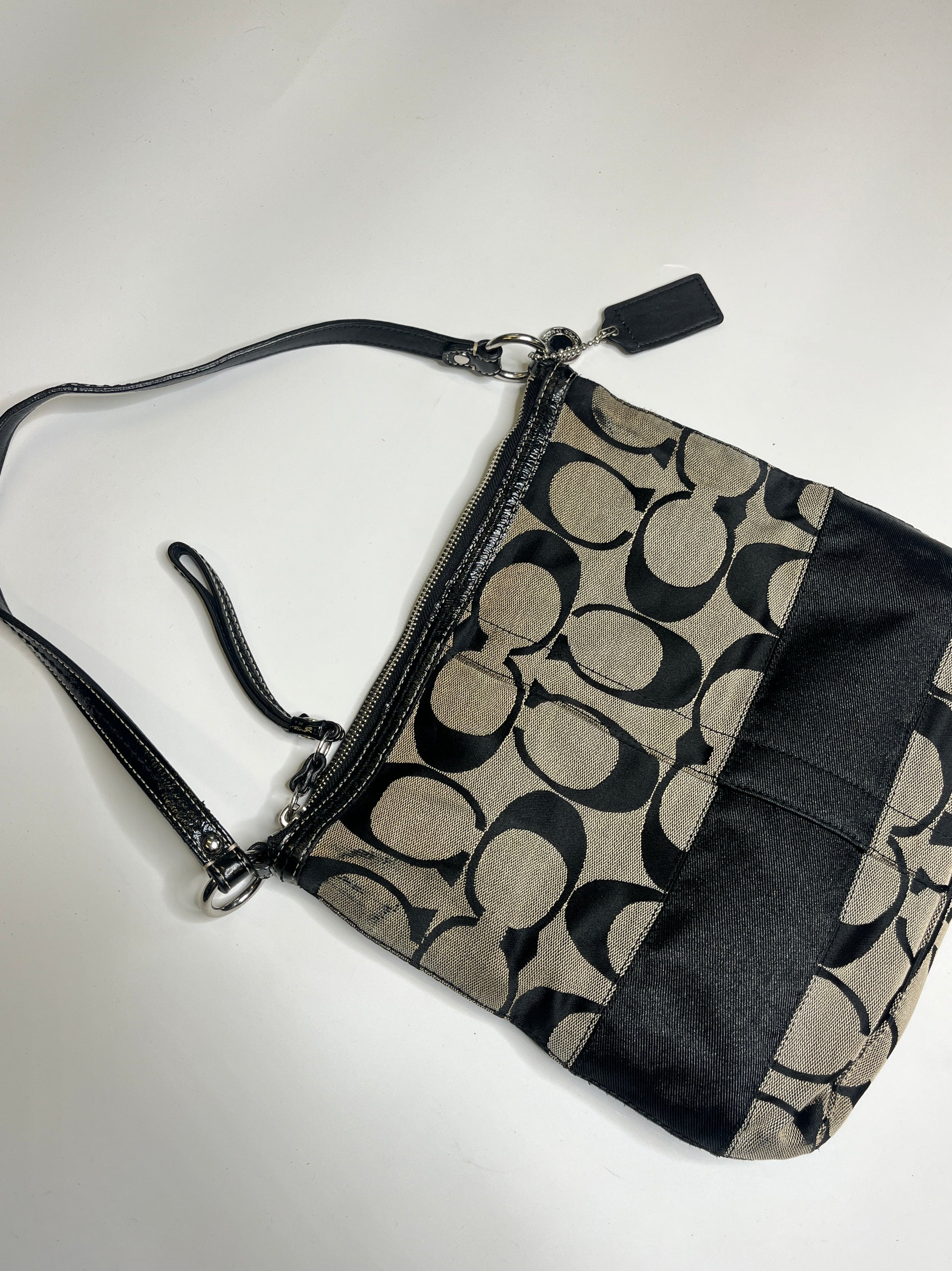 Amazing Coach monogram bag with a beautiful design! The bag has enough space and it's a practical everyday bag. silver hardware. Genuine leather strap.