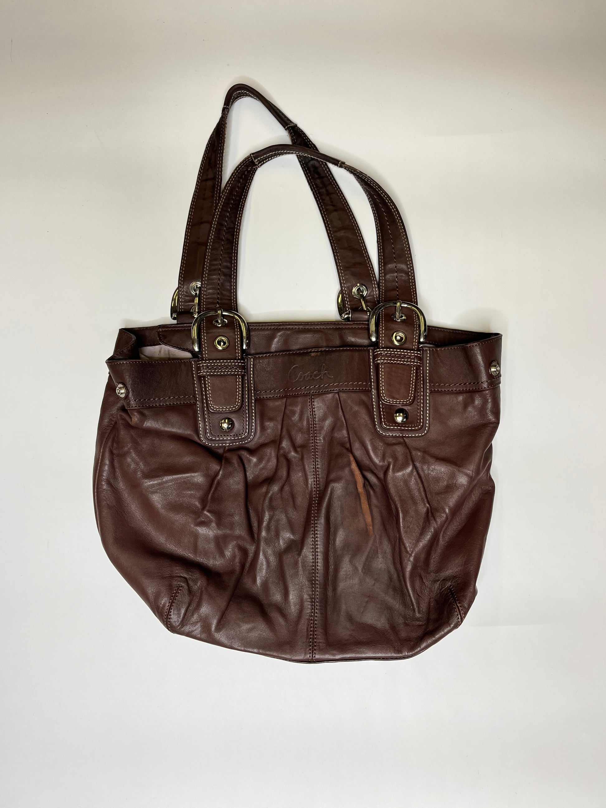 Amazing Coach bag with a beautiful design! the bag has enough space and practical everyday bag. Genuine leather, for a long wear. There are buttons on the side to change the shape of the bag!