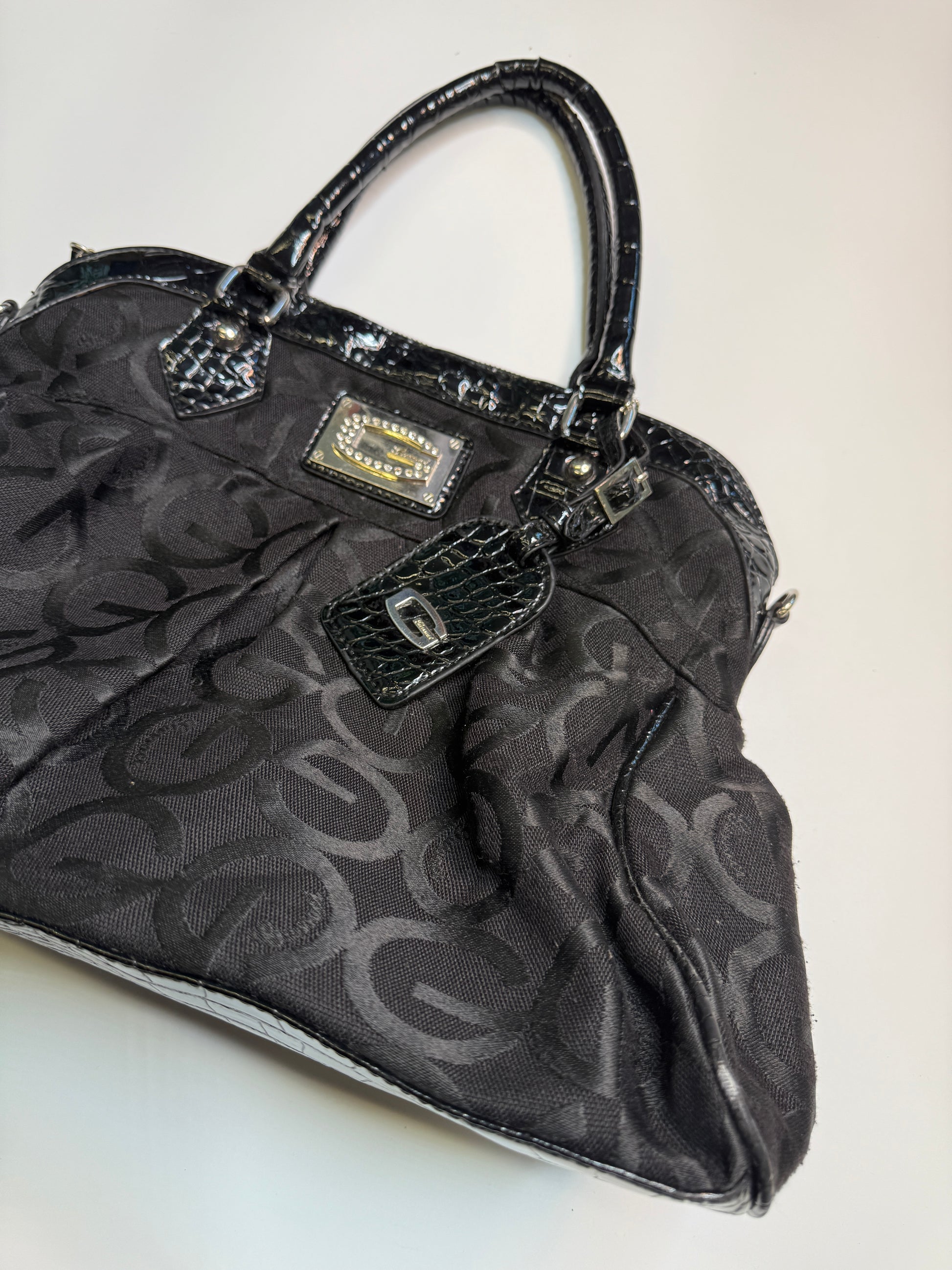 Super nice Gussaci purse in monogram style. Quite spacious & silver hardware. Big G-Logo on the front.