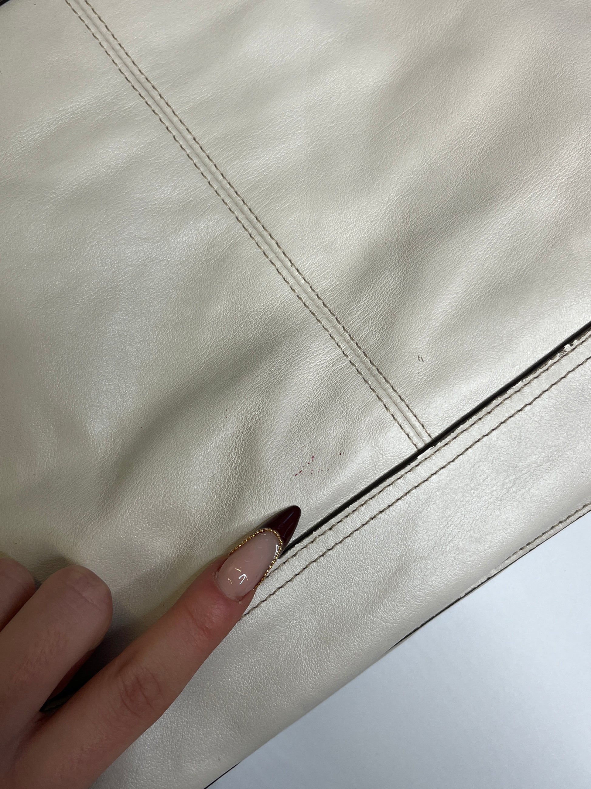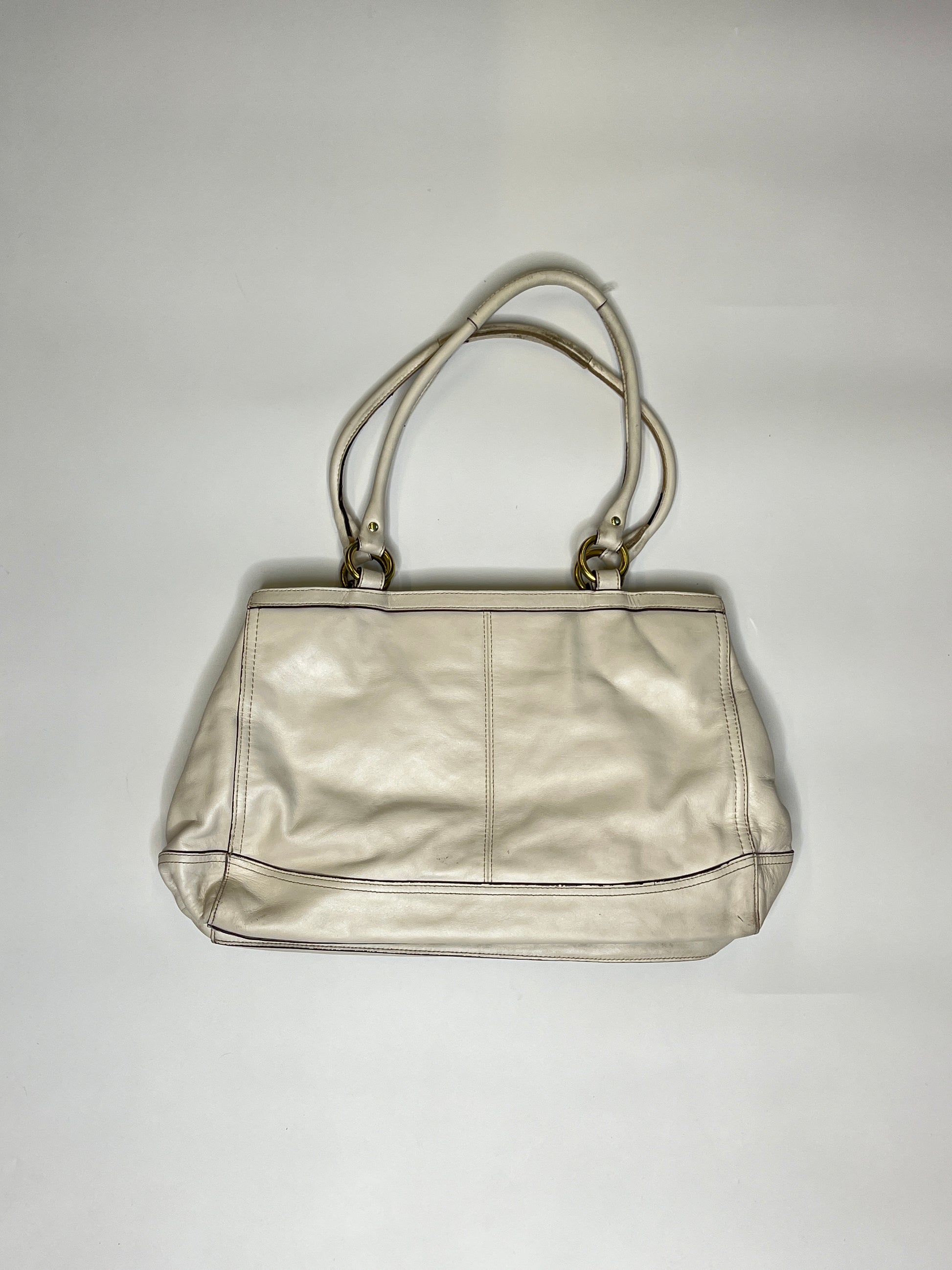white bag from Coach! Very nice design. Has enough space to carry the most important things. Gold hardware. Cutest charms attached.