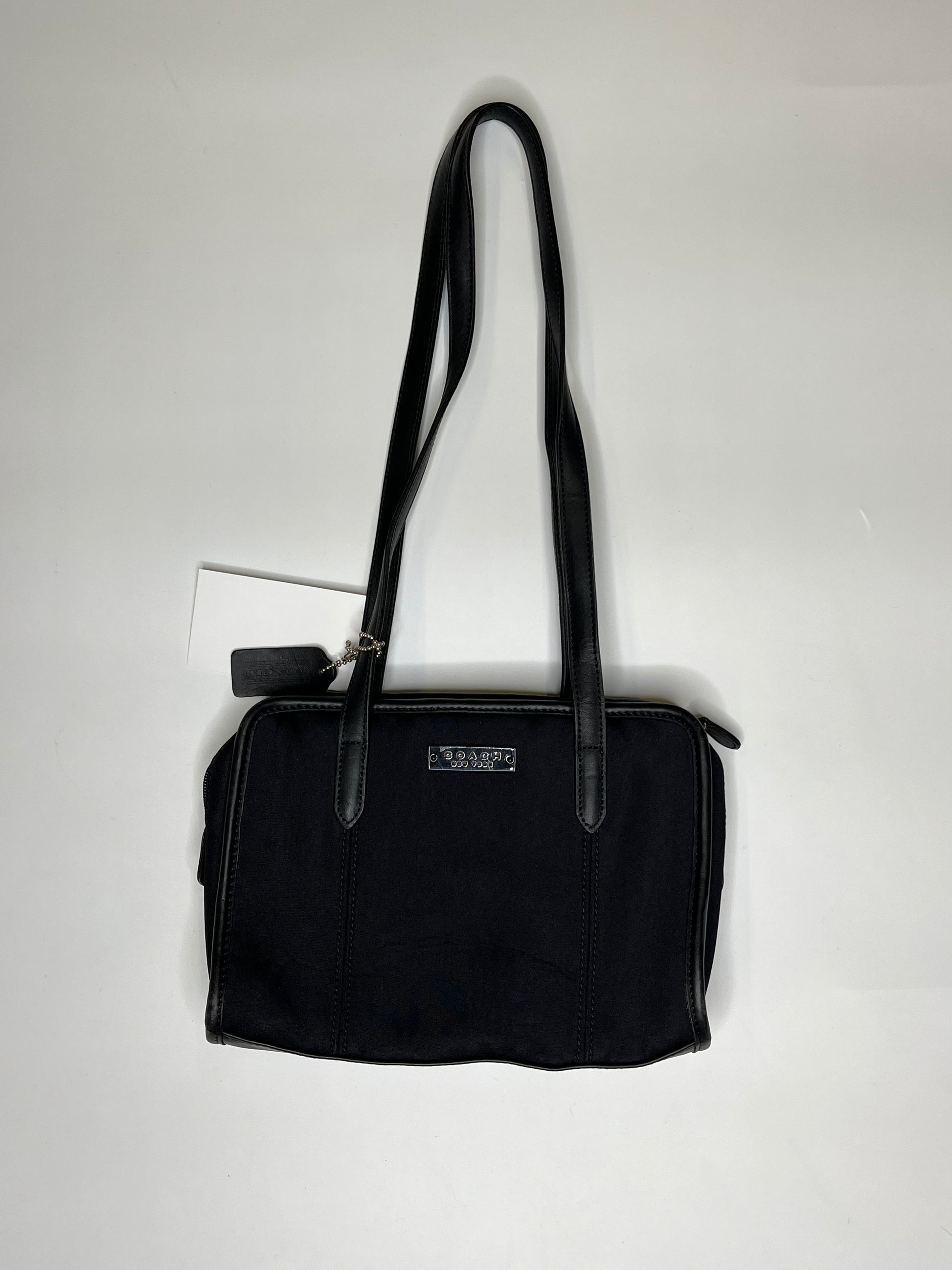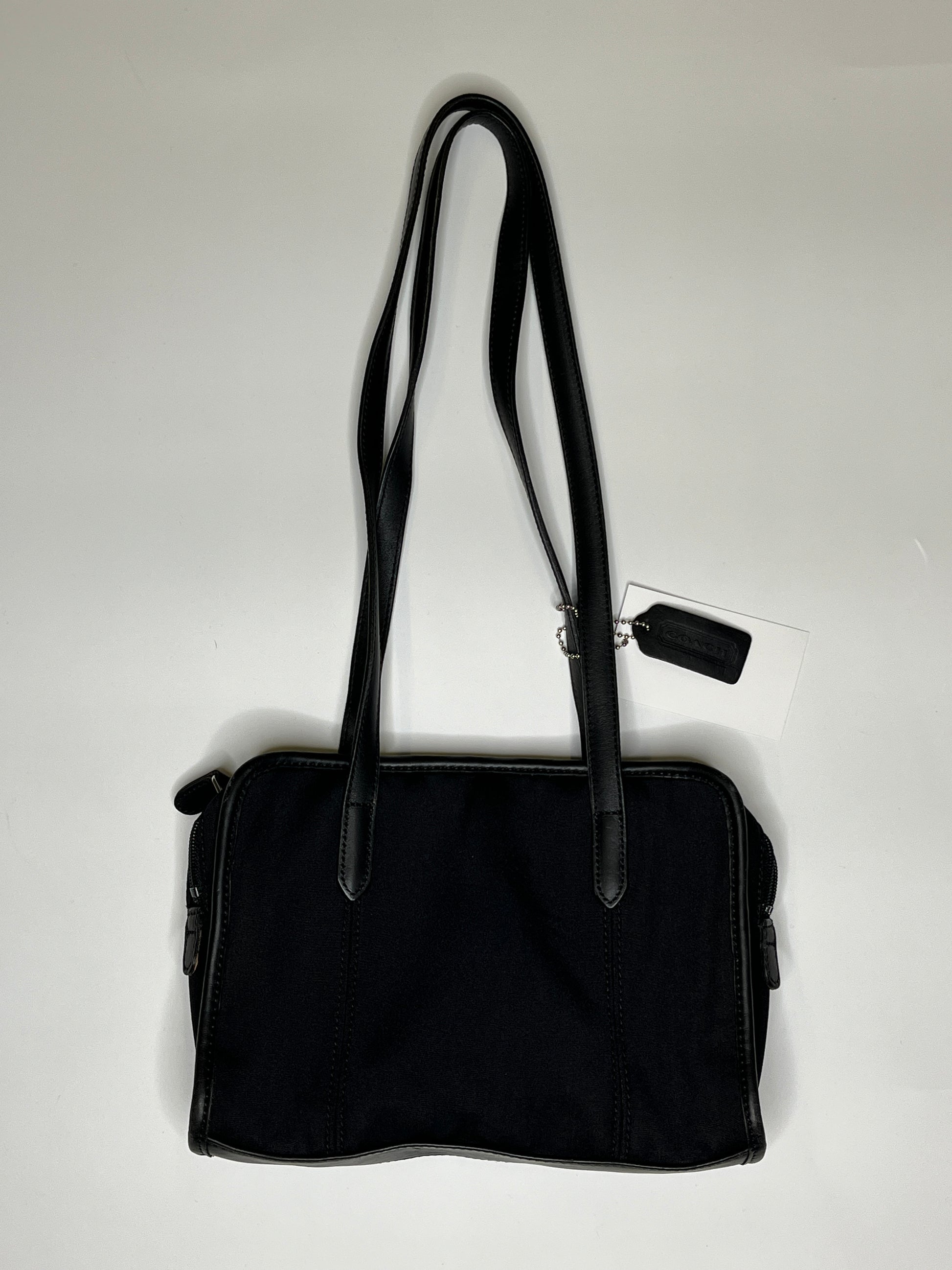 Small sized bag from Coach! Stylish nylon bag with real leather. Very nice design and has a coach charm attached. Has enough space to carry the most important things.