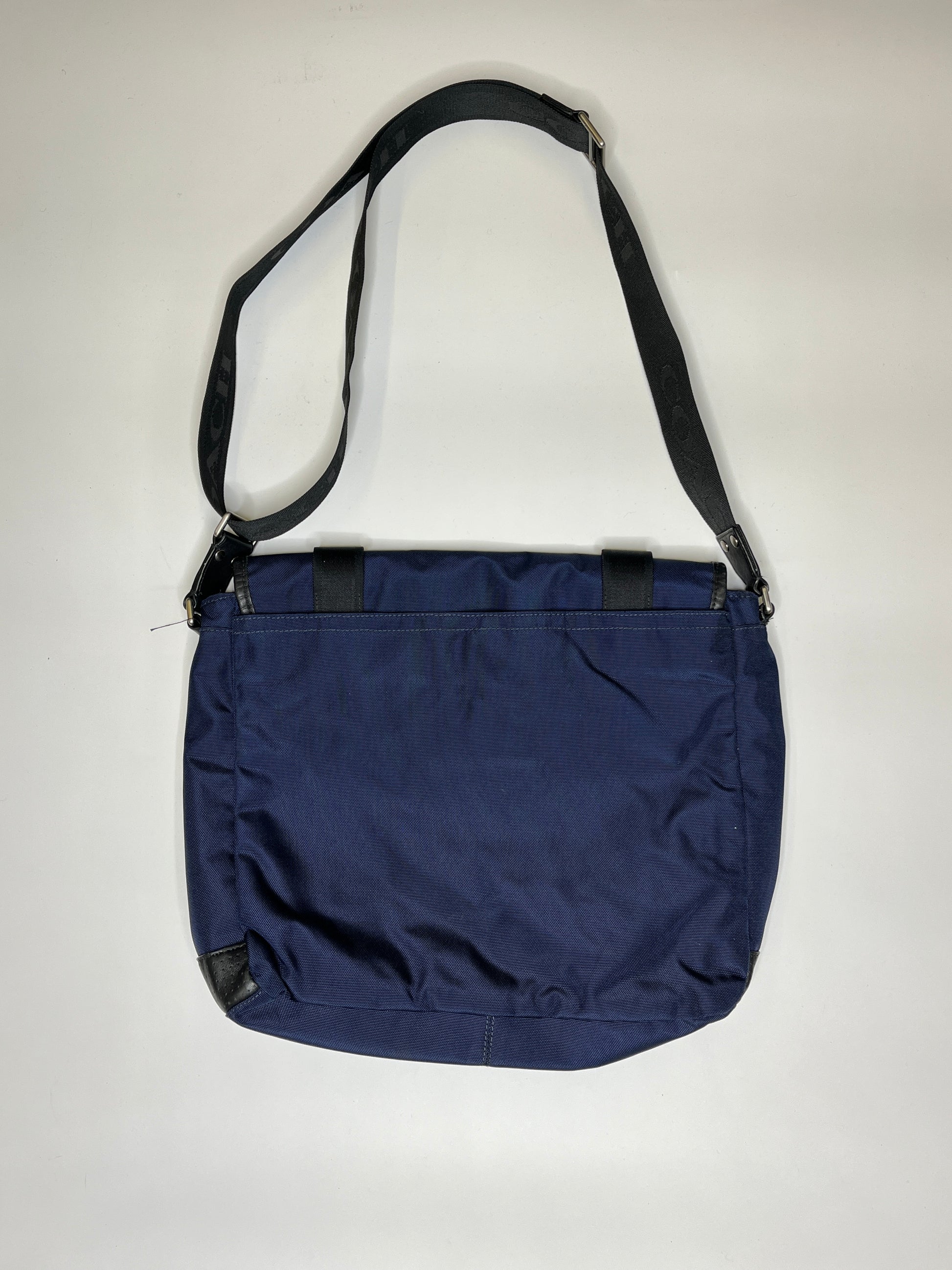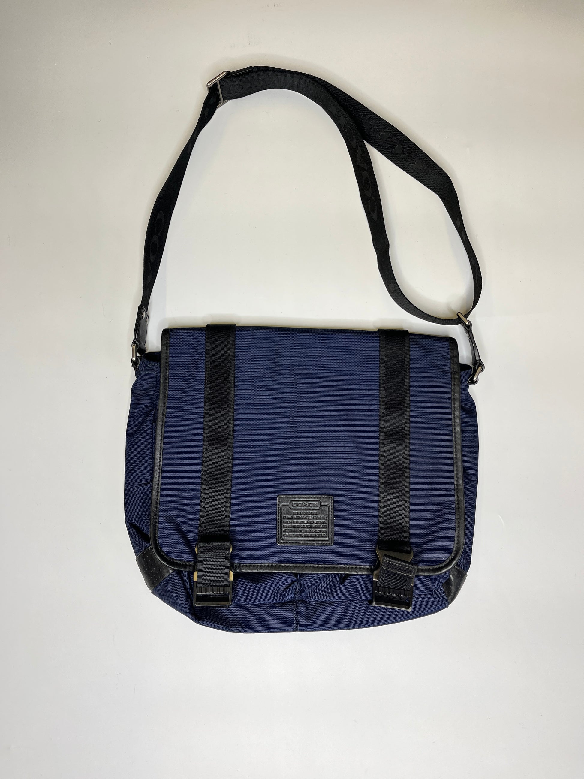 Amazing big sized Coach sling bag with a cool design! the bag has enough space and is a practical everyday/ work bag. your laptop 100% fits. Strap is adjustable. Very stylish metallic buckles. Genuine leather rims.