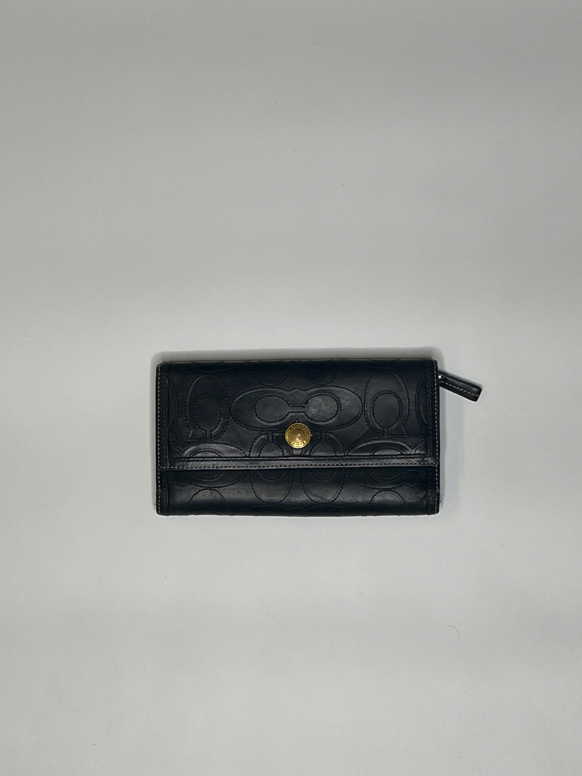 Very practical Coach Wallet. Space for coins, paper & cards. Black Wallet with gold details. Good conditiom.