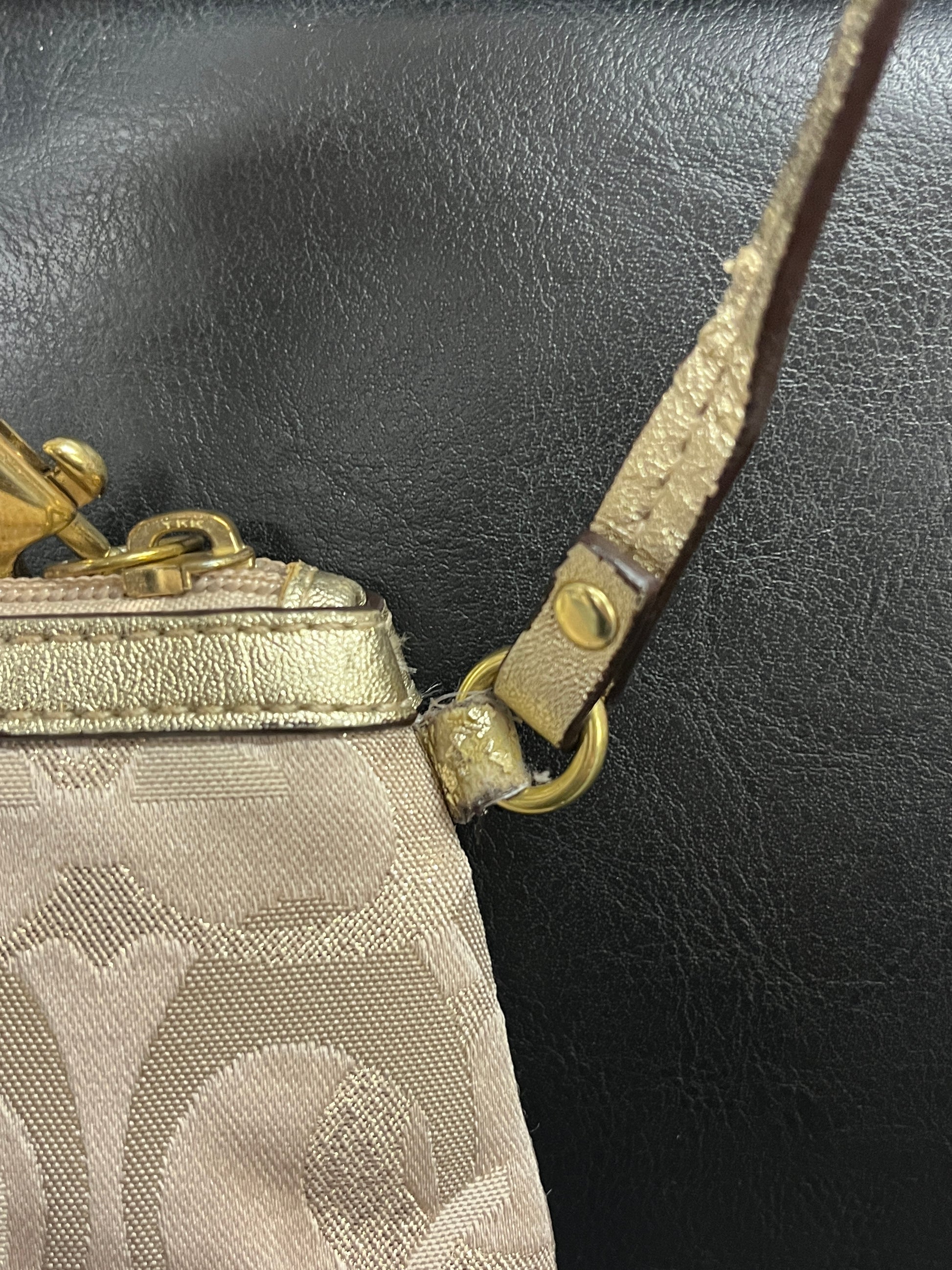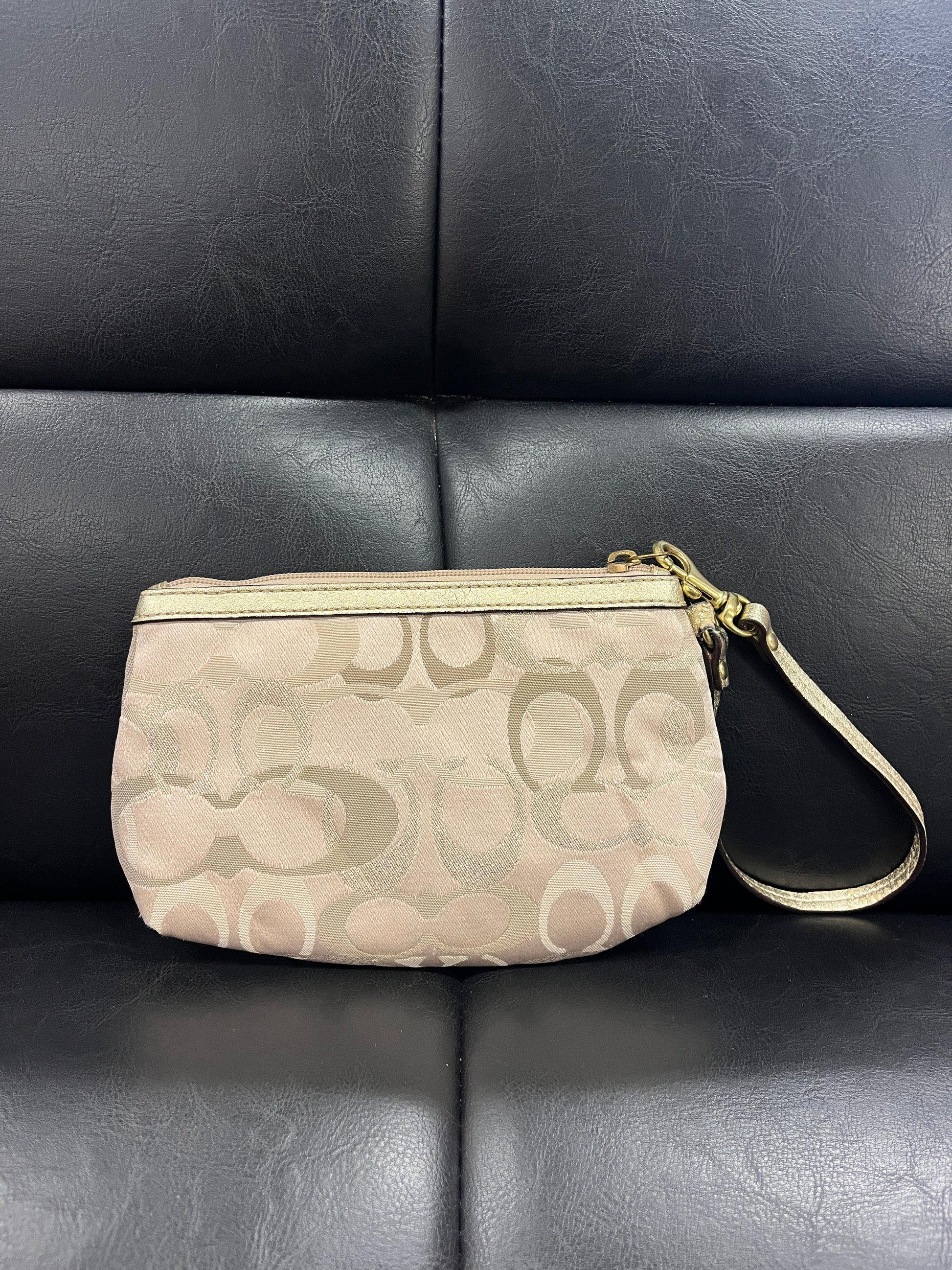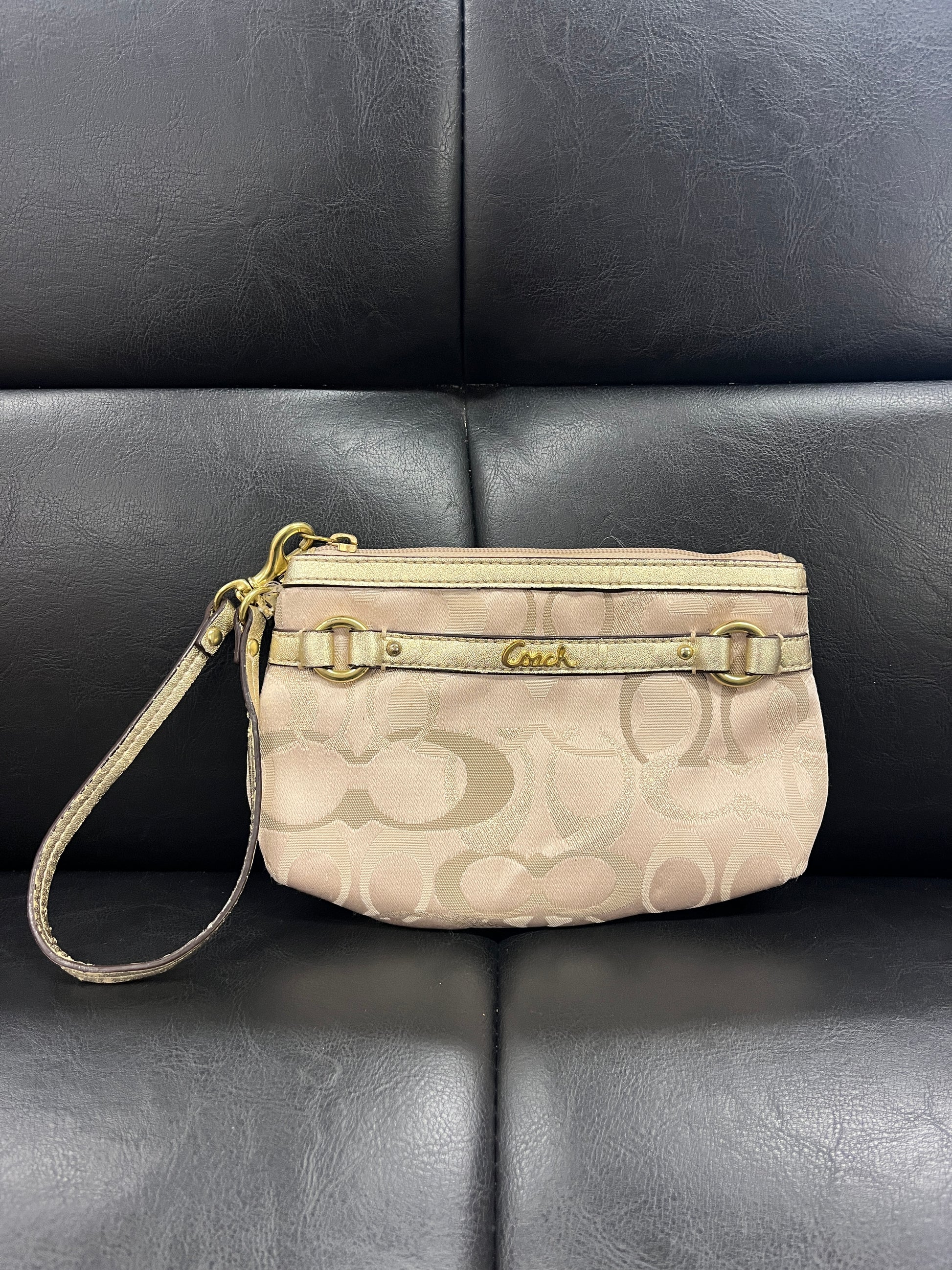 Very nice Coach wristlet. Monogram Pattern & shiny/ sparkly detailing. Super cute mini bag!