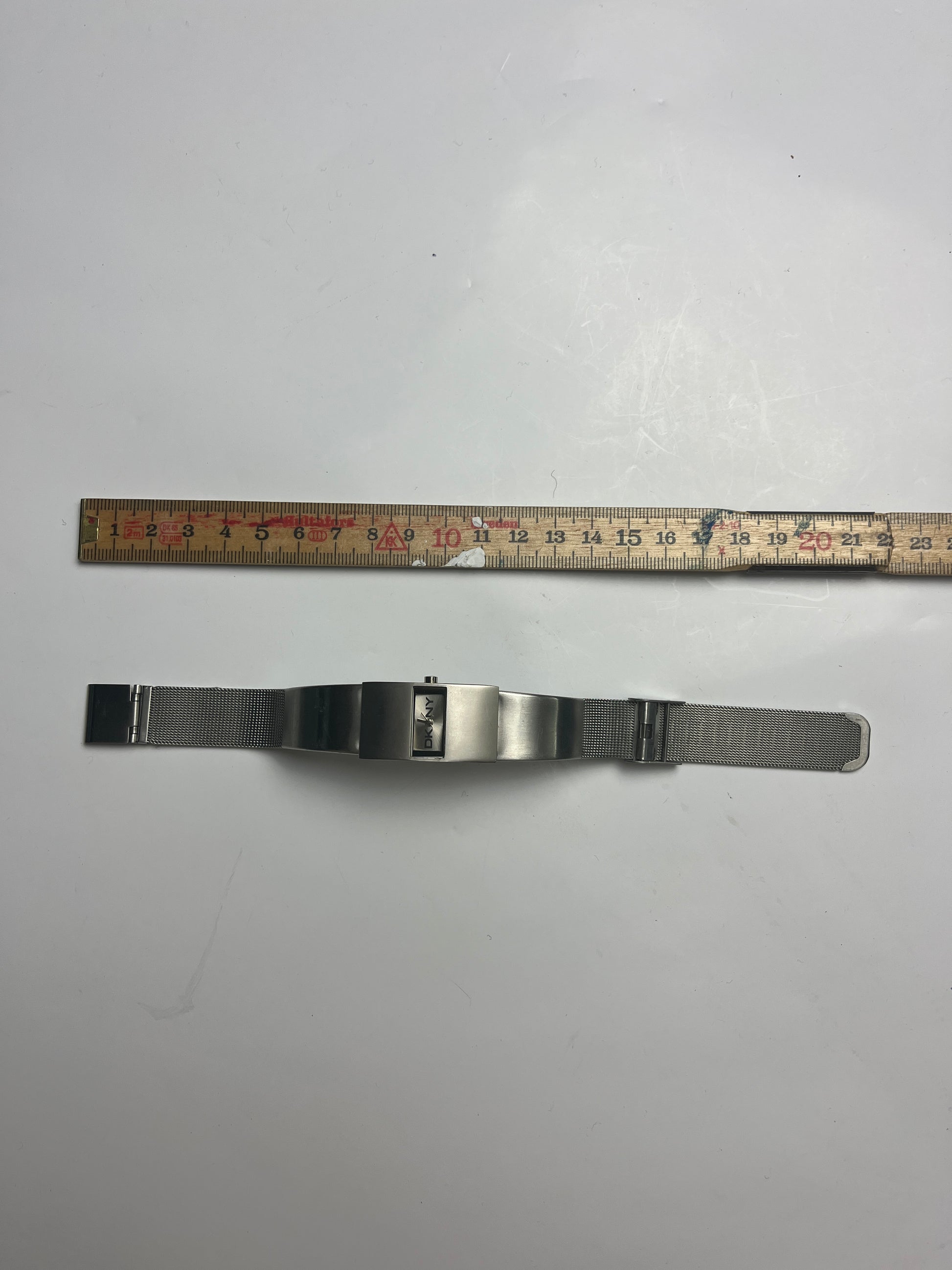 Amazing watch from the brand DKNY. Amazing metallic silver design. It is fully adjustable. Stainsless steel back & clip.
