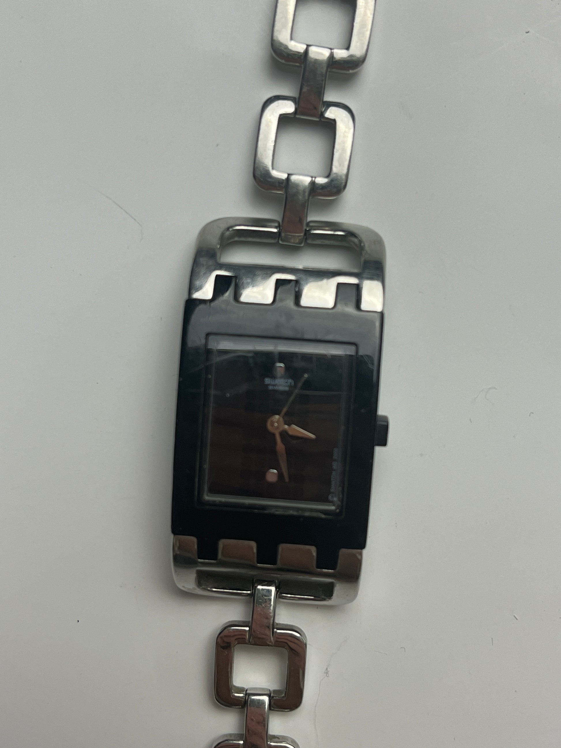 Very nice swatch watch. Super cool bracelet. Stainless steel.
