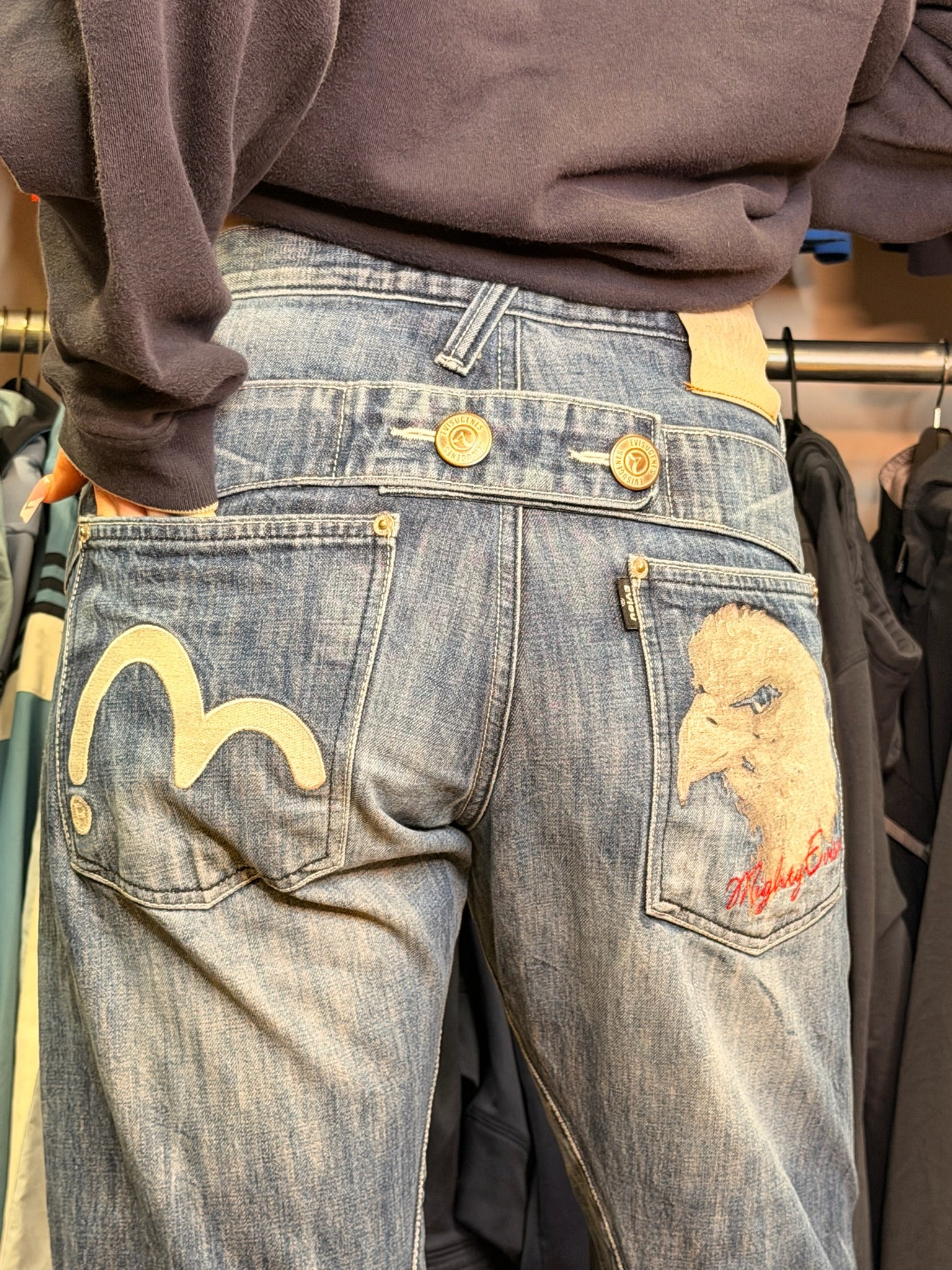 Amazing Evisu straight leg jeans. Amazing fit & beautiful wash. Cool detail in the back