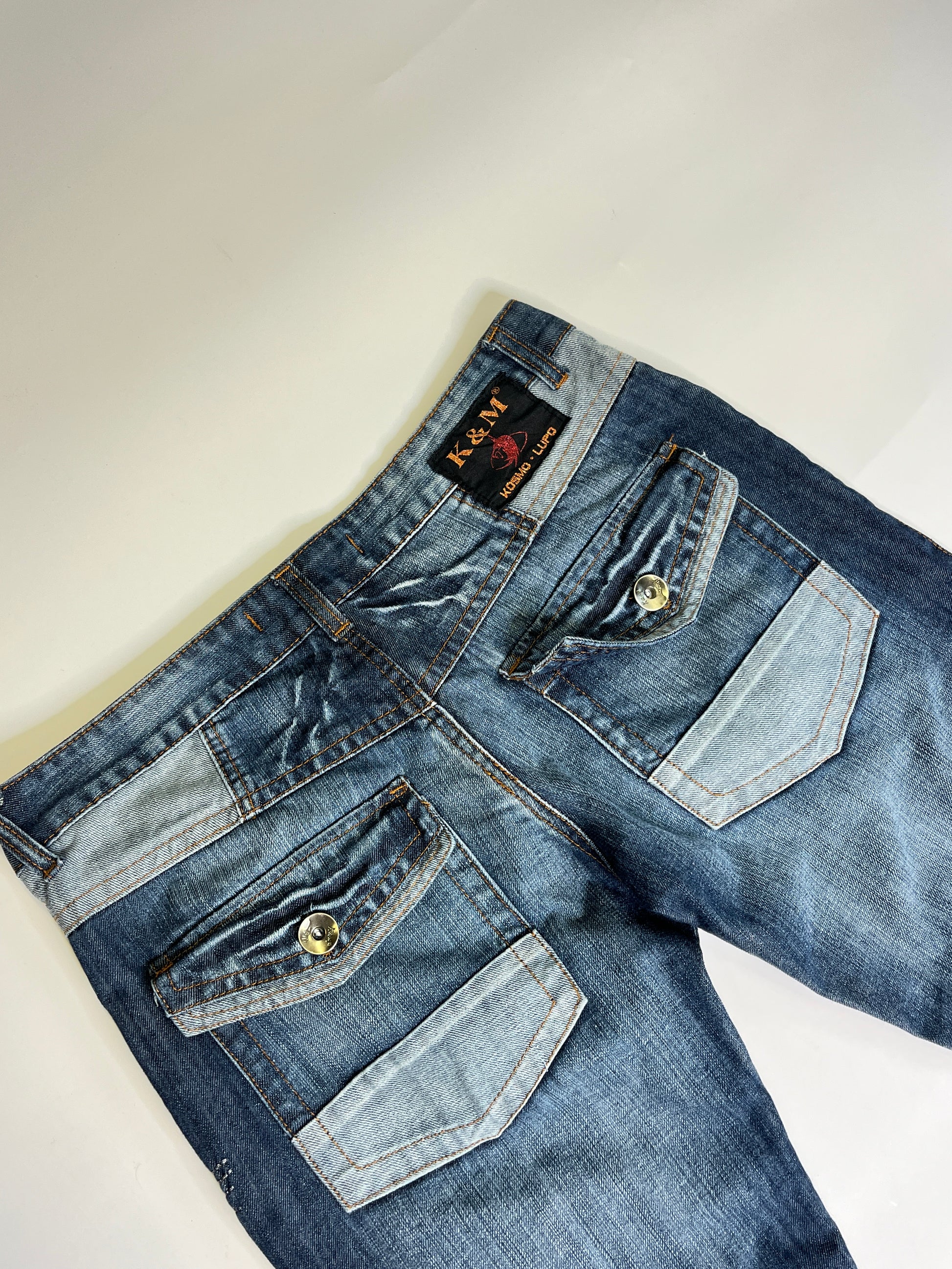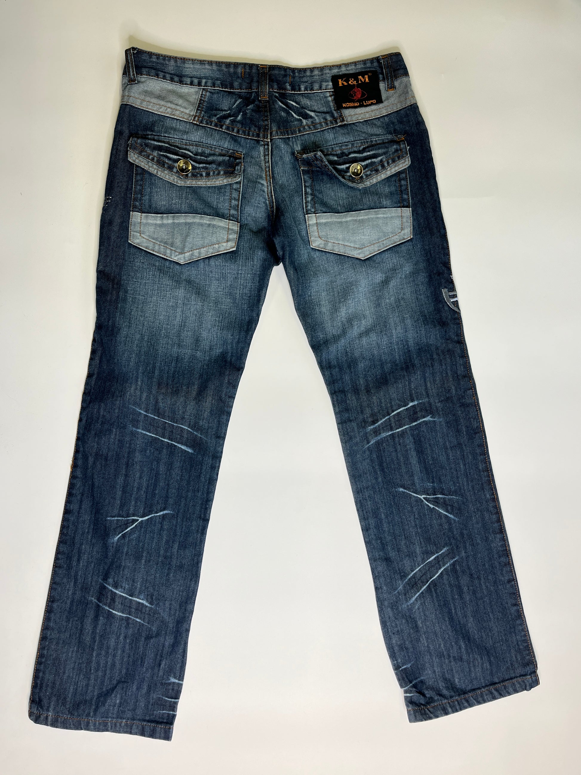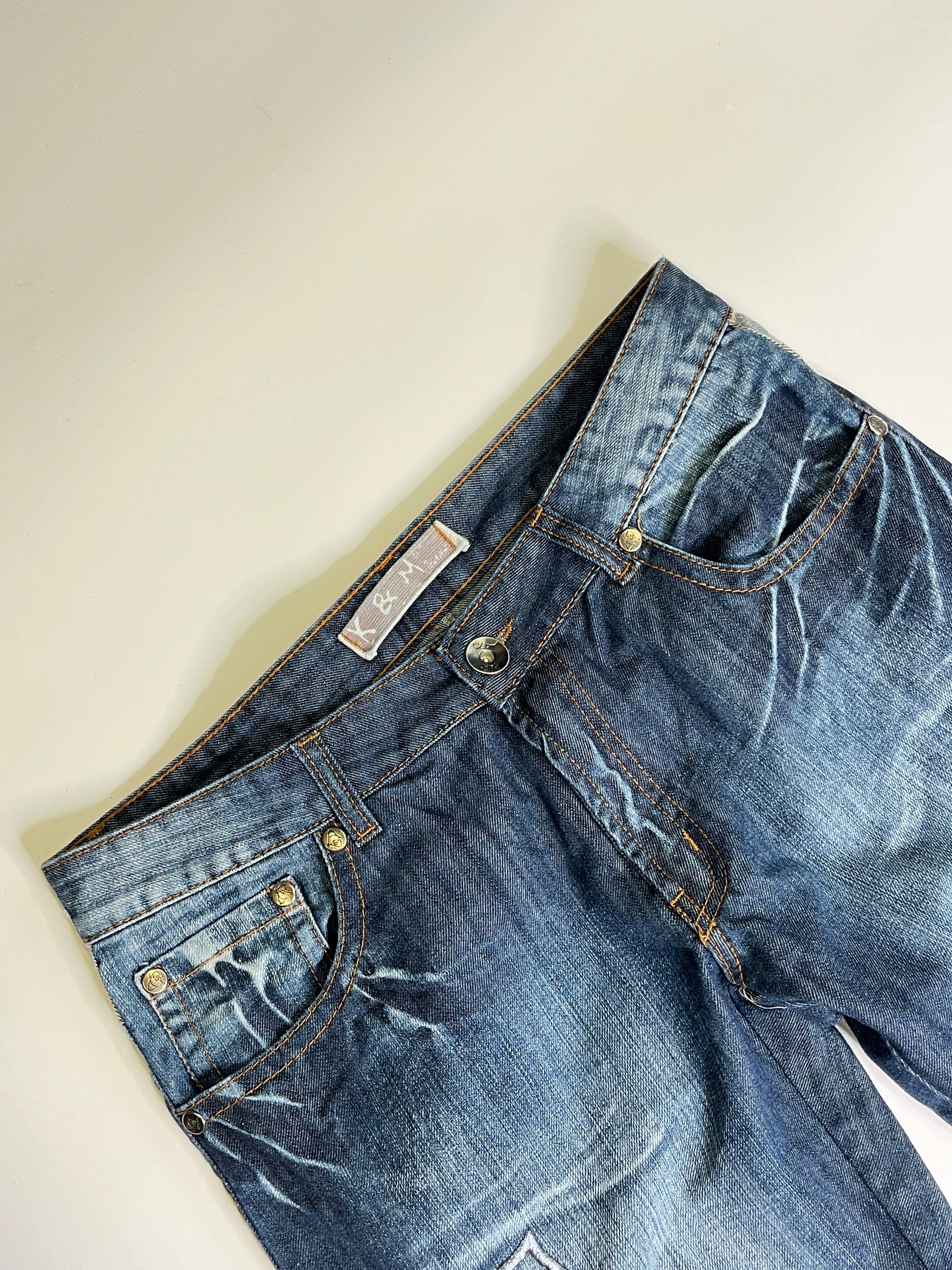 Amazing jeans by the brand K&M made in the 2000s! In beautiful colour with the coolest design on the pockets and in the front. straight leg fit.