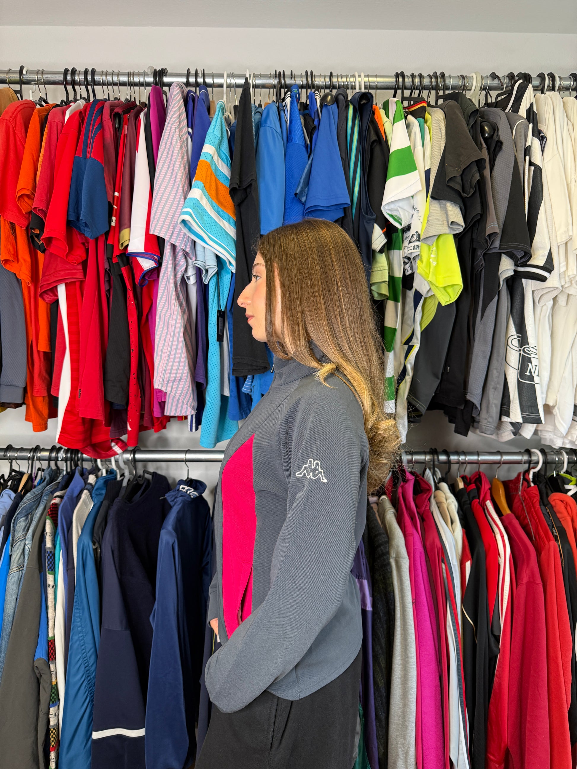 Super cool grey Kappa Zipper with pink design! Very nice material & perfect outerwear zipper.