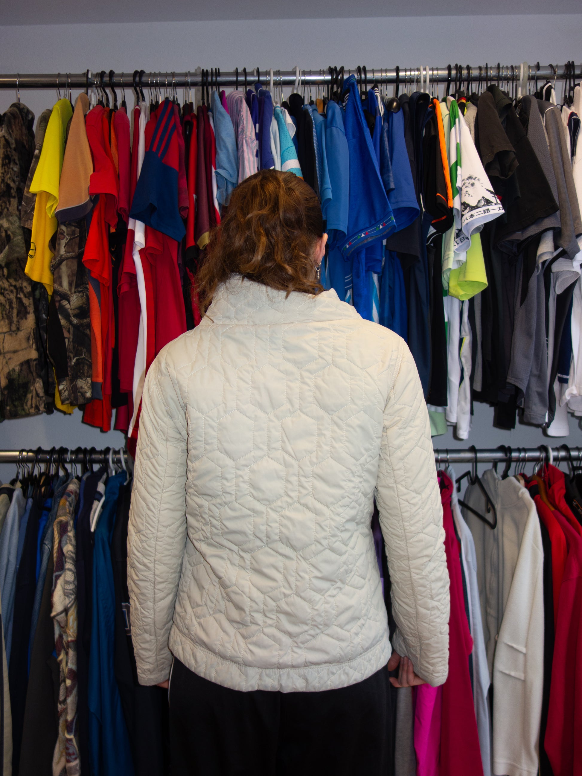 puffer side: stains and a little dirty/ blue trade off (see pictures)