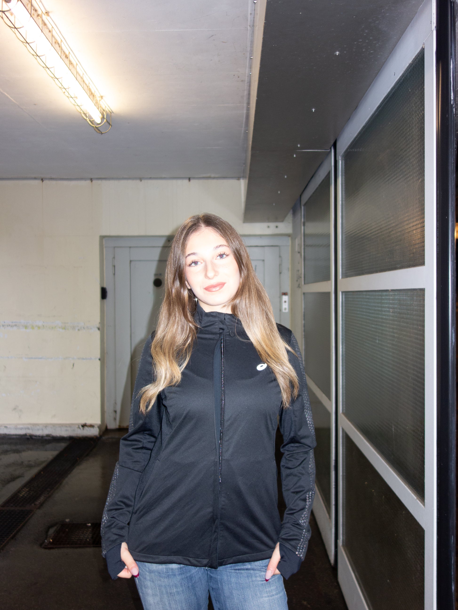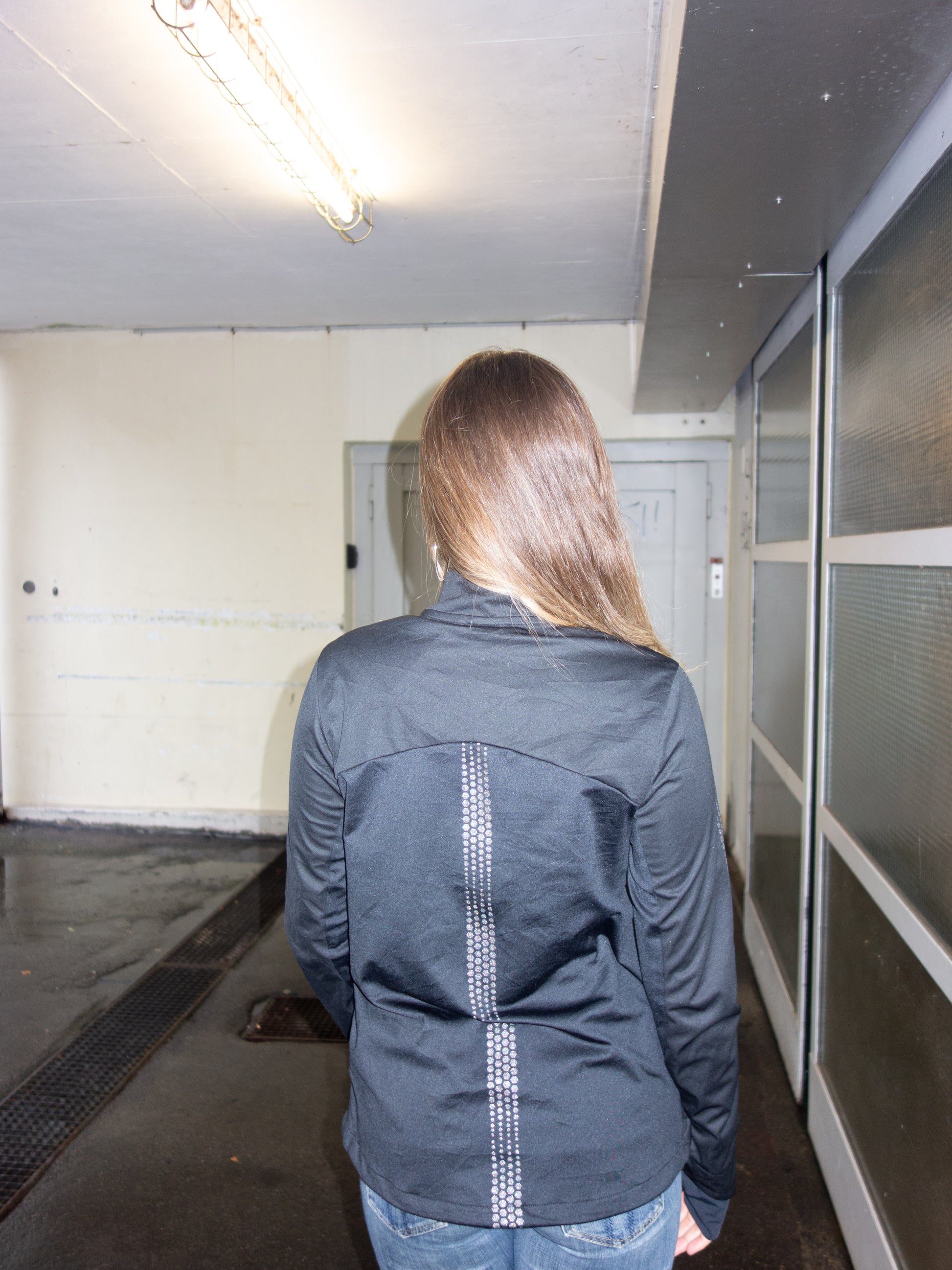 Amazing black Asics Zipper. Perfect jacket for outsid. Amazing fit and comfortable, thin material! Sporty, everyday Zipper. Has black, thin gloves attached to keep you warm.