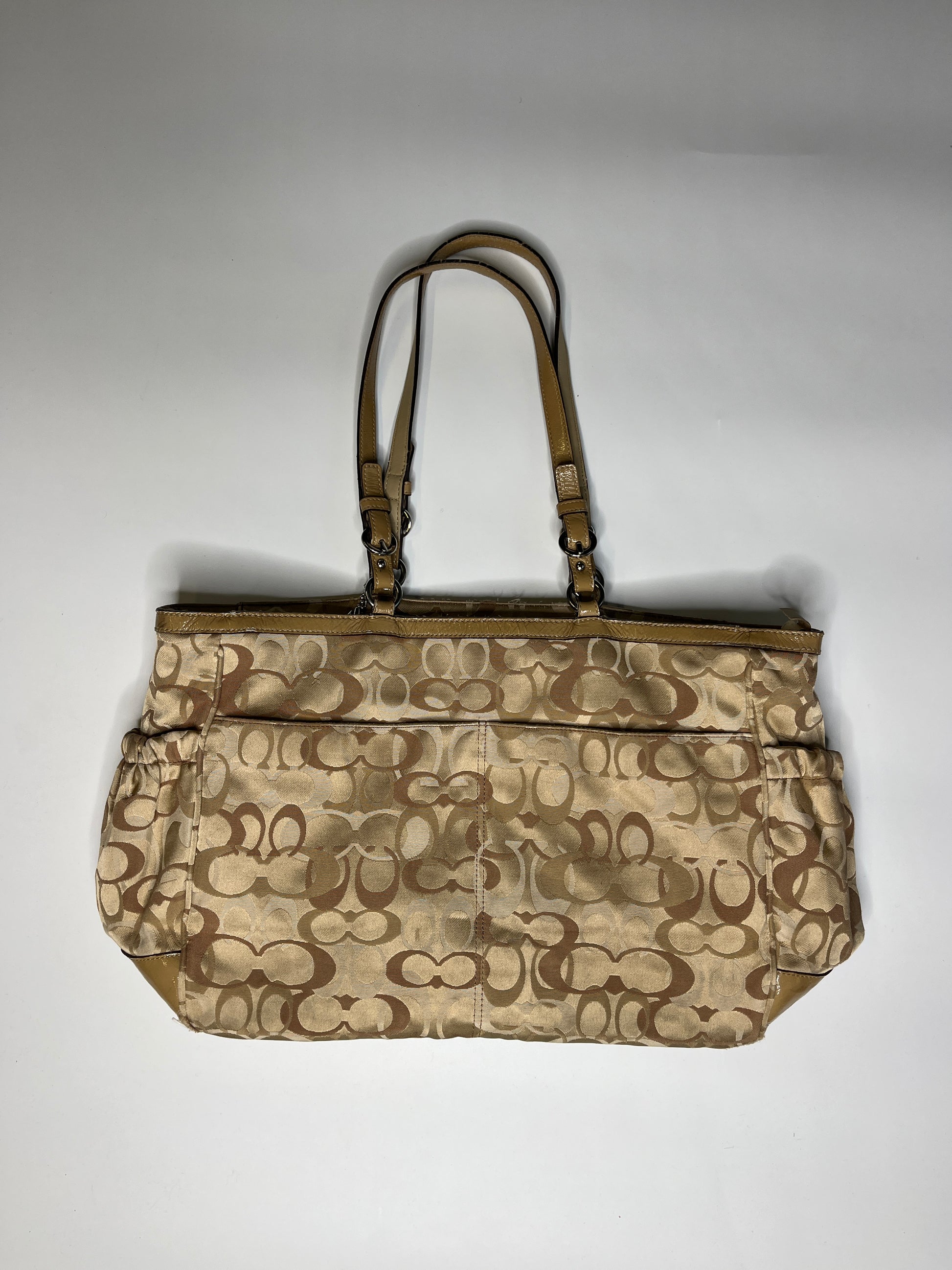 Medium sized bag from Coach. Cutest bag in Monogram Style. Very nice bag and in good condition. Has enough space to carry the most important things. Silver heardware. Your laptop may fit