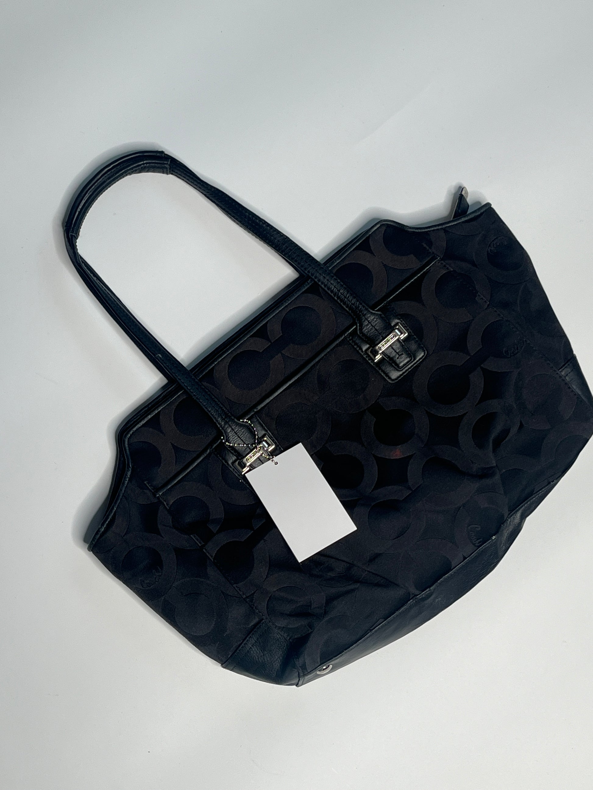 Medium sized bag from Coach with real leather! Cutest bag in Monogram Style. Very nice bag and in good condition. Has enough space to carry the most important things. Silver hardware.