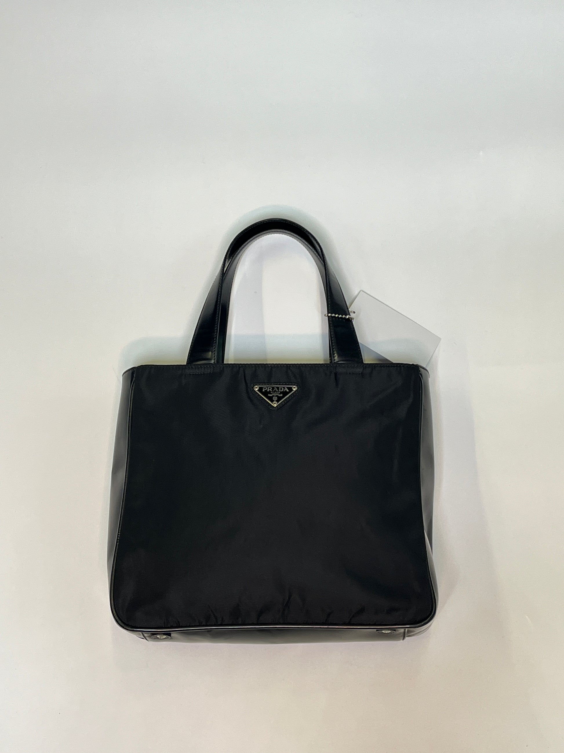 Small, black handbag from Prada. Unique shape and in anvery good condition. Very nice designer bag but shows almost no signs of use! See pictures. Has enough space to carry the most important things.