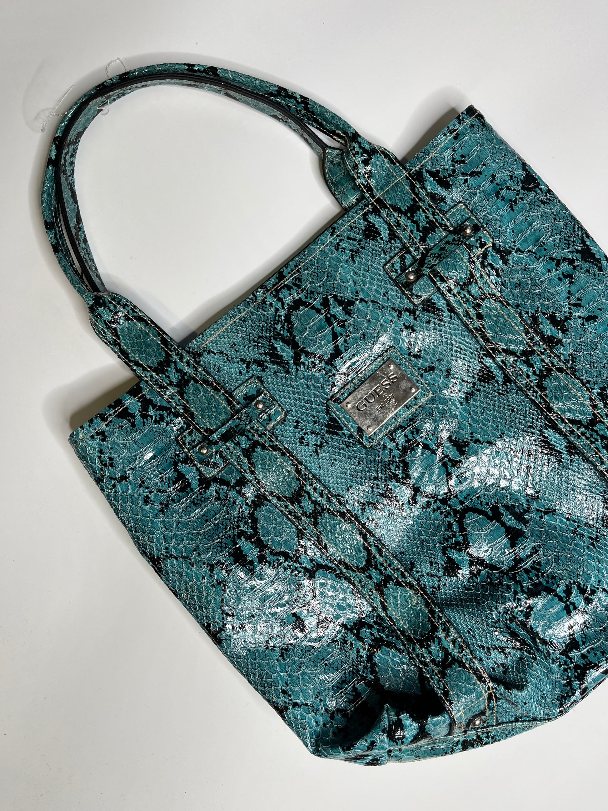 Amazing & quite rare Guess purse. Big sized purse. Amazing design & fits perfectly under the shoulder. Blue shiny snake design. Silver hardware.
