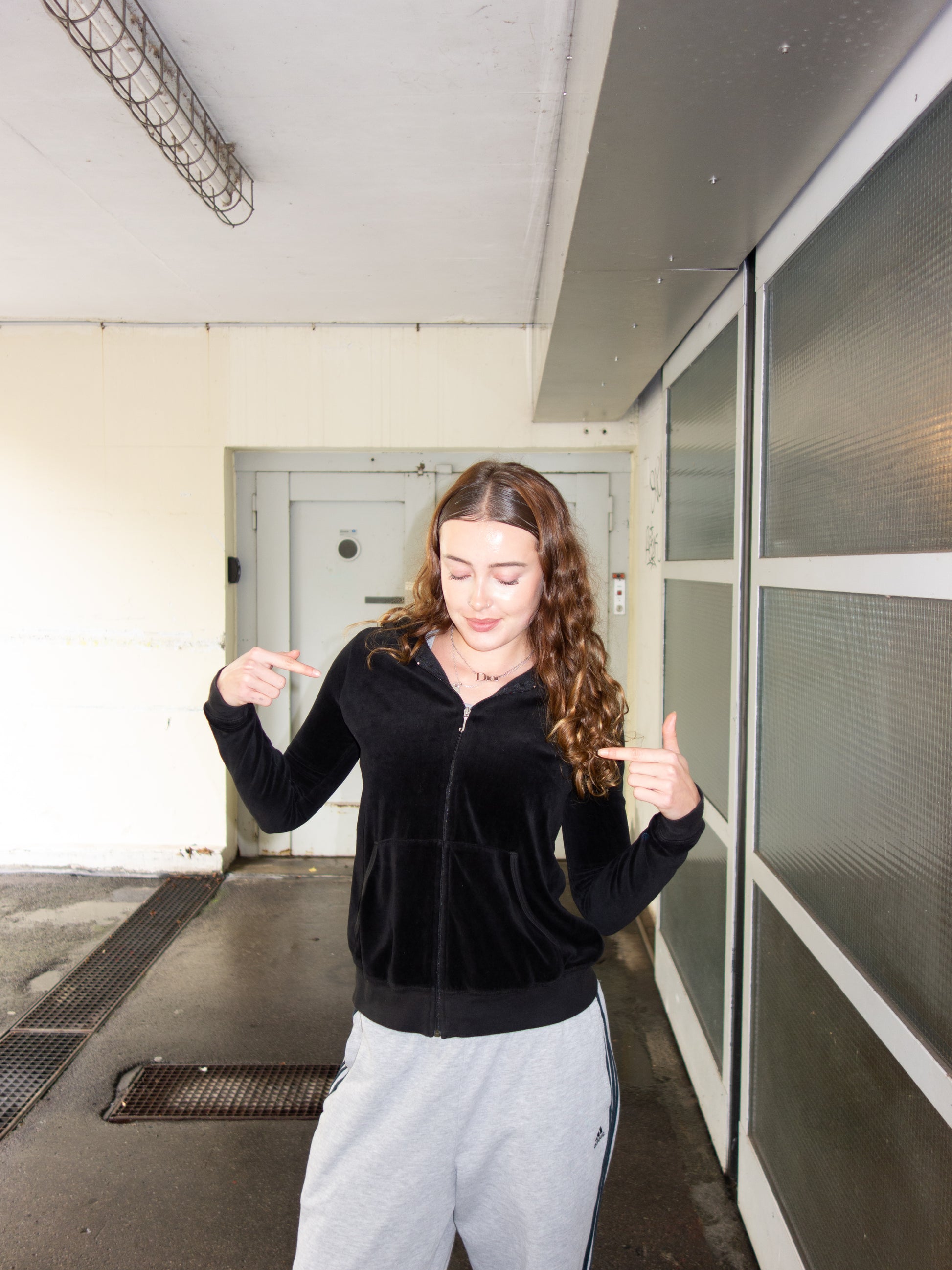 Super cute Juicy couture zipper in black color. Silver Logo zipper.