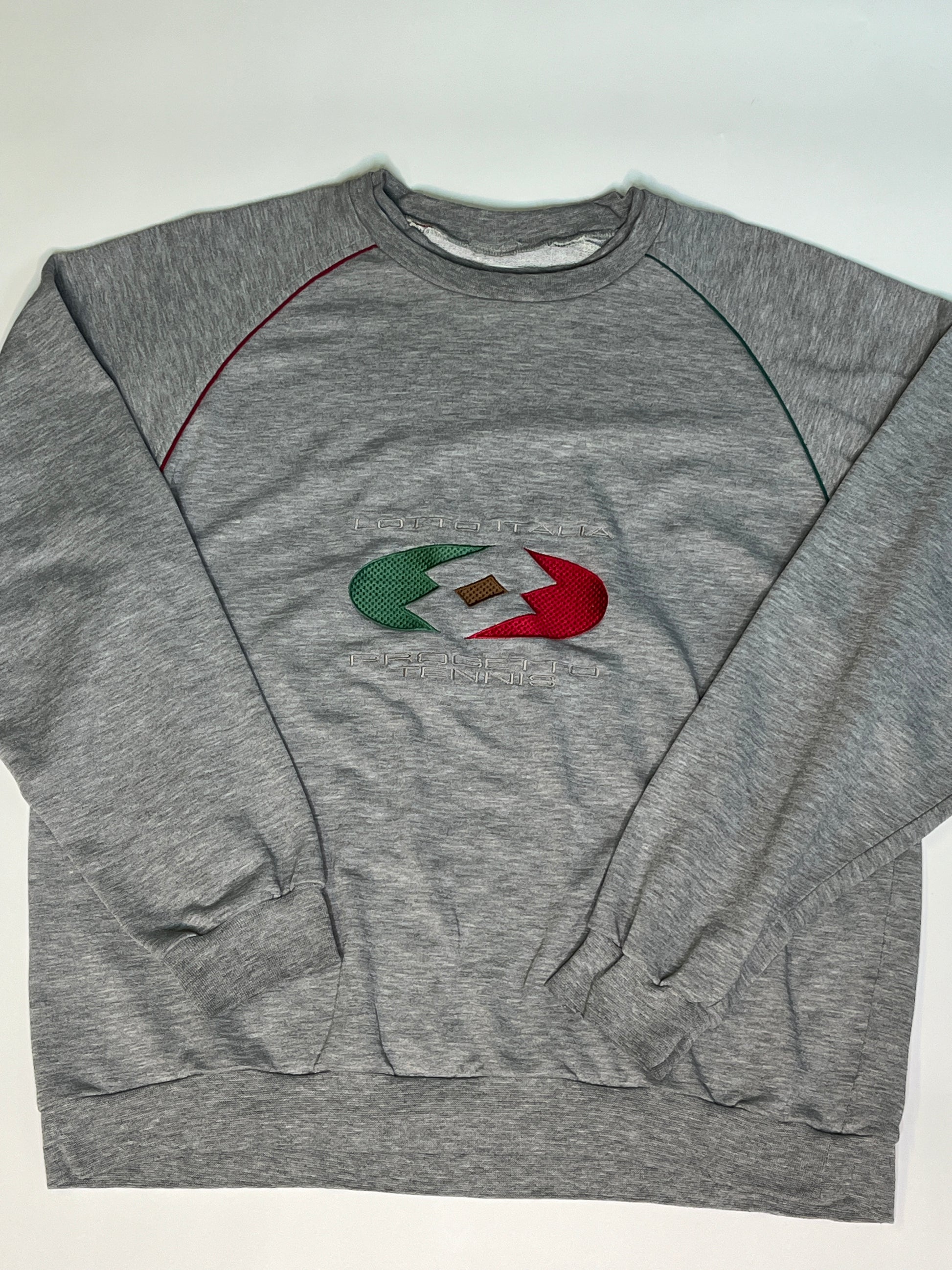 Very nicely fitting grey Lotto vintage sweater. Embroidered Logo in the middle.