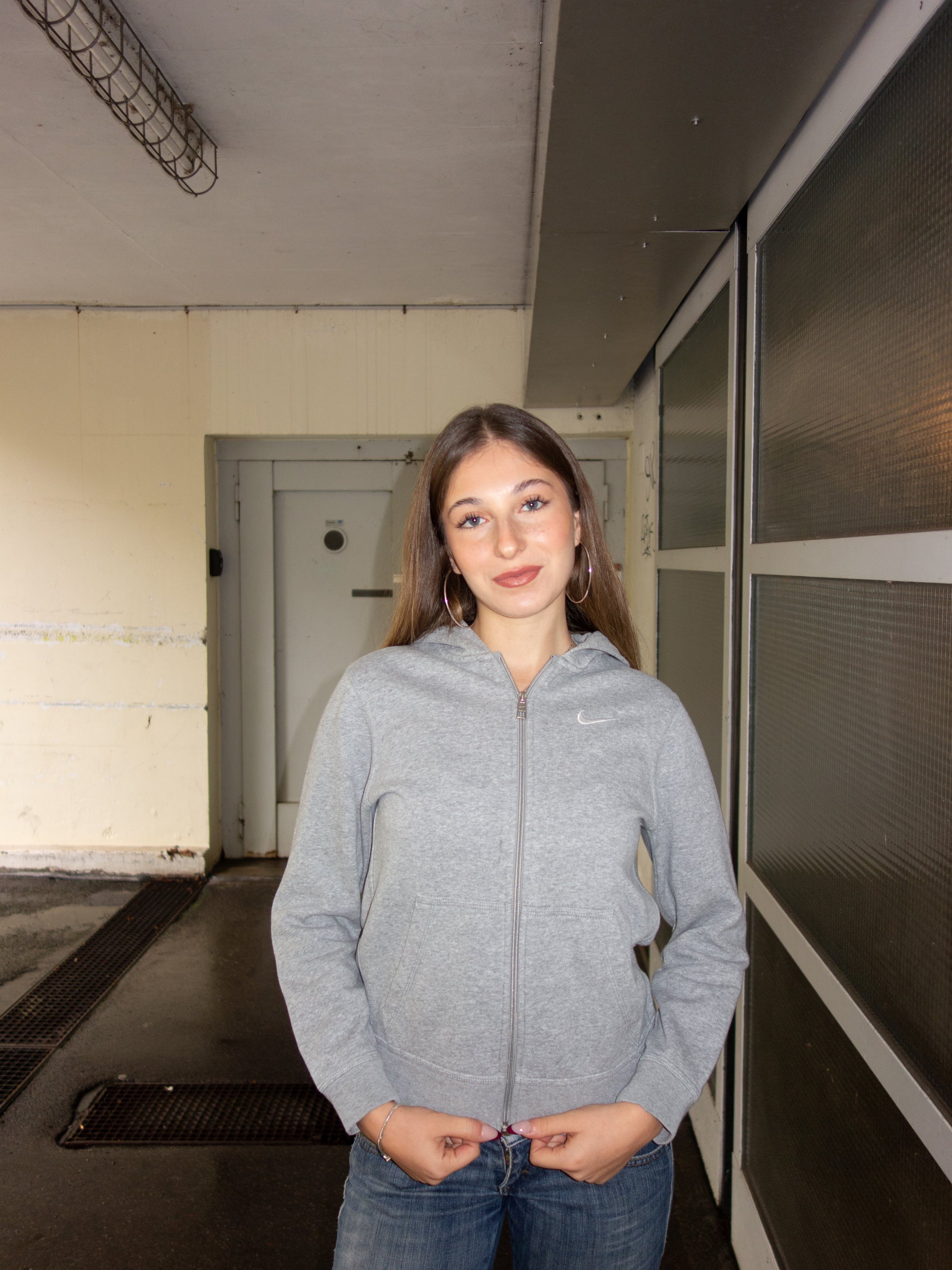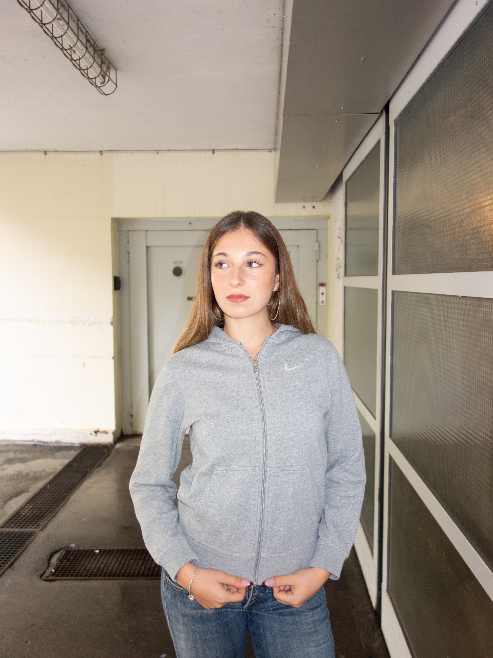 Amazing grey Nike Zipper. Amazing fit and good quality! Comfy material inside which will keep you warm! Sporty and cute zipper. Embroidered white nike Logo