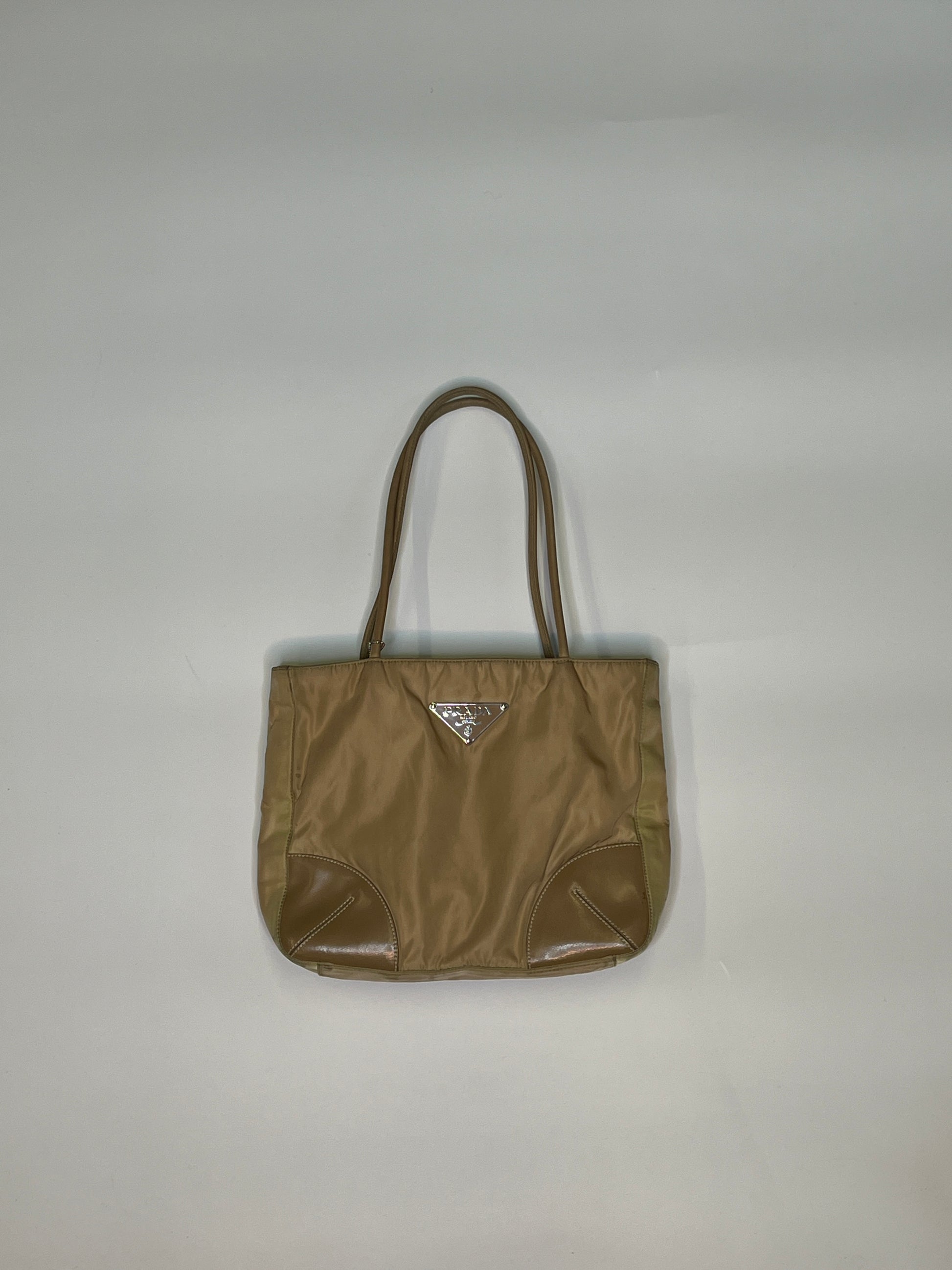 Beautiful beige handbag from Prada. Its a rather small bag but the most important things fit. Very nice designer bag but shows signs of use! See pictures.