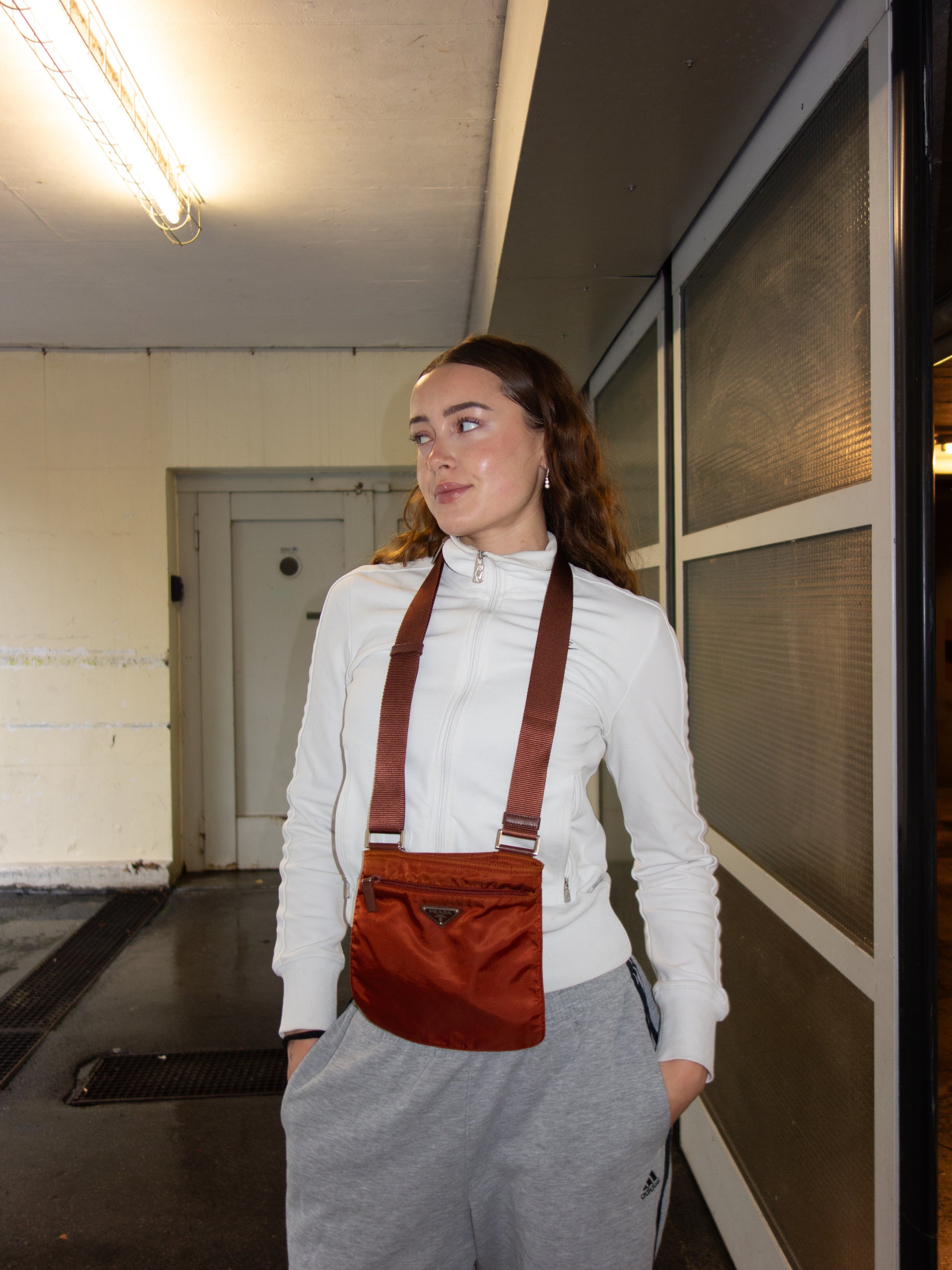 Beautiful orange designer slingbag from Prada. Very nice designer bag and shows almost no signs of use! See pictures. It's a rather small bag