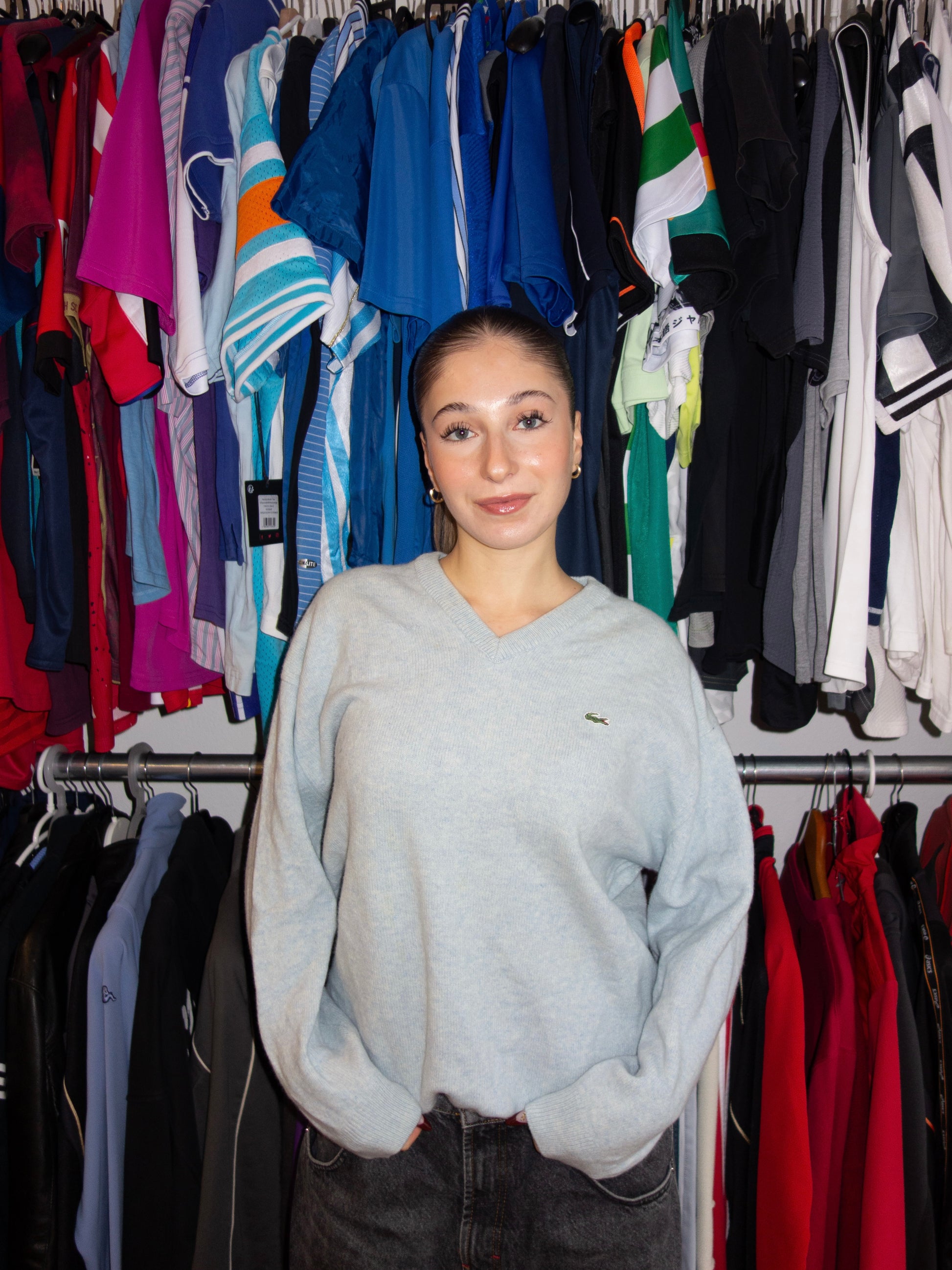 Cute blue Lacoste knit Sweater. cool fit and beautiful design! Has a comfortable material which will keep you warm. In very good condition !