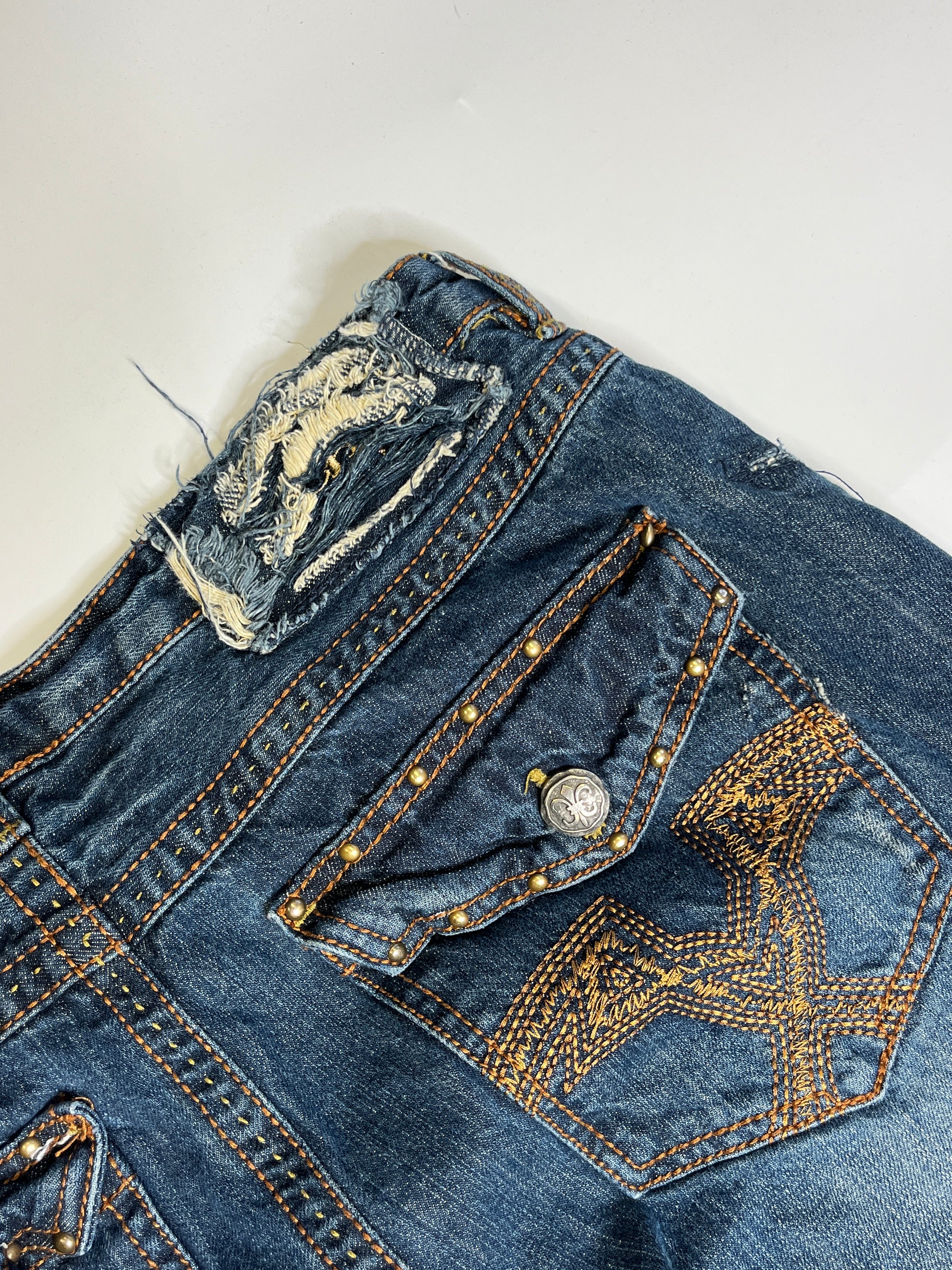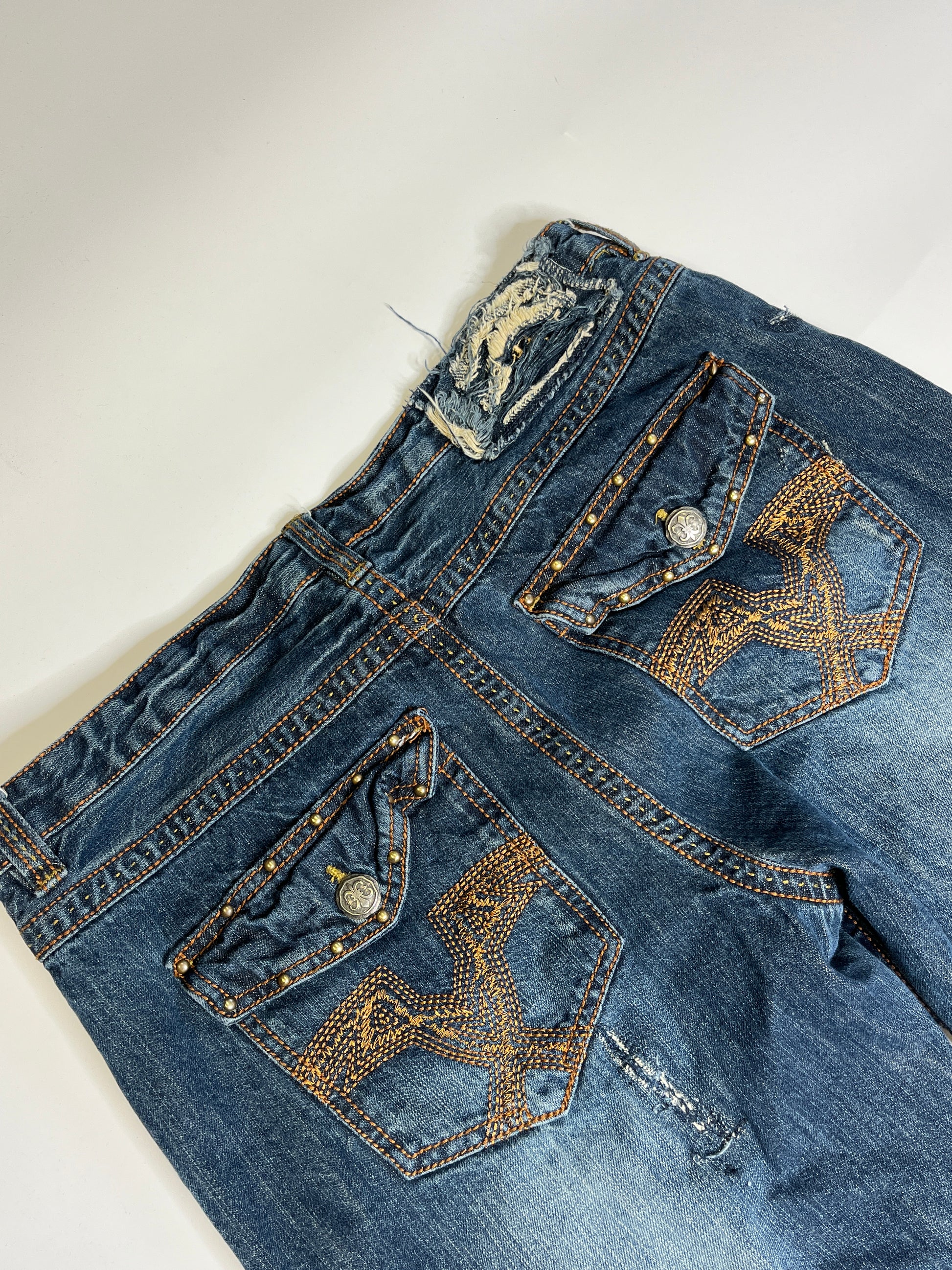 VINTAGE DISTRESSED MACHINE JEANS (34/32)