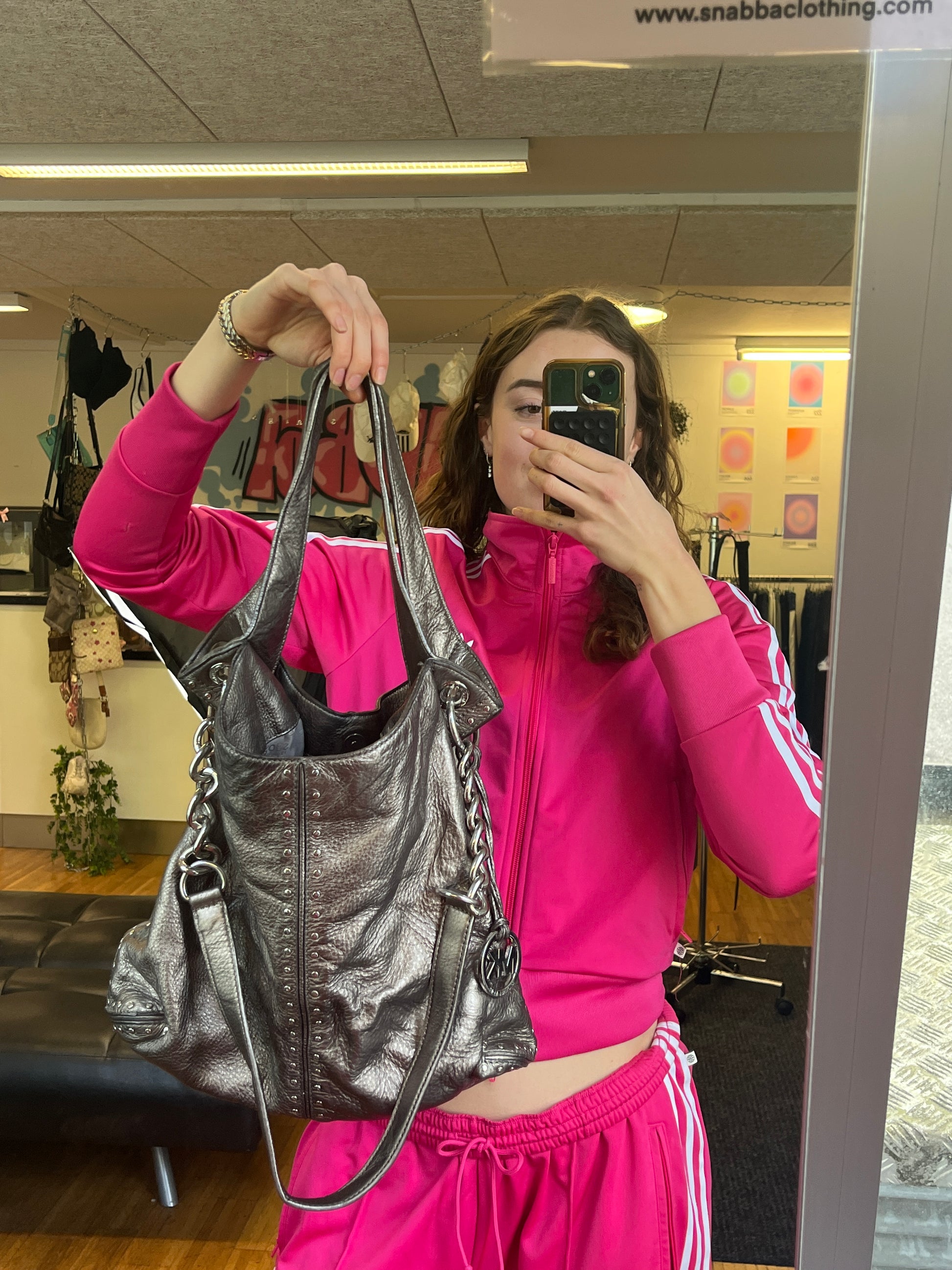Amazing Purse from the Brand Micheal Kors! Super nice silver detailing, all over shiny silver color. This bag falls very specially - i like it a lot!