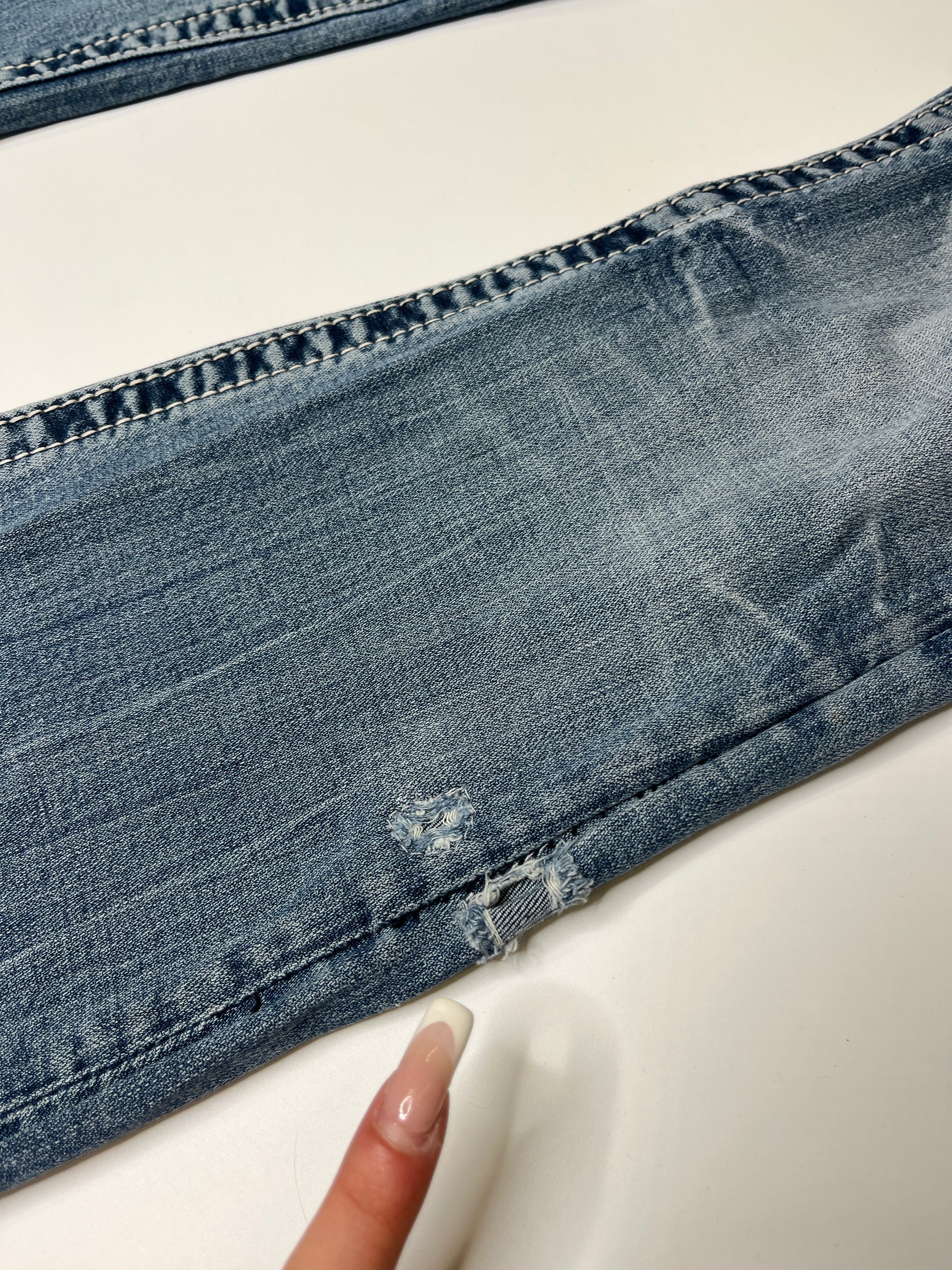 Amazing Miss Me Jeans which fit rather straight. Beautiful denim colour with washed out look. Amazing fit and perfect everyday jeans. Really comfortable and great quality! Unique piece.