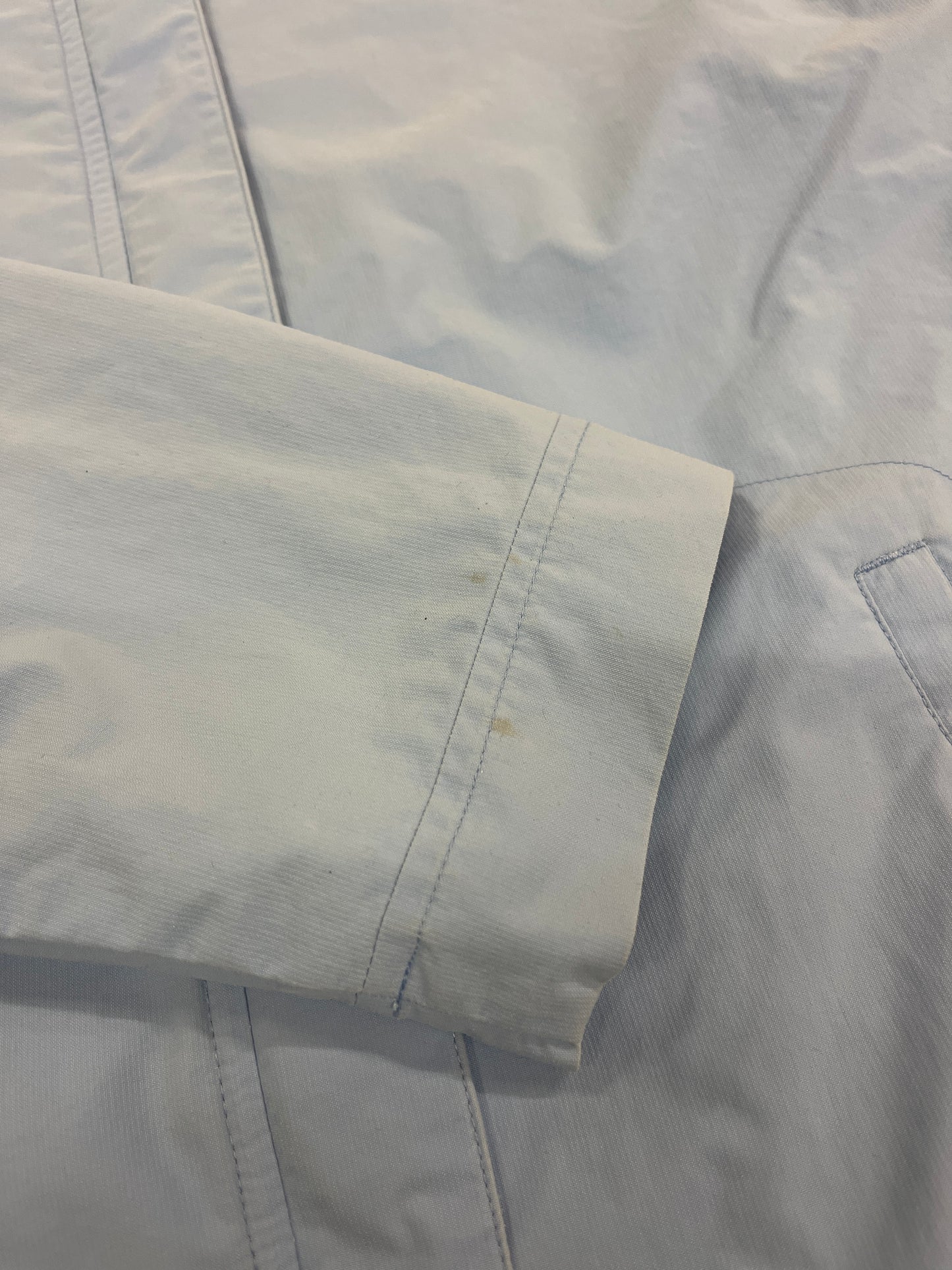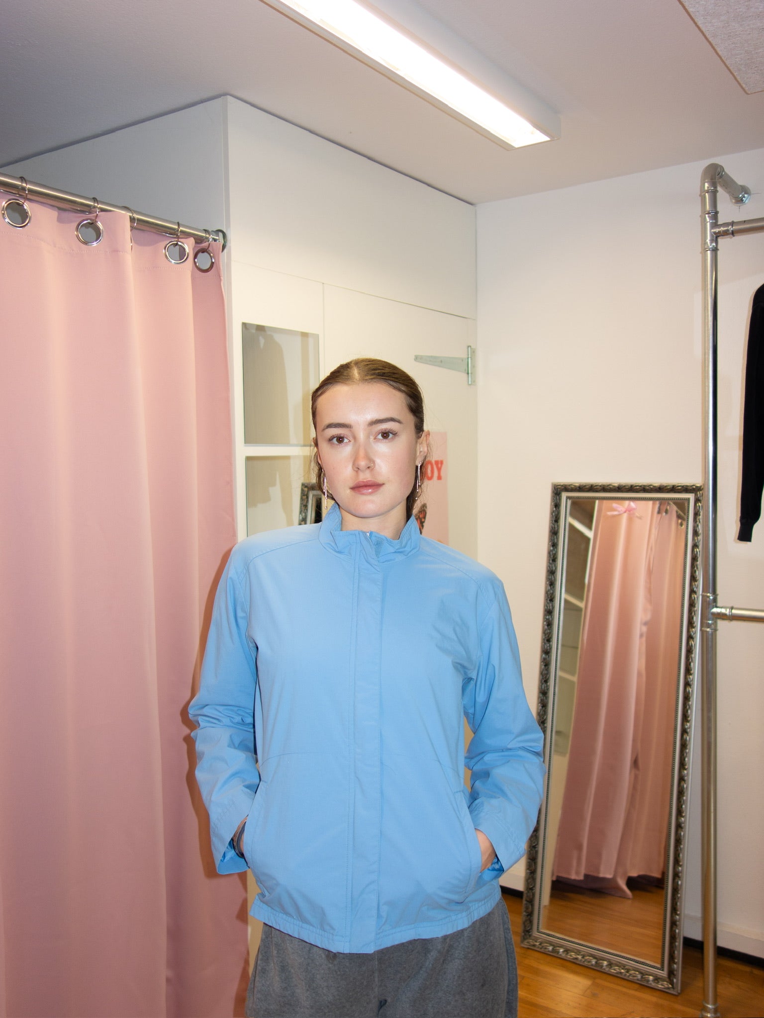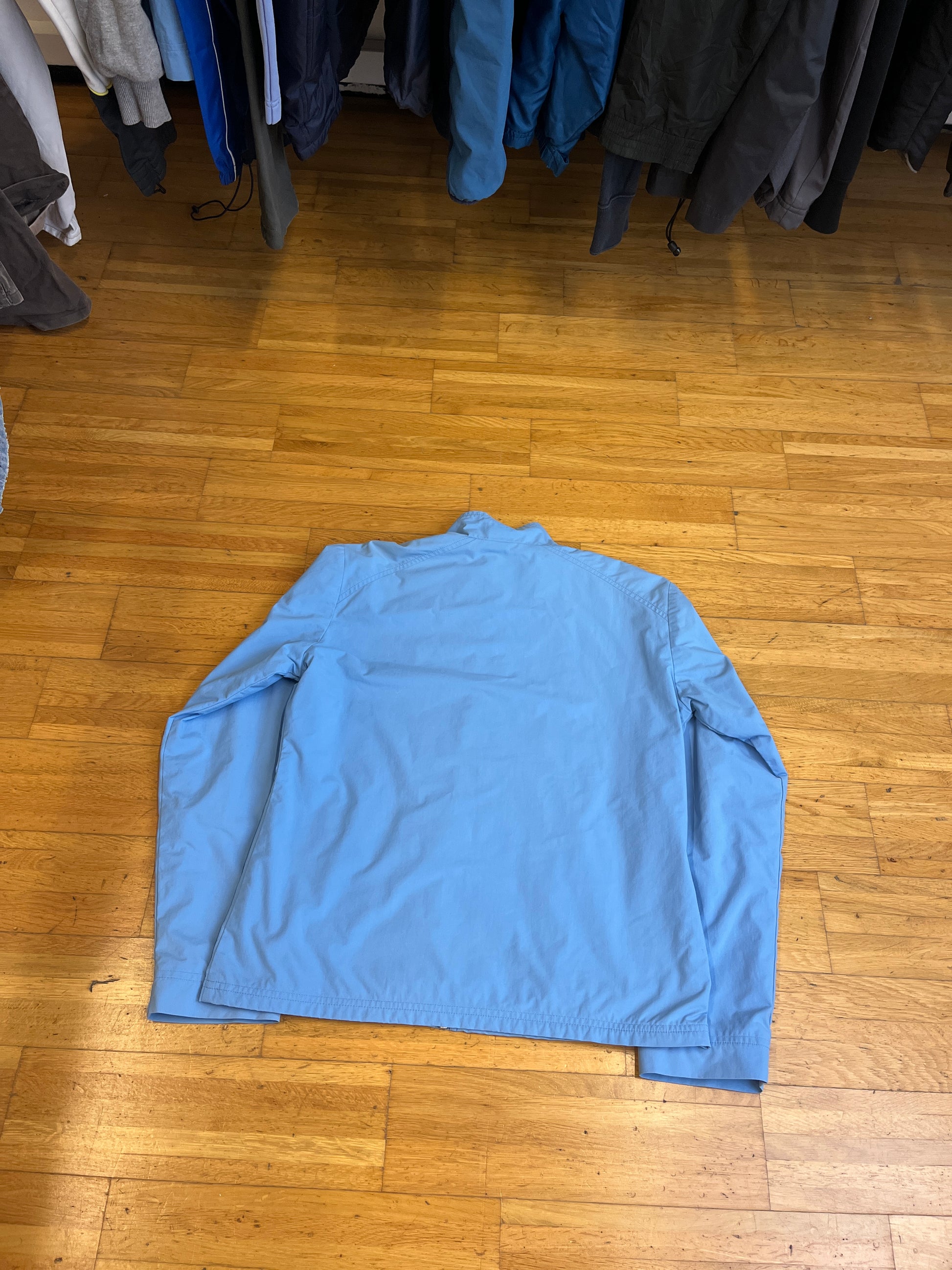 Very nice babyblue Nike Zipper made in the 2000s. Embroidered Swoosh logo at the bottom. Track material.