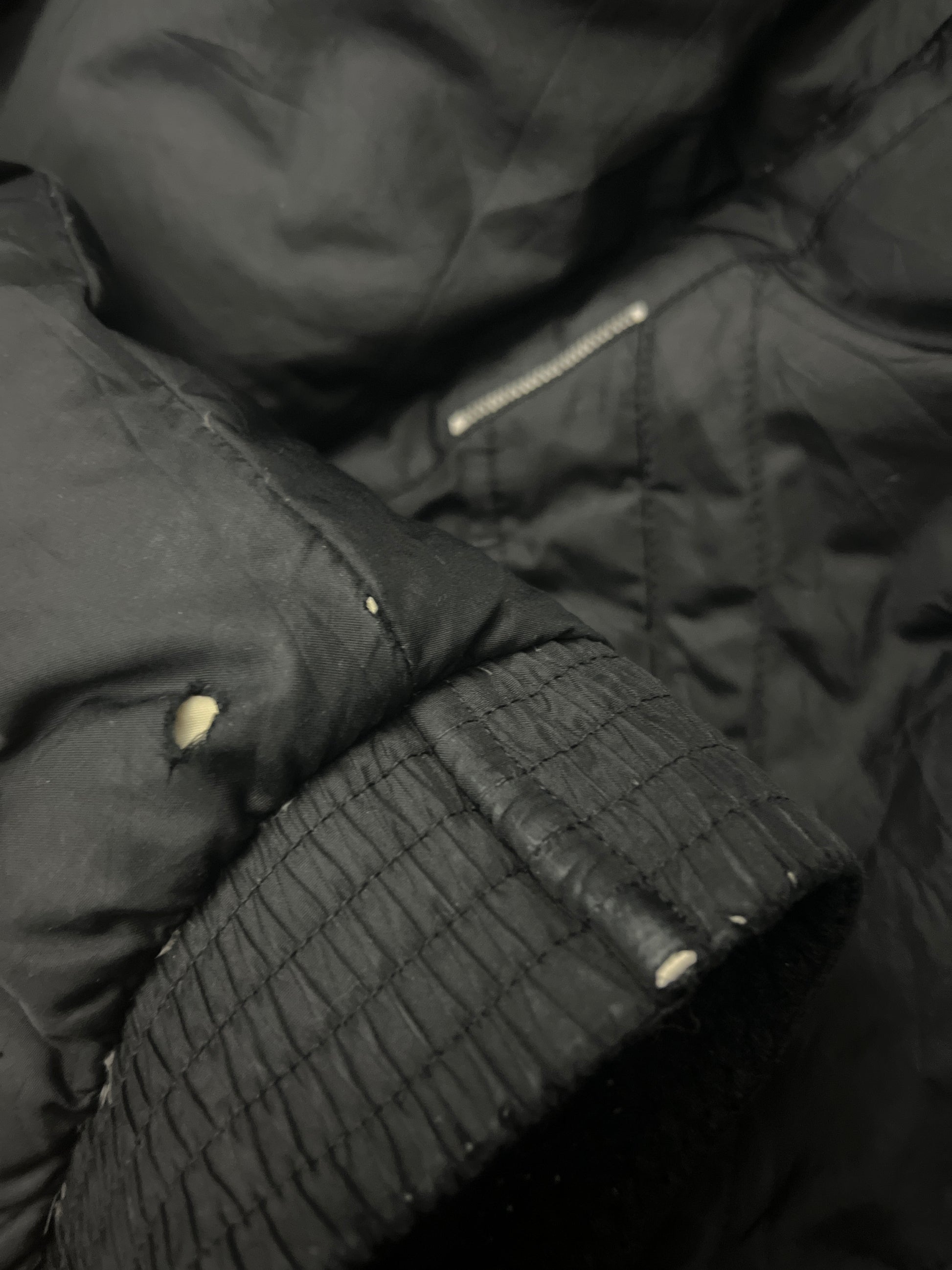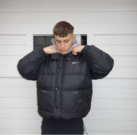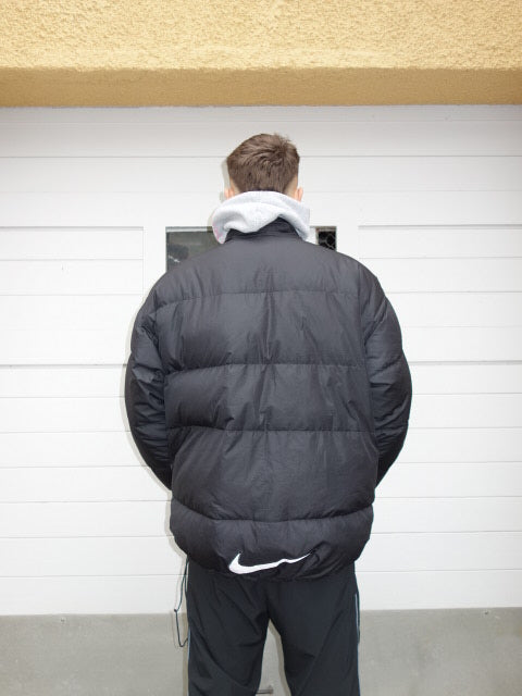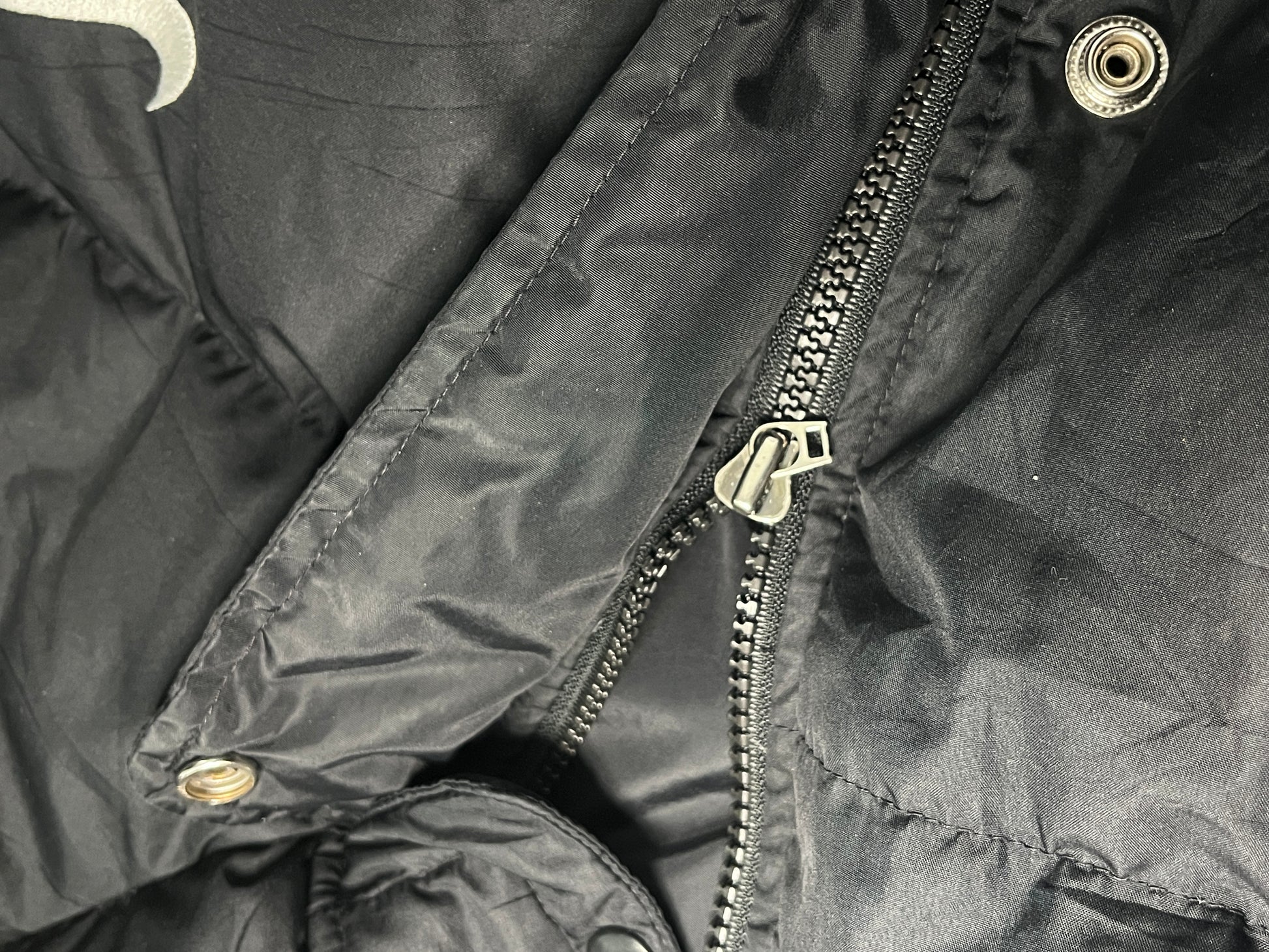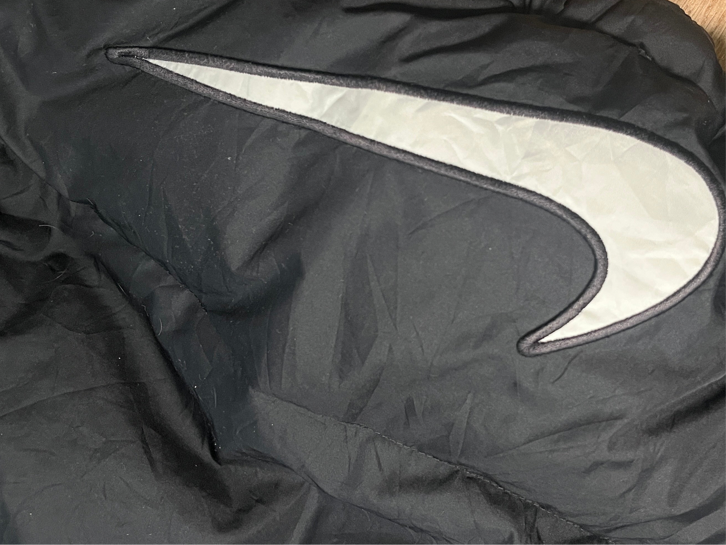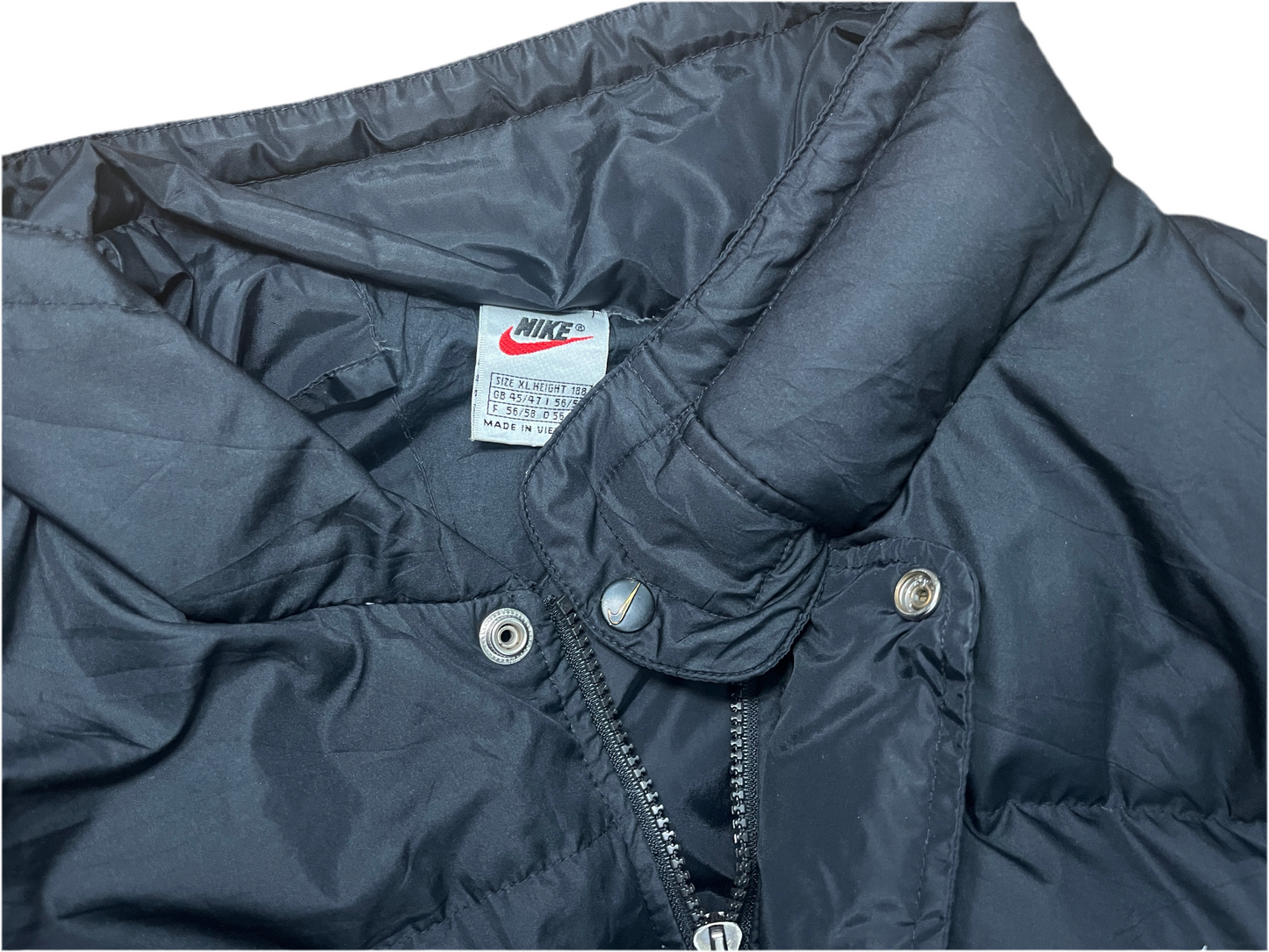 Super nice Nike Puffer from the 90s! All black with white embroidered Logos & contrary stitching. There is a string to tie the waist for the perfect fit!