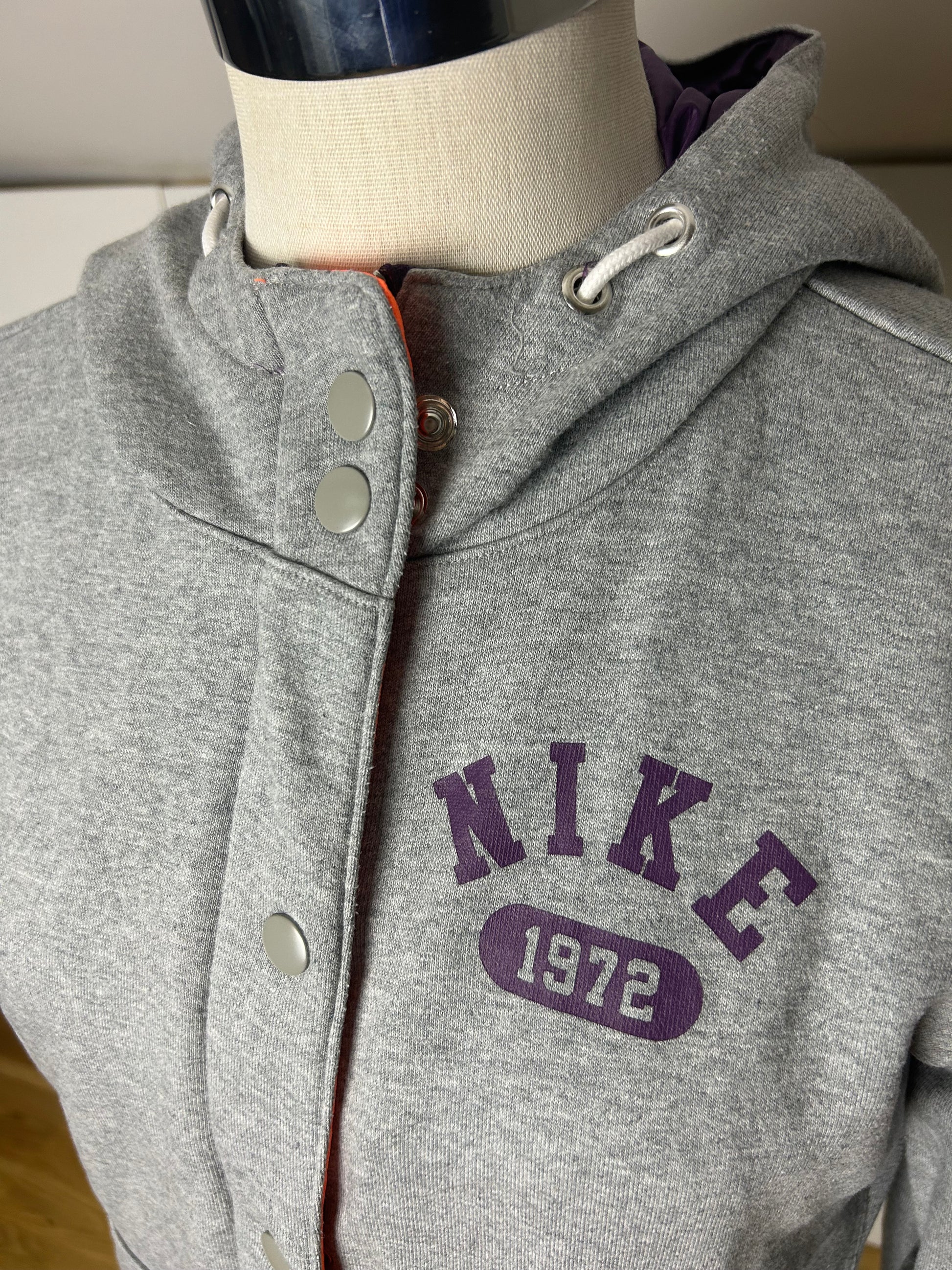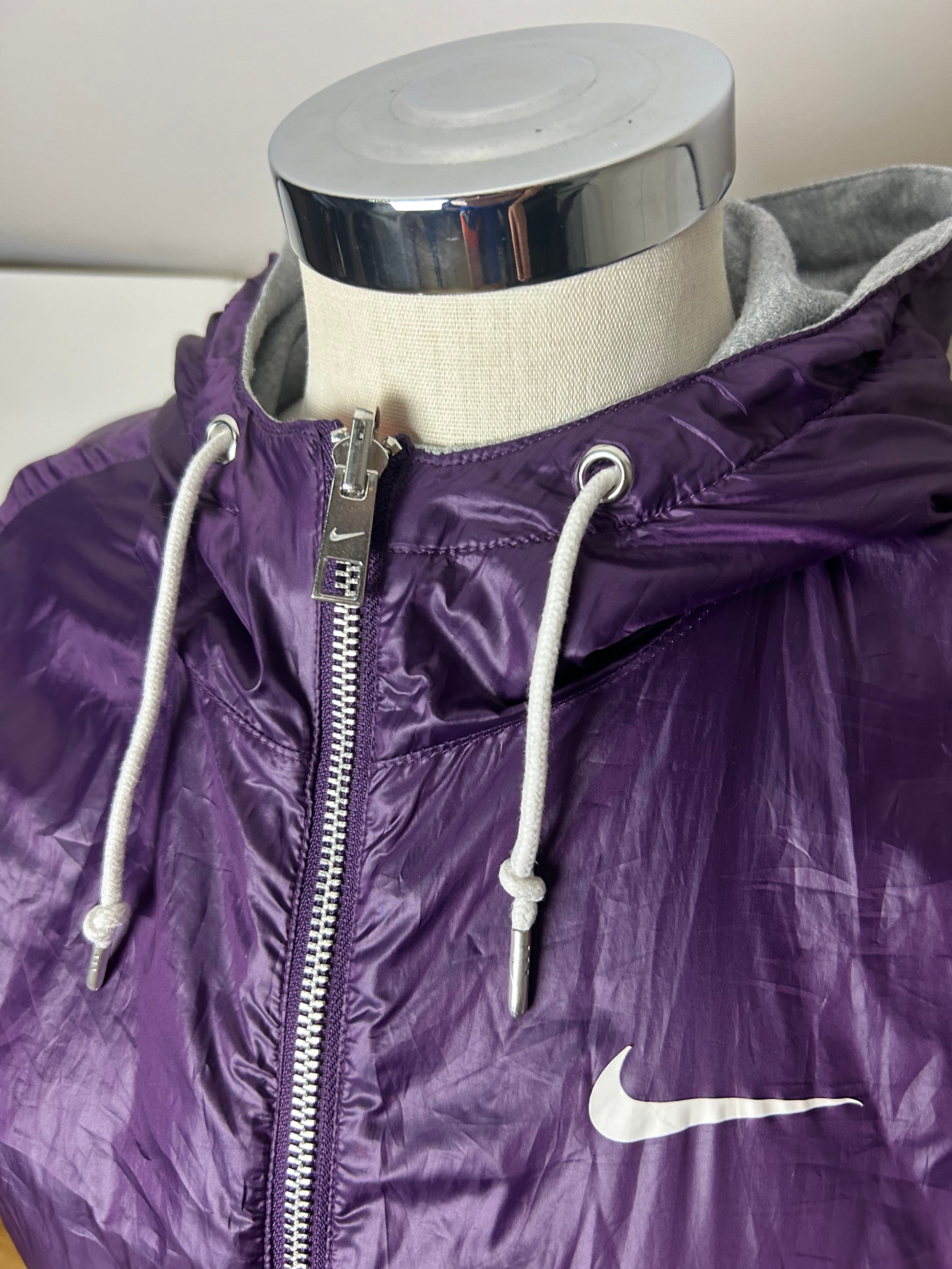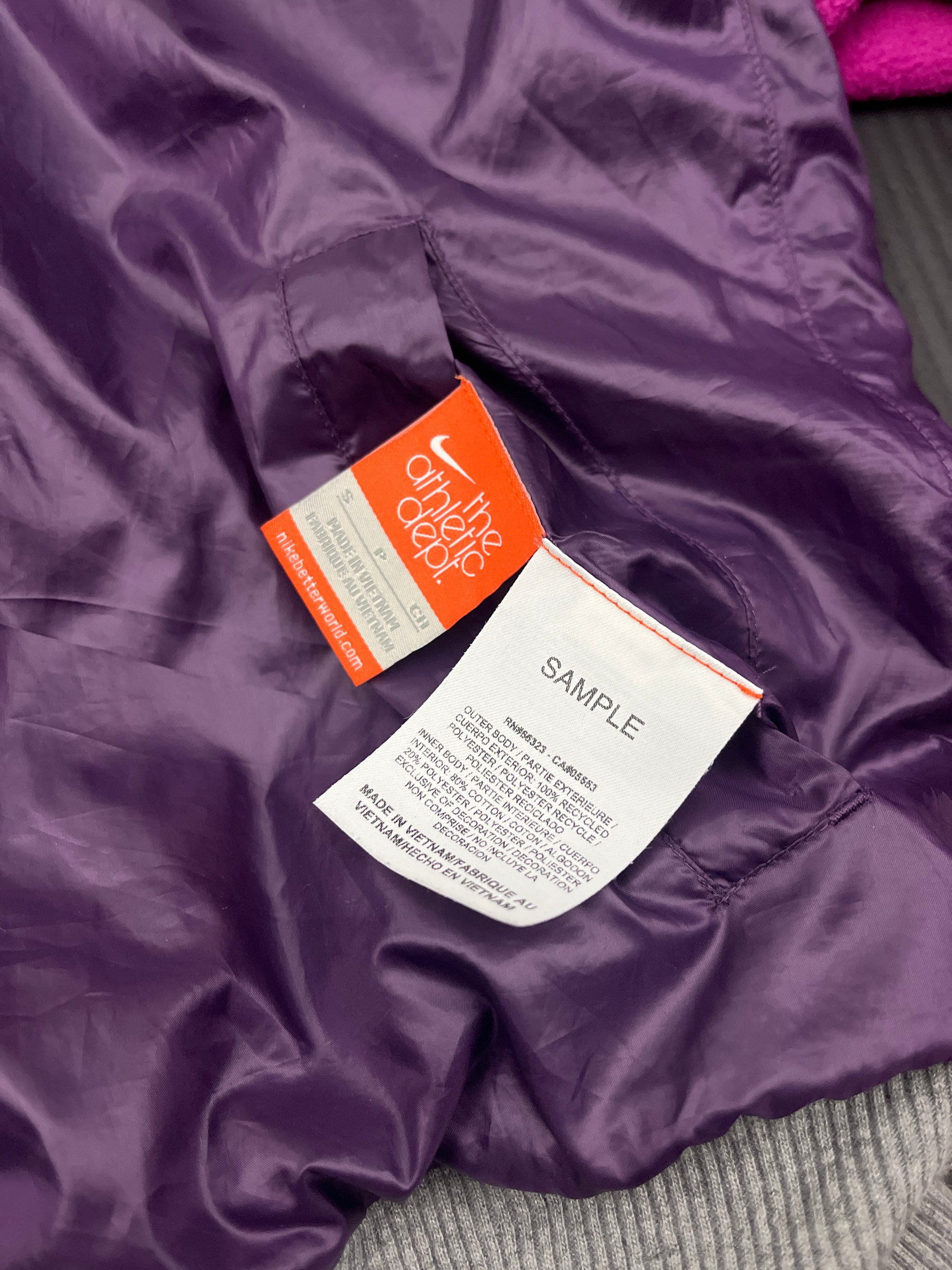 Very cool nike reversible zipper! This piece is marked as "sample" so its a very rare piece with a cool story! Maybe this is th only jacket like this on the hole world! Beautiful purple & grey color. Logo is printed.