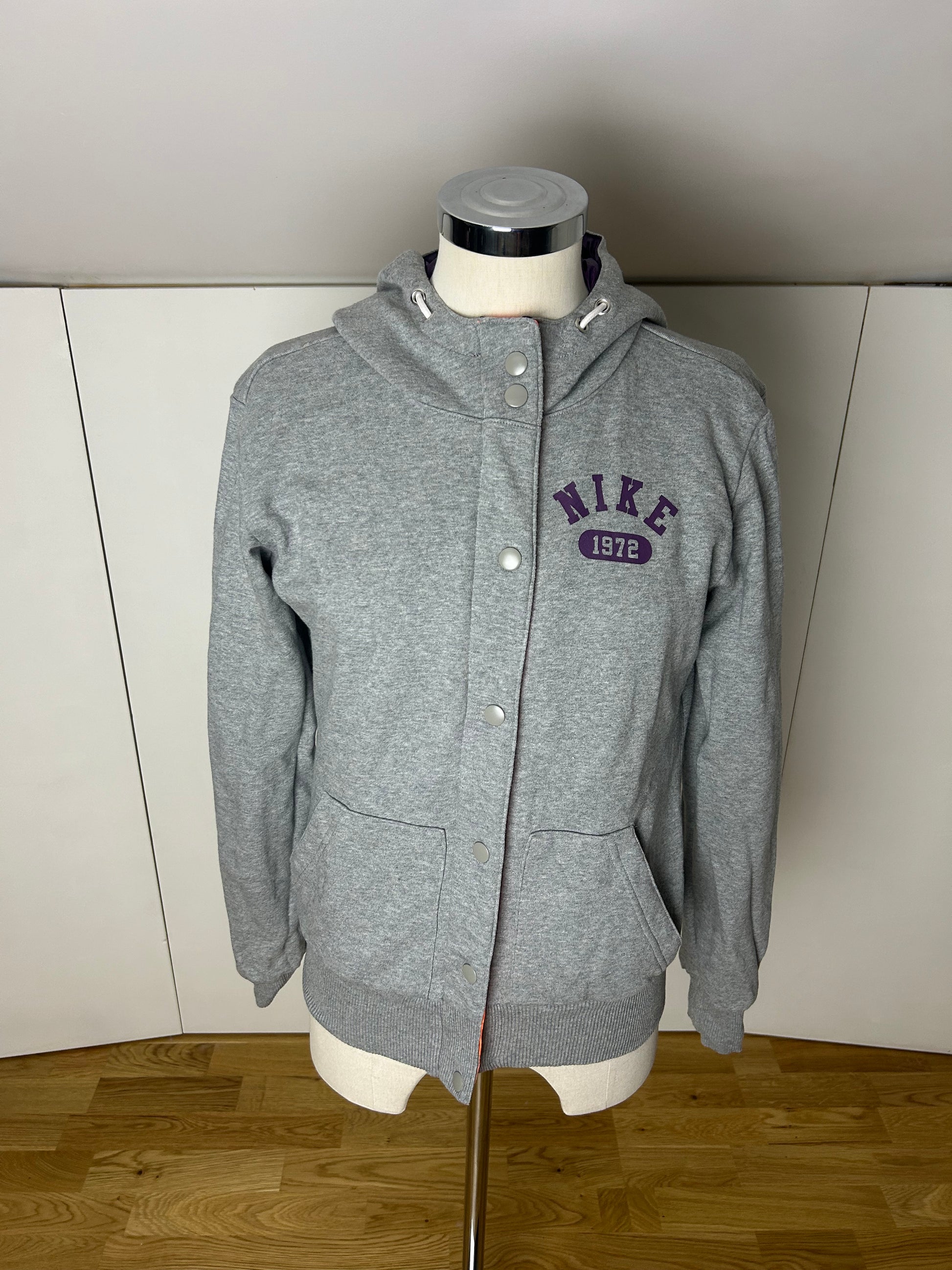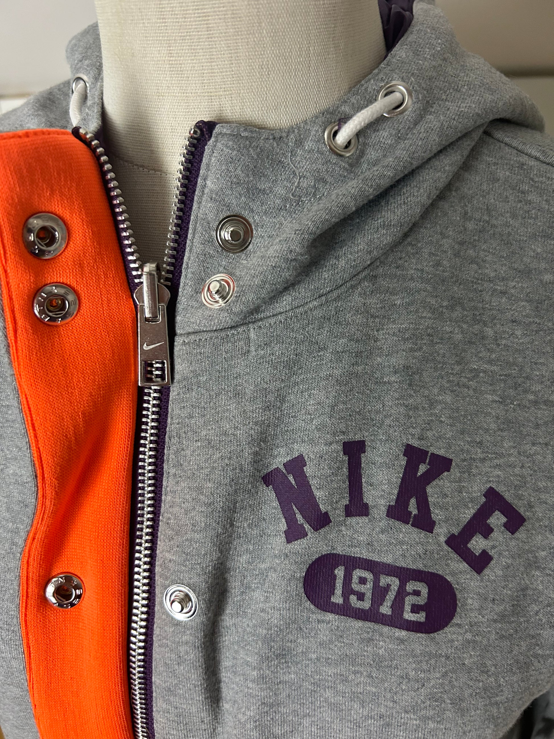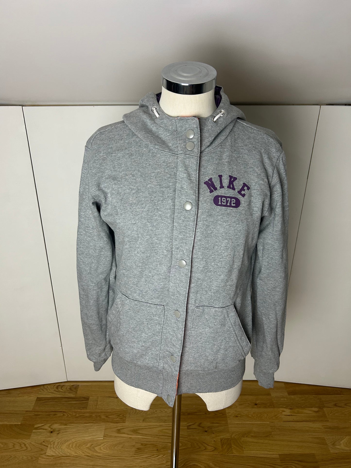 Very cool nike reversible zipper! This piece is marked as "sample" so its a very rare piece with a cool story! Maybe this is th only jacket like this on the hole world! Beautiful purple & grey color. Logo is printed.