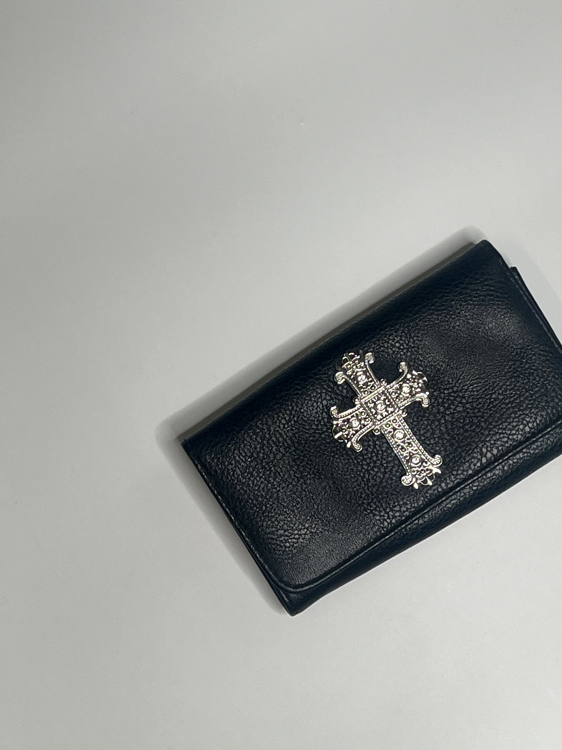 Very practical black Wallet with silver cross design in the middle. Space for coins, paper & cards